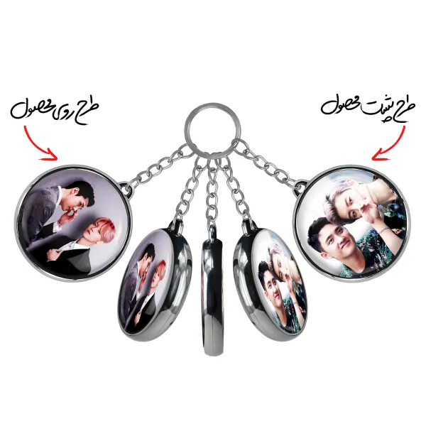 جاکلیدی دوطرفه گروه اکسو EXO خندالو محصولی کاربردی و جدید است که در هر دو سمت محصول، تصویری متفاوت اما از یک موضوع چاپ شده و تفاوت اصلی آن با جاکلیدی های یک طرفه در همین است که هر دو سمت پشت و روی جاکلیدی، طرحی دیدنی و جذاب دارد.
