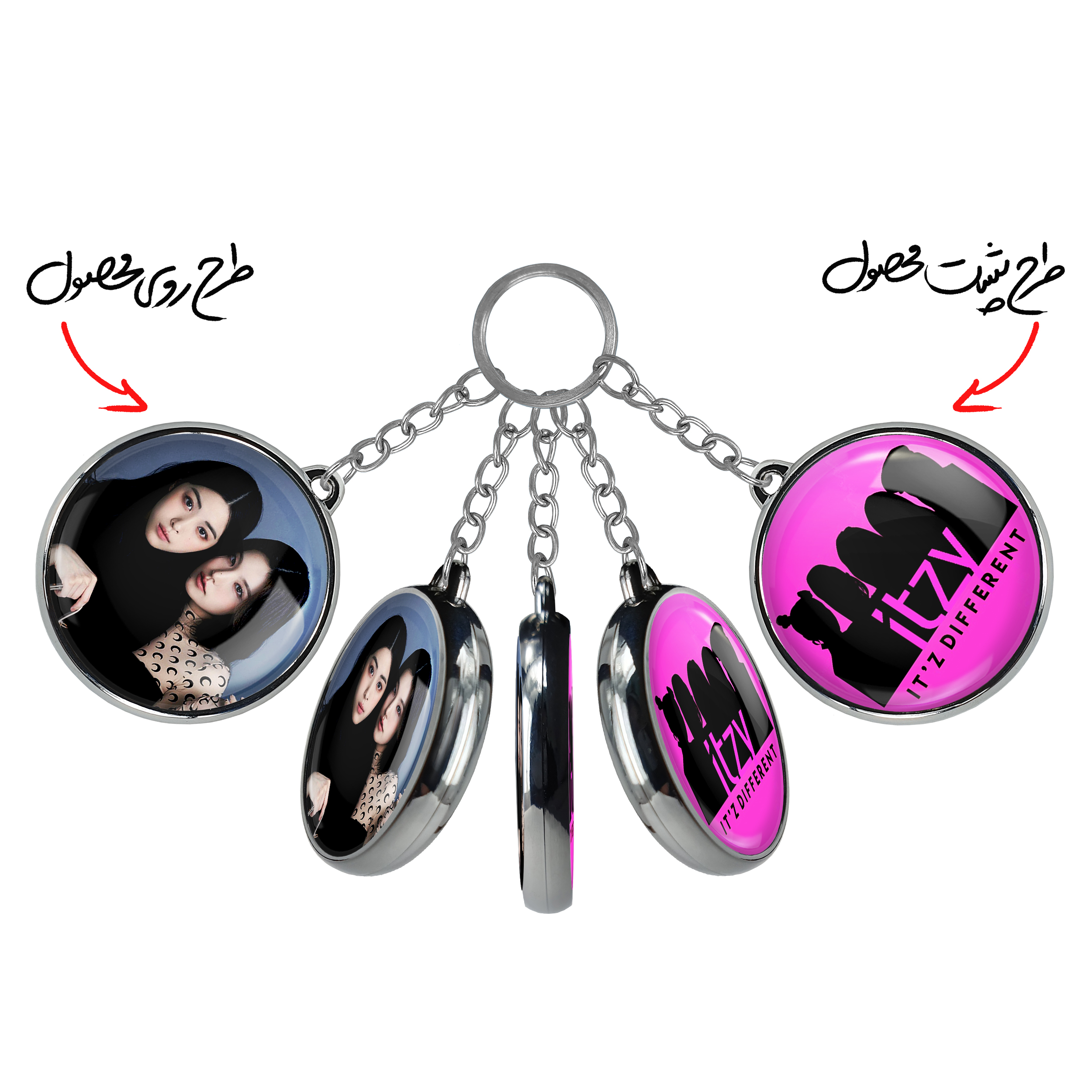 جاکلیدی دوطرفه گروه ایتزی ITZY خندالو محصولی کاربردی و جدید است که در هر دو سمت محصول، تصویری متفاوت اما از یک موضوع چاپ شده و تفاوت اصلی آن با جاکلیدی های یک طرفه در همین است که هر دو سمت پشت و روی جاکلیدی، طرحی دیدنی و جذاب دارد.
