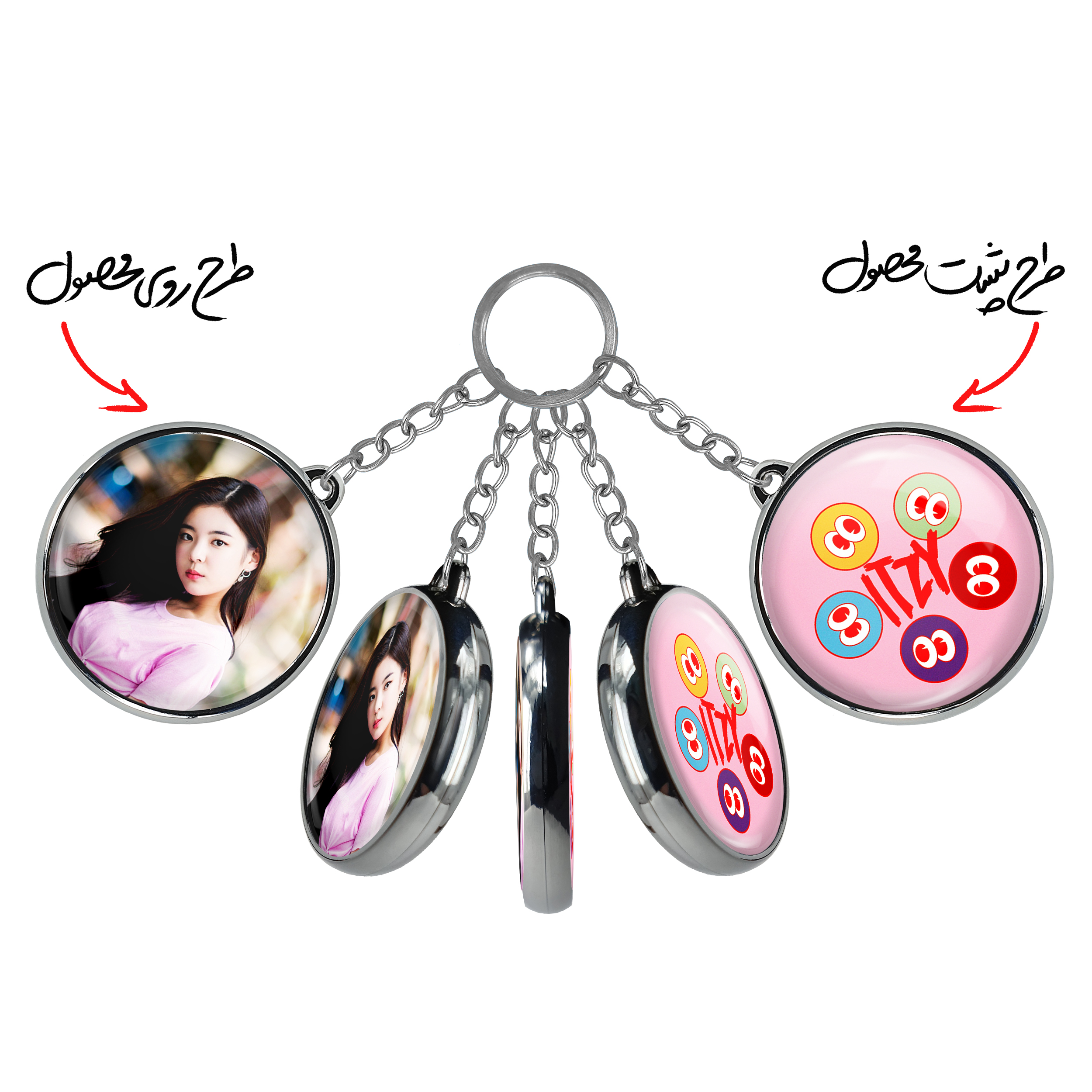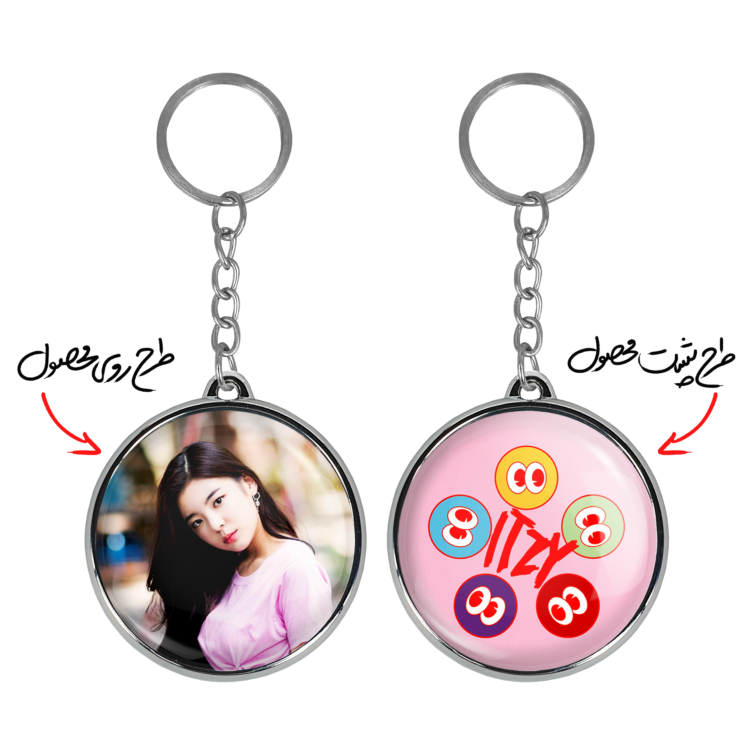جاکلیدی دوطرفه گروه ایتزی ITZY خندالو محصولی کاربردی و جدید است که در هر دو سمت محصول، تصویری متفاوت اما از یک موضوع چاپ شده و تفاوت اصلی آن با جاکلیدی های یک طرفه در همین است که هر دو سمت پشت و روی جاکلیدی، طرحی دیدنی و جذاب دارد.