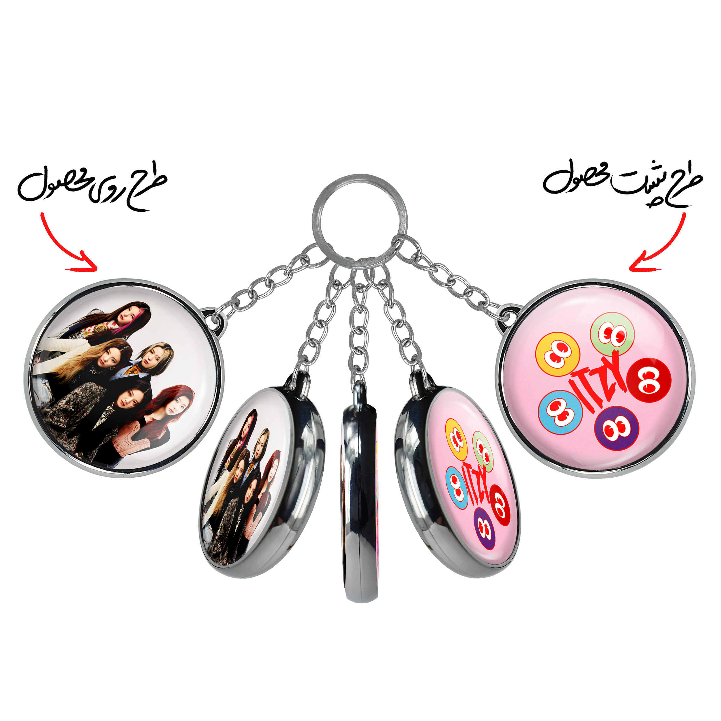 جاکلیدی دوطرفه گروه ایتزی ITZY خندالو محصولی کاربردی و جدید است که در هر دو سمت محصول، تصویری متفاوت اما از یک موضوع چاپ شده و تفاوت اصلی آن با جاکلیدی های یک طرفه در همین است که هر دو سمت پشت و روی جاکلیدی، طرحی دیدنی و جذاب دارد.