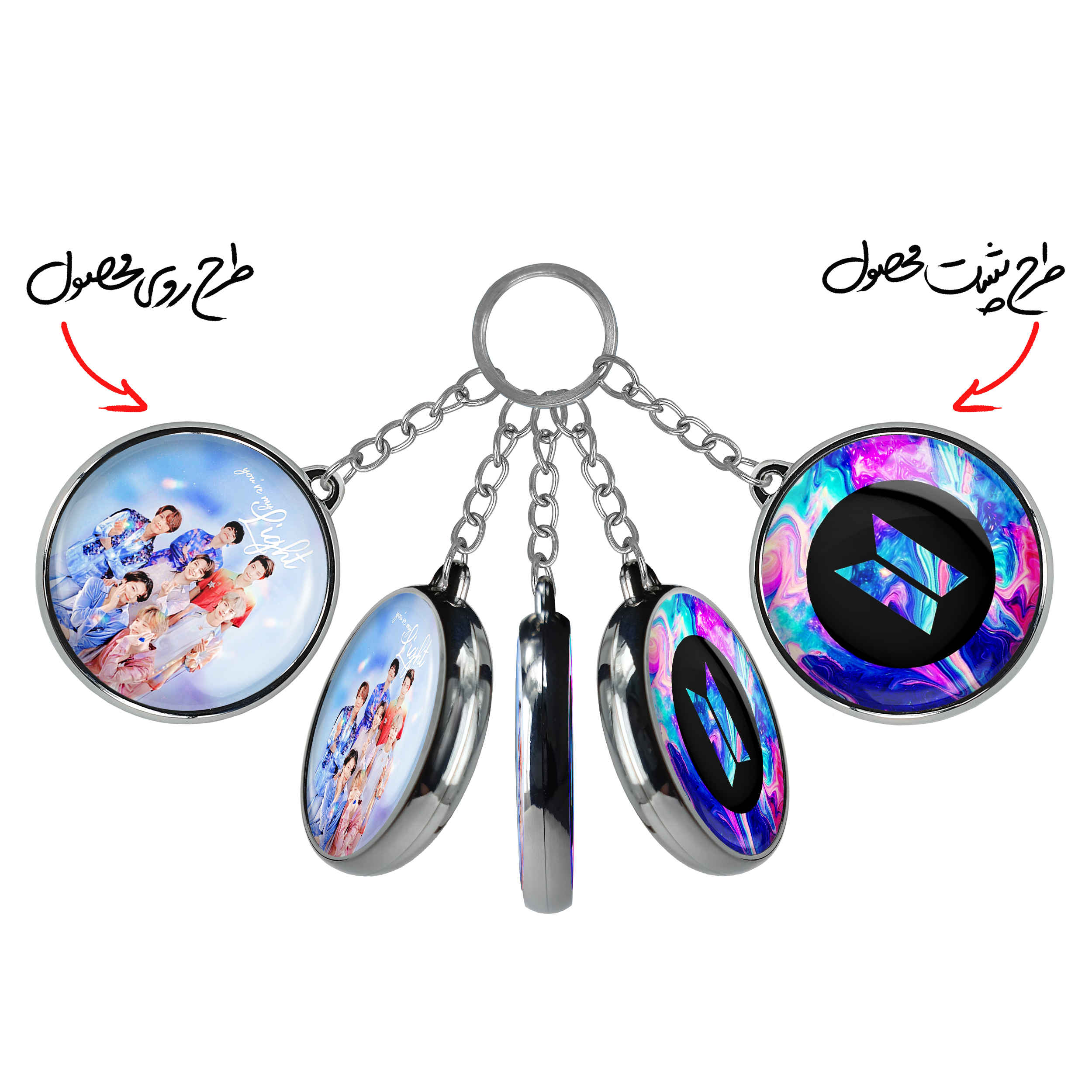 جاکلیدی دوطرفه گروه بی تی اس BTSخندالو محصولی کاربردی و جدید است که در هر دو سمت محصول، تصویری متفاوت اما از یک موضوع چاپ شده و تفاوت اصلی آن با جاکلیدی های یک طرفه در همین است که هر دو سمت پشت و روی جاکلیدی، طرحی دیدنی و جذاب دارد.