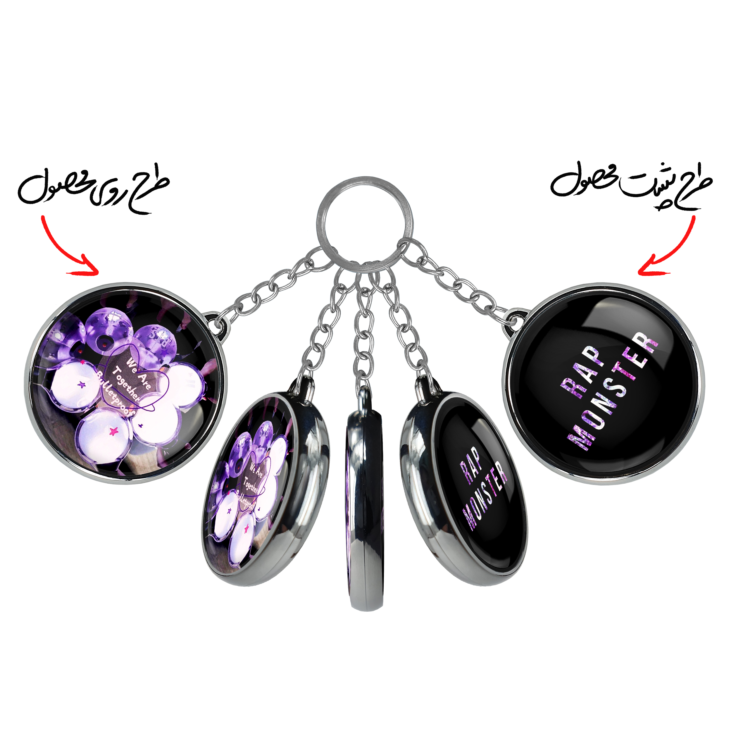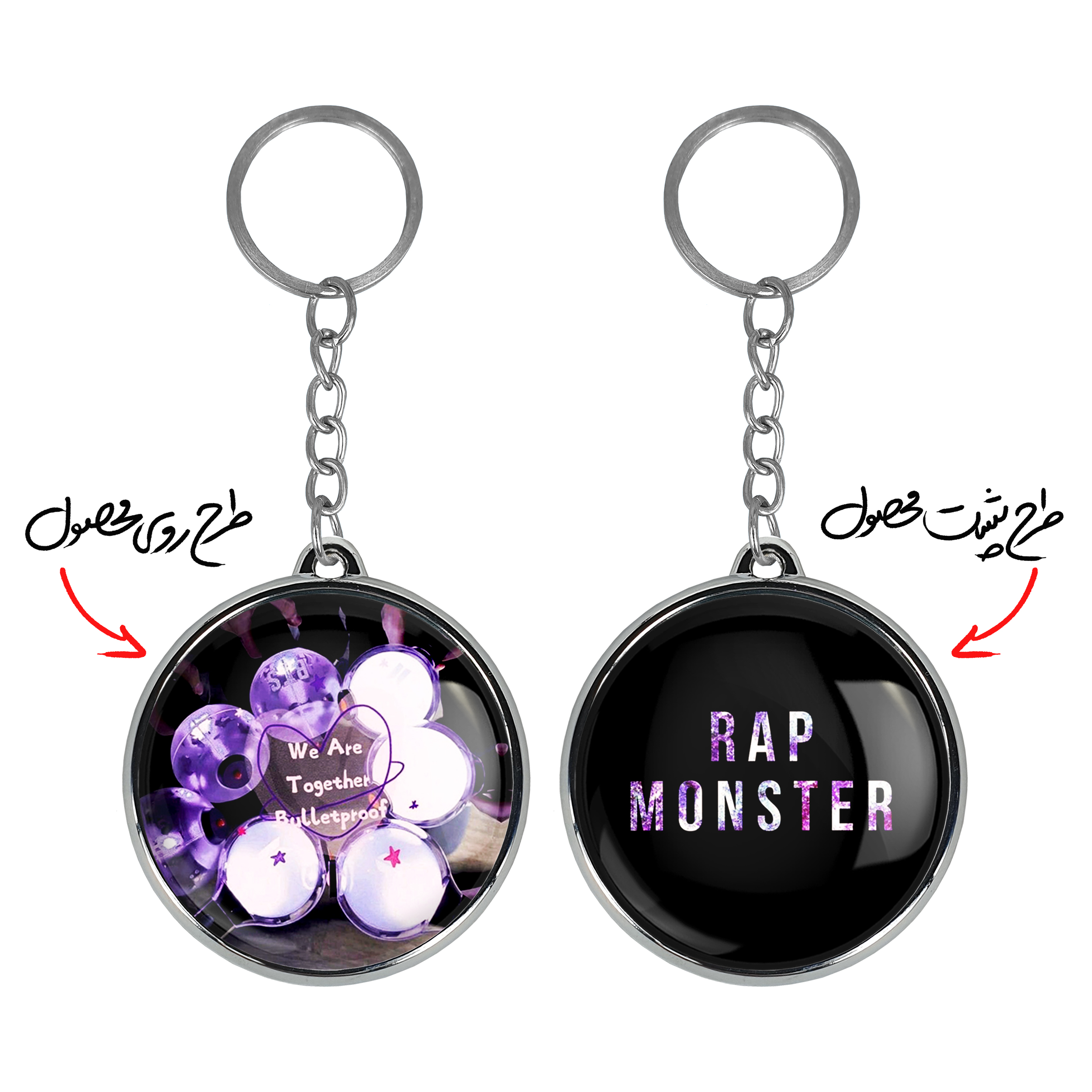 جاکلیدی دوطرفه گروه بی تی اس BTSخندالو محصولی کاربردی و جدید است که در هر دو سمت محصول، تصویری متفاوت اما از یک موضوع چاپ شده و تفاوت اصلی آن با جاکلیدی های یک طرفه در همین است که هر دو سمت پشت و روی جاکلیدی، طرحی دیدنی و جذاب دارد.