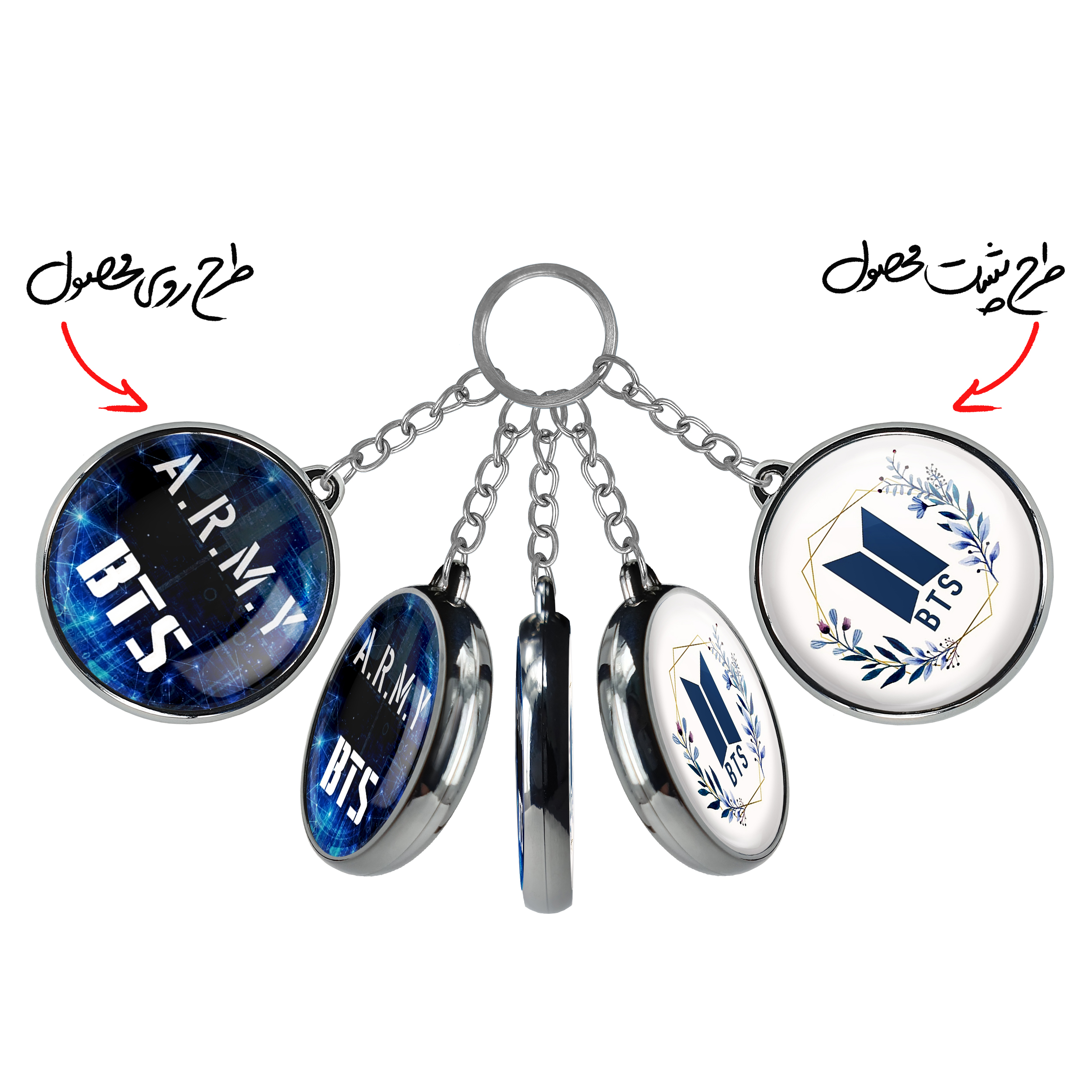 جاکلیدی دوطرفه گروه بی تی اس BTSخندالو محصولی کاربردی و جدید است که در هر دو سمت محصول، تصویری متفاوت اما از یک موضوع چاپ شده و تفاوت اصلی آن با جاکلیدی های یک طرفه در همین است که هر دو سمت پشت و روی جاکلیدی، طرحی دیدنی و جذاب دارد.