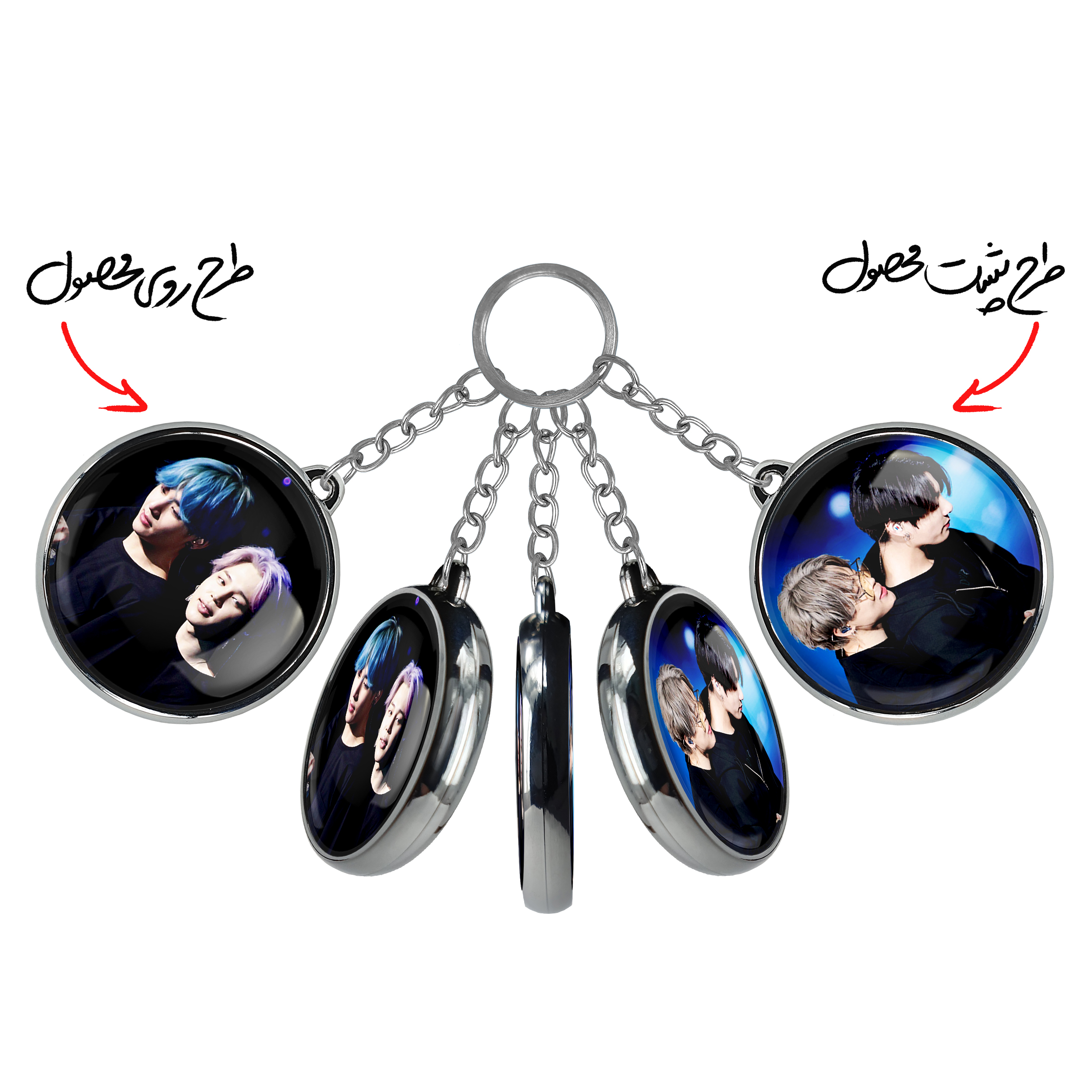 جاکلیدی دوطرفه گروه بی تی اس BTSخندالو محصولی کاربردی و جدید است که در هر دو سمت محصول، تصویری متفاوت اما از یک موضوع چاپ شده و تفاوت اصلی آن با جاکلیدی های یک طرفه در همین است که هر دو سمت پشت و روی جاکلیدی، طرحی دیدنی و جذاب دارد.