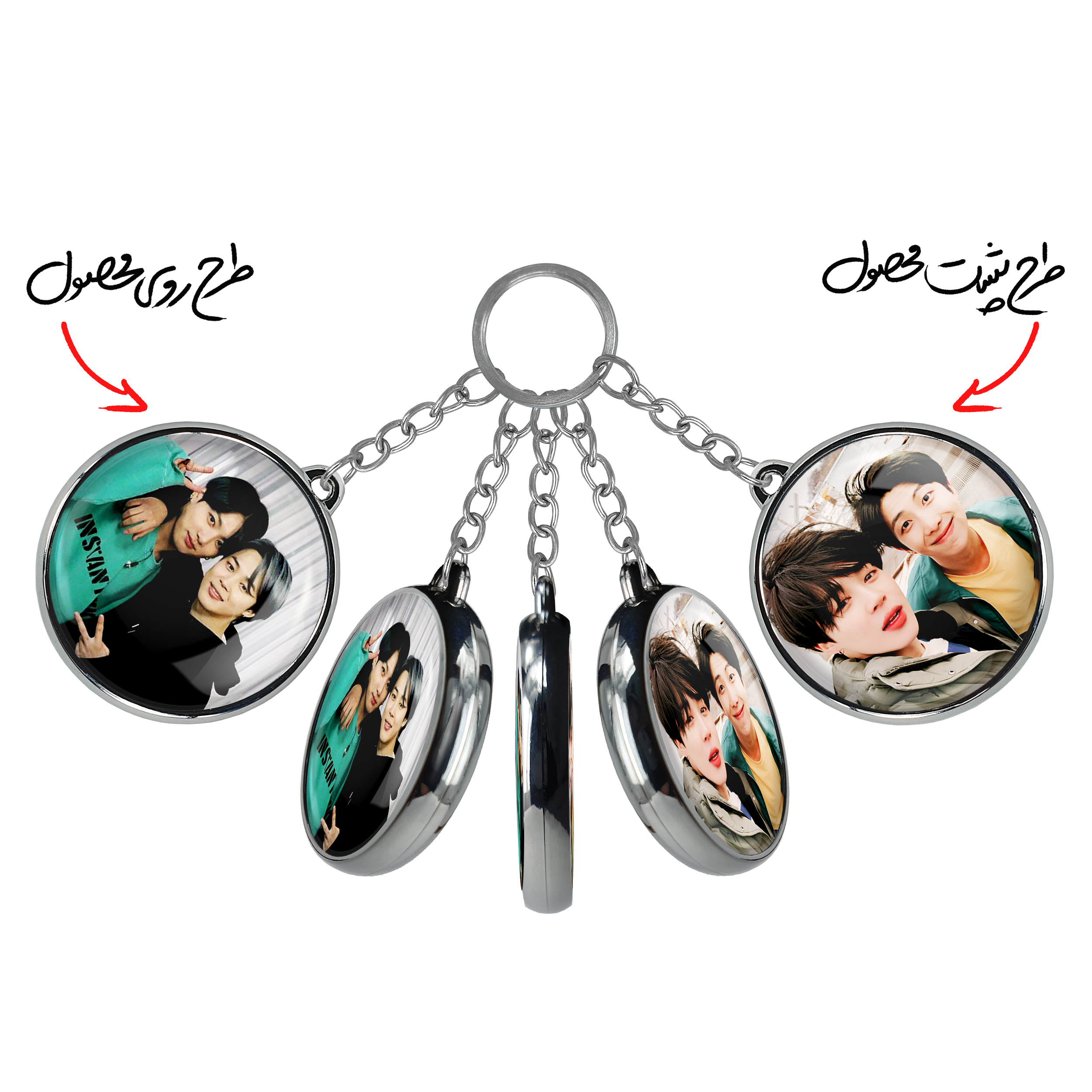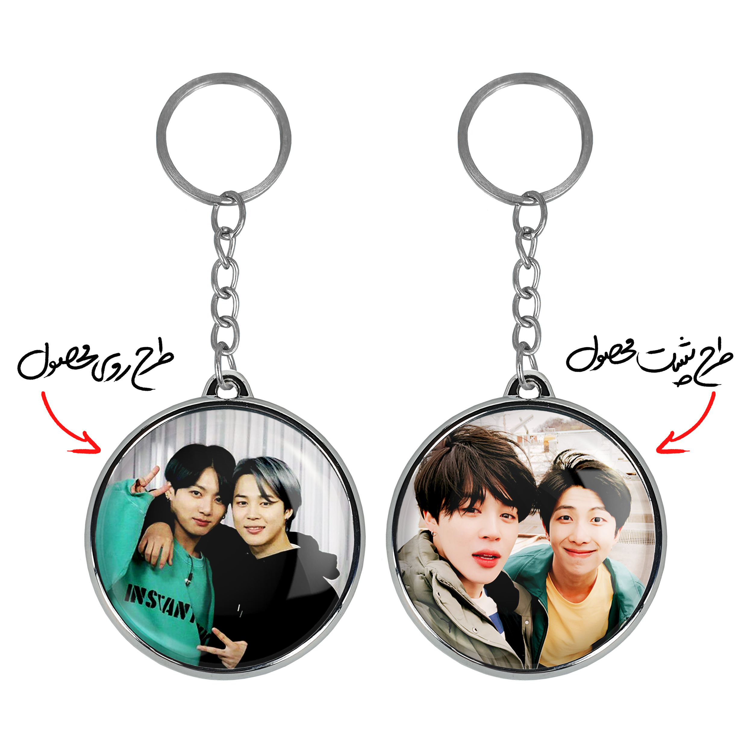 جاکلیدی دوطرفه گروه بی تی اس BTSخندالو محصولی کاربردی و جدید است که در هر دو سمت محصول، تصویری متفاوت اما از یک موضوع چاپ شده و تفاوت اصلی آن با جاکلیدی های یک طرفه در همین است که هر دو سمت پشت و روی جاکلیدی، طرحی دیدنی و جذاب دارد.