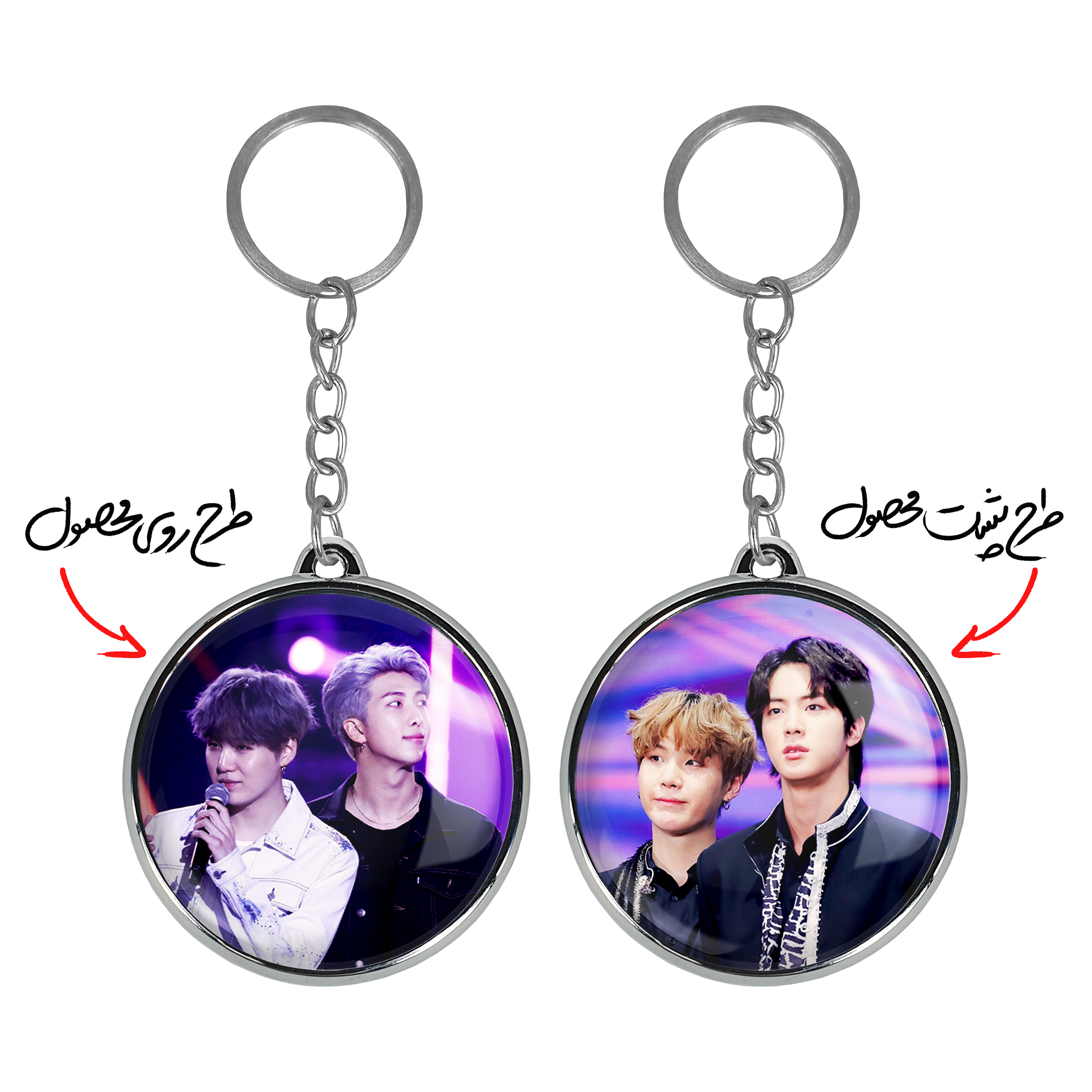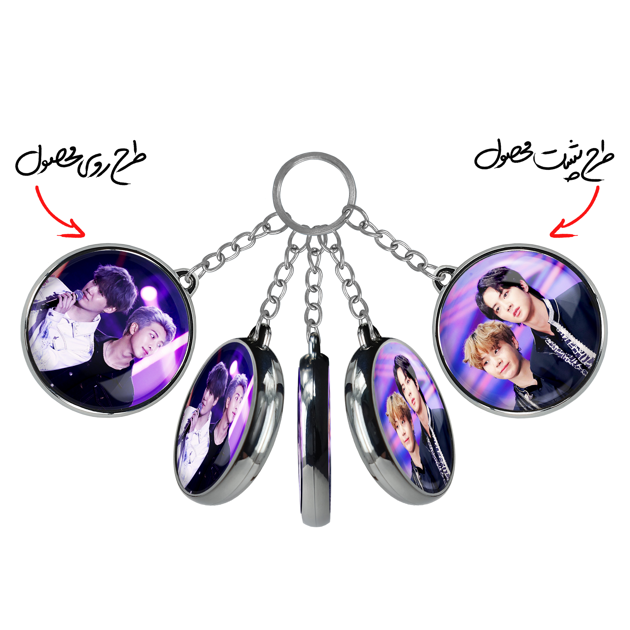 جاکلیدی دوطرفه گروه بی تی اس BTSخندالو محصولی کاربردی و جدید است که در هر دو سمت محصول، تصویری متفاوت اما از یک موضوع چاپ شده و تفاوت اصلی آن با جاکلیدی های یک طرفه در همین است که هر دو سمت پشت و روی جاکلیدی، طرحی دیدنی و جذاب دارد.