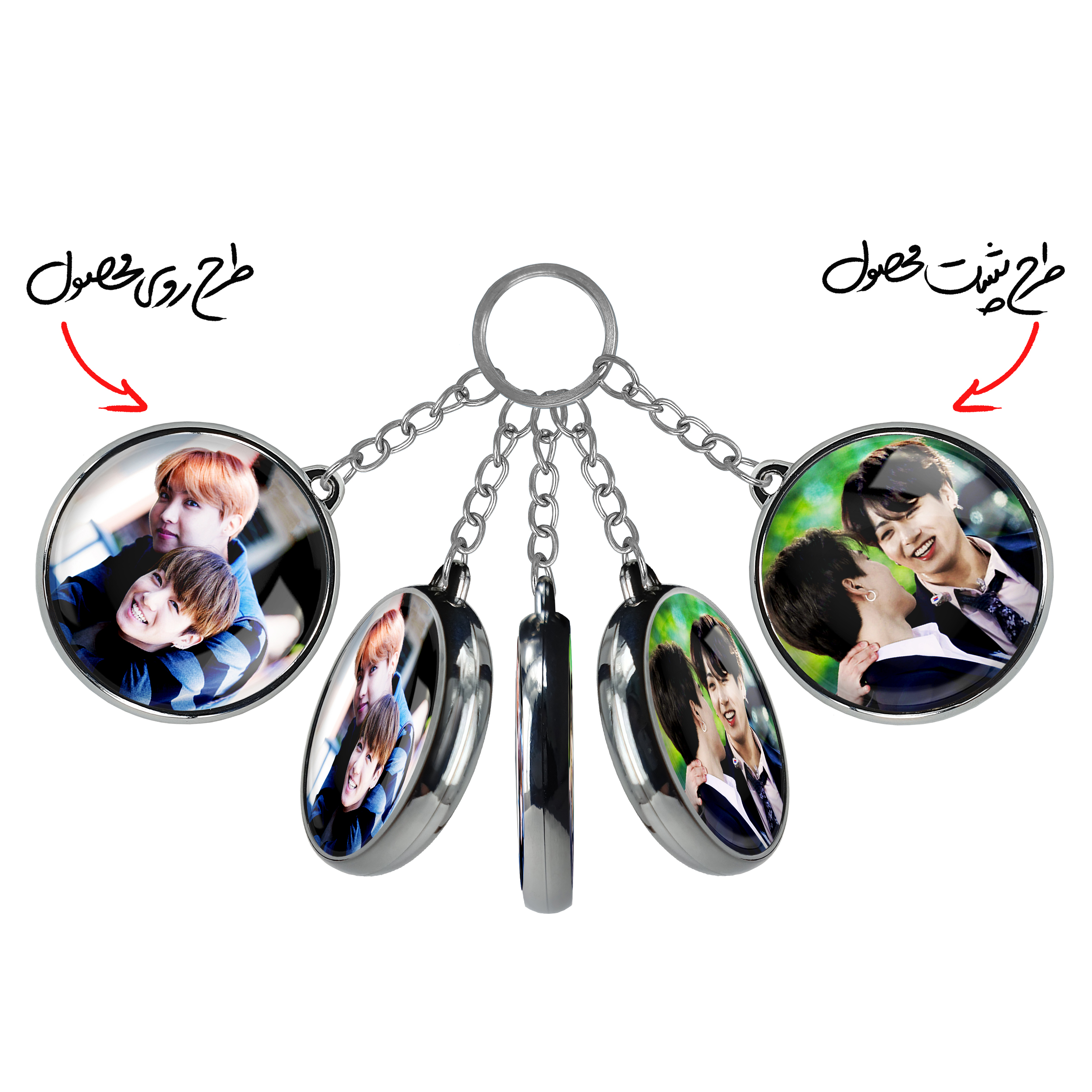 جاکلیدی دوطرفه گروه بی تی اس BTSخندالو محصولی کاربردی و جدید است که در هر دو سمت محصول، تصویری متفاوت اما از یک موضوع چاپ شده و تفاوت اصلی آن با جاکلیدی های یک طرفه در همین است که هر دو سمت پشت و روی جاکلیدی، طرحی دیدنی و جذاب دارد.