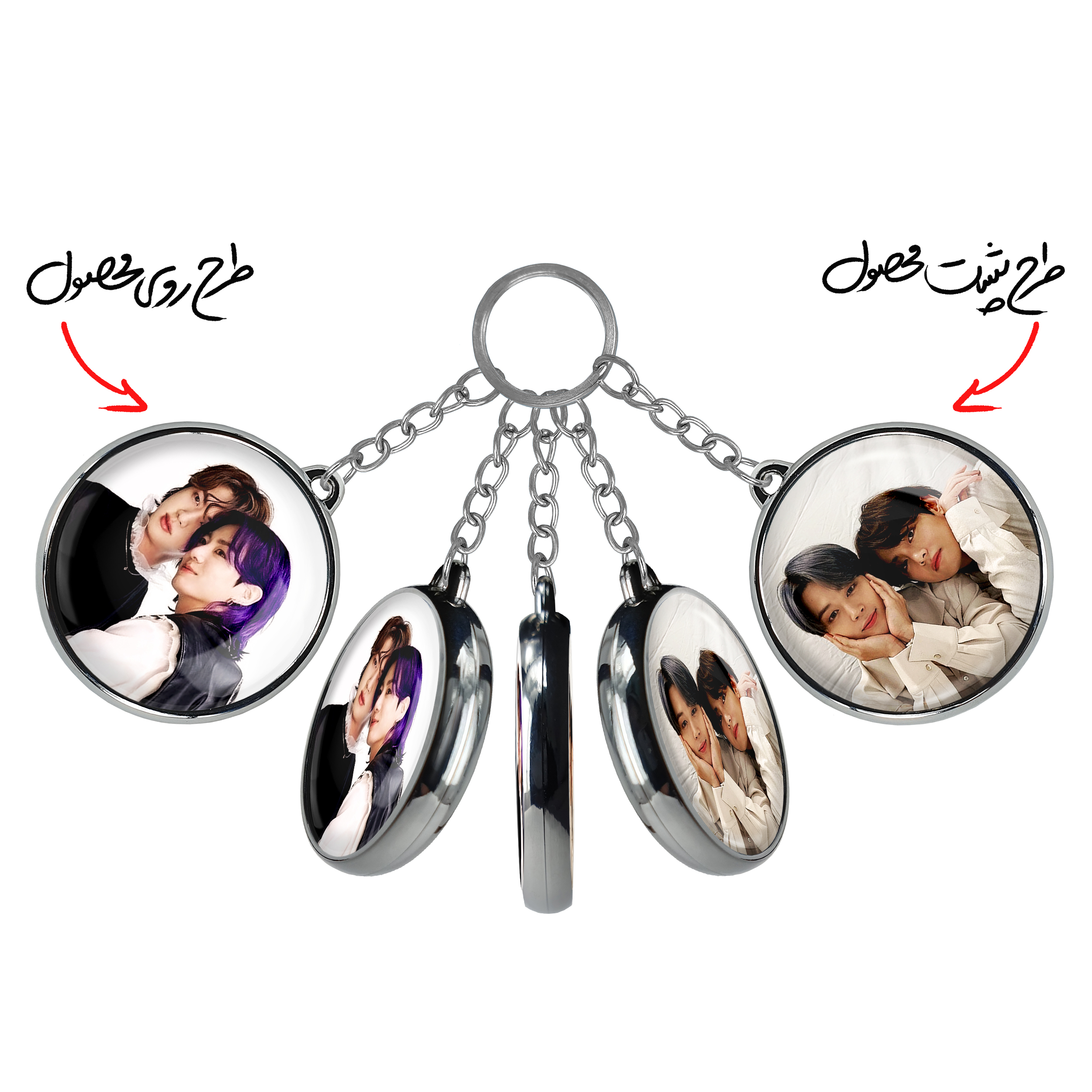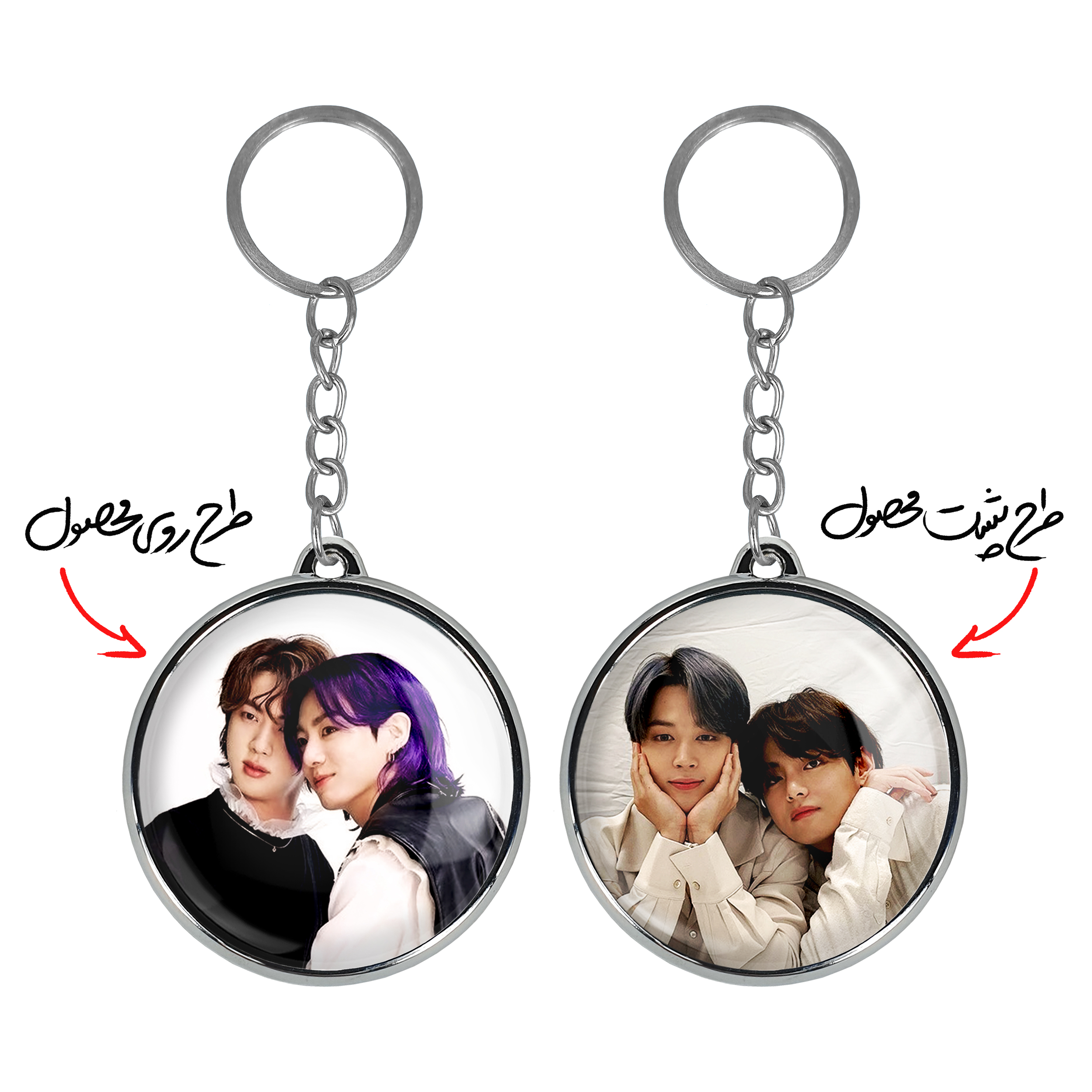 جاکلیدی دوطرفه گروه بی تی اس BTSخندالو محصولی کاربردی و جدید است که در هر دو سمت محصول، تصویری متفاوت اما از یک موضوع چاپ شده و تفاوت اصلی آن با جاکلیدی های یک طرفه در همین است که هر دو سمت پشت و روی جاکلیدی، طرحی دیدنی و جذاب دارد.