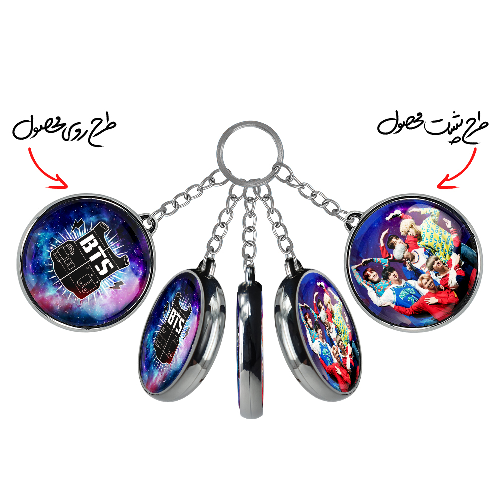 جاکلیدی دوطرفه گروه بی تی اس BTSخندالو محصولی کاربردی و جدید است که در هر دو سمت محصول، تصویری متفاوت اما از یک موضوع چاپ شده و تفاوت اصلی آن با جاکلیدی های یک طرفه در همین است که هر دو سمت پشت و روی جاکلیدی، طرحی دیدنی و جذاب دارد.