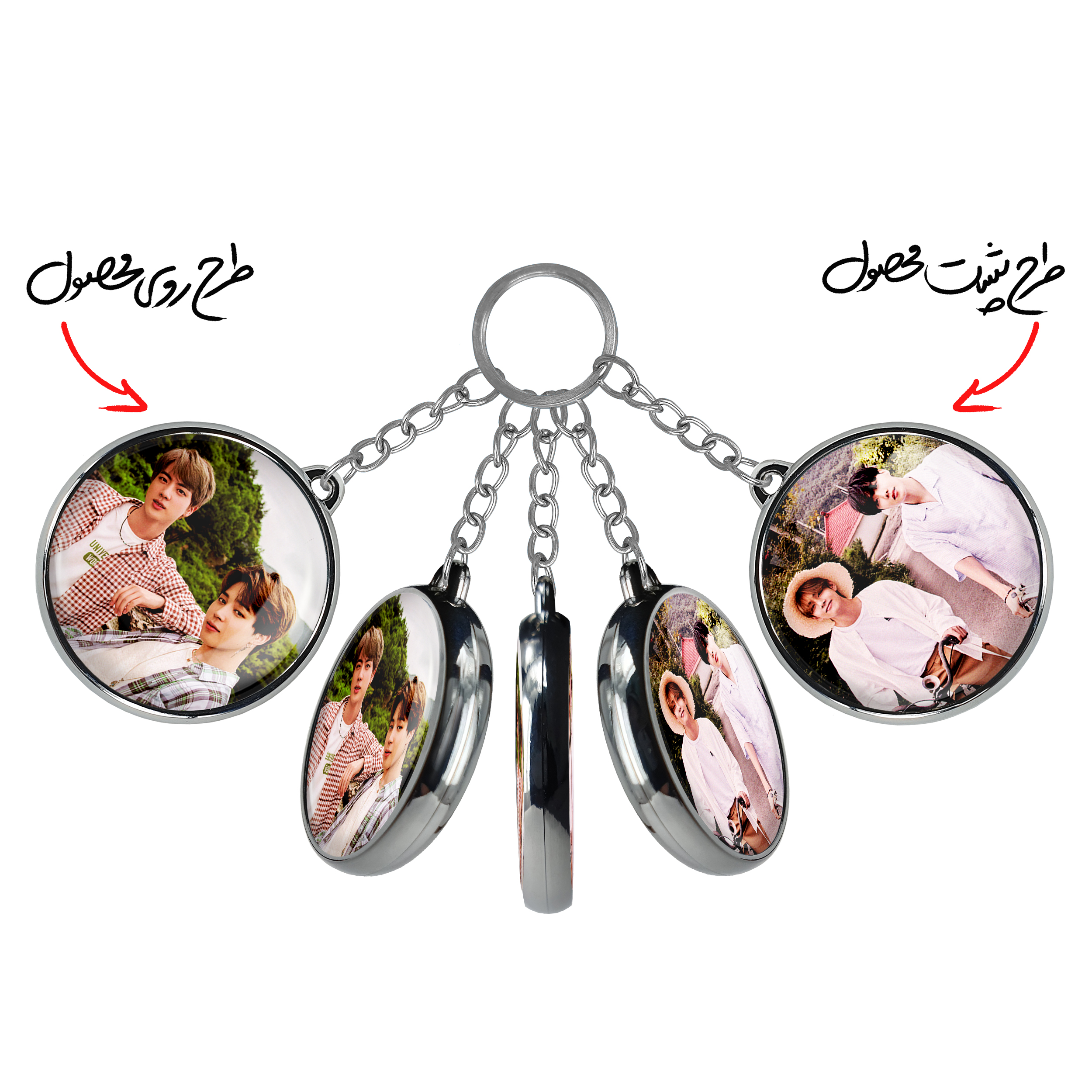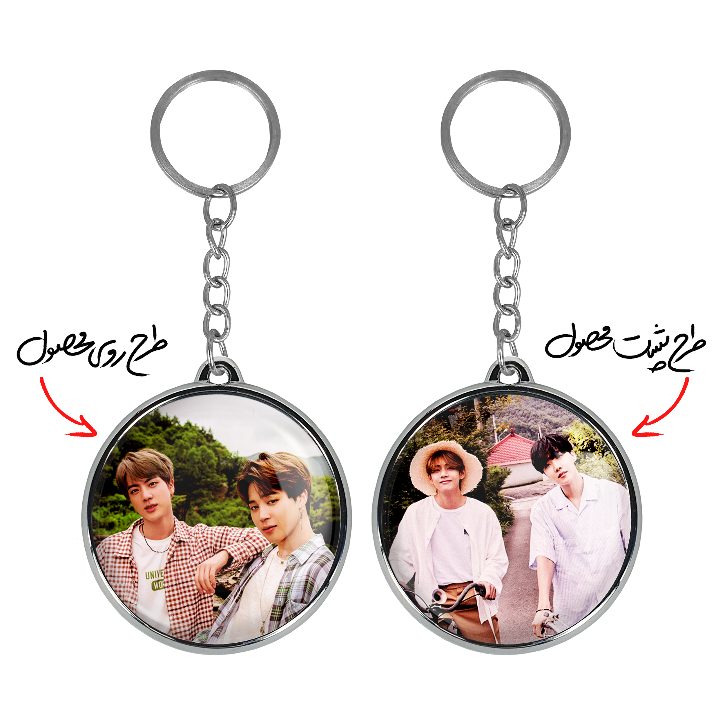 جاکلیدی دوطرفه گروه بی تی اس BTSخندالو محصولی کاربردی و جدید است که در هر دو سمت محصول، تصویری متفاوت اما از یک موضوع چاپ شده و تفاوت اصلی آن با جاکلیدی های یک طرفه در همین است که هر دو سمت پشت و روی جاکلیدی، طرحی دیدنی و جذاب دارد.