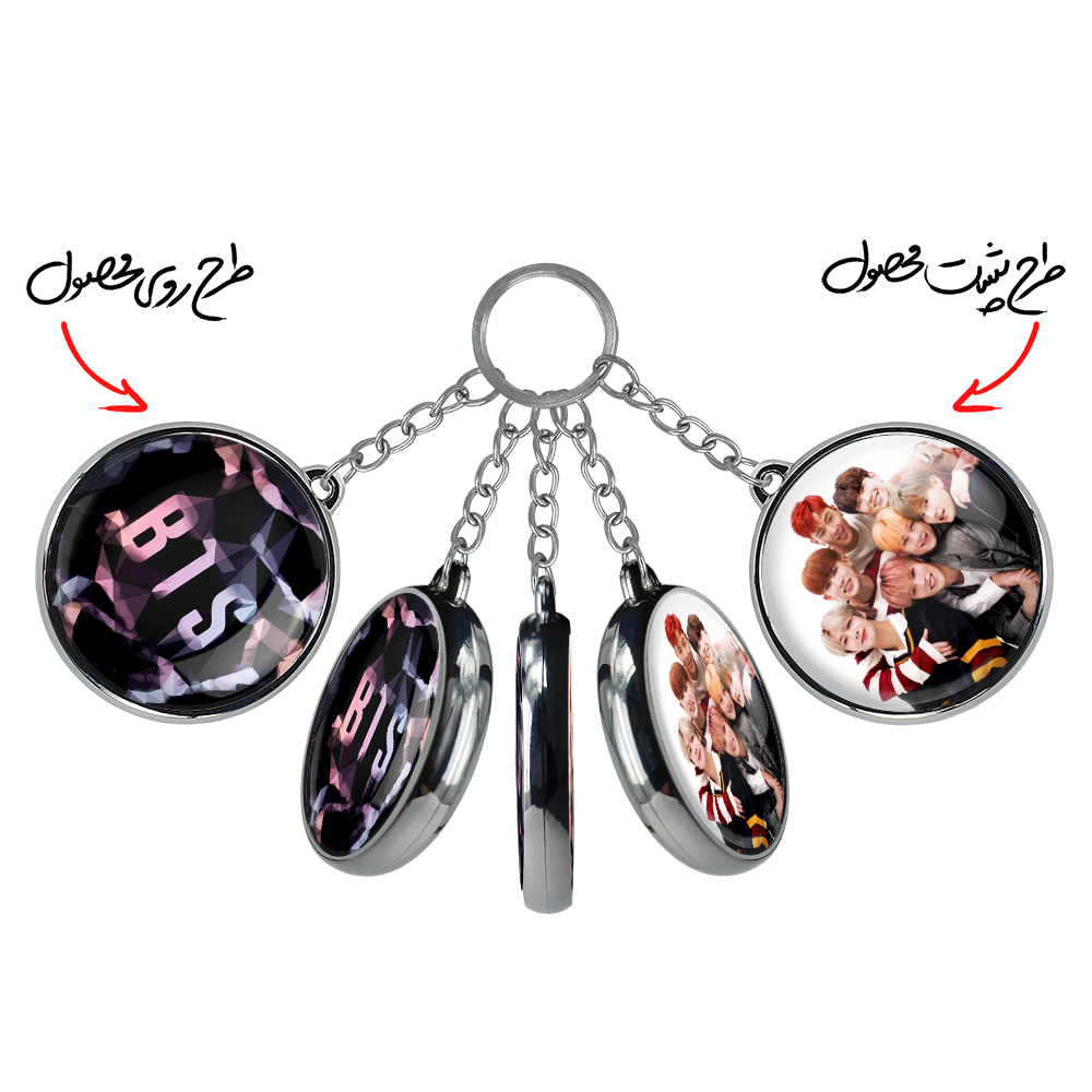جاکلیدی دوطرفه گروه بی تی اس BTSخندالو محصولی کاربردی و جدید است که در هر دو سمت محصول، تصویری متفاوت اما از یک موضوع چاپ شده و تفاوت اصلی آن با جاکلیدی های یک طرفه در همین است که هر دو سمت پشت و روی جاکلیدی، طرحی دیدنی و جذاب دارد.