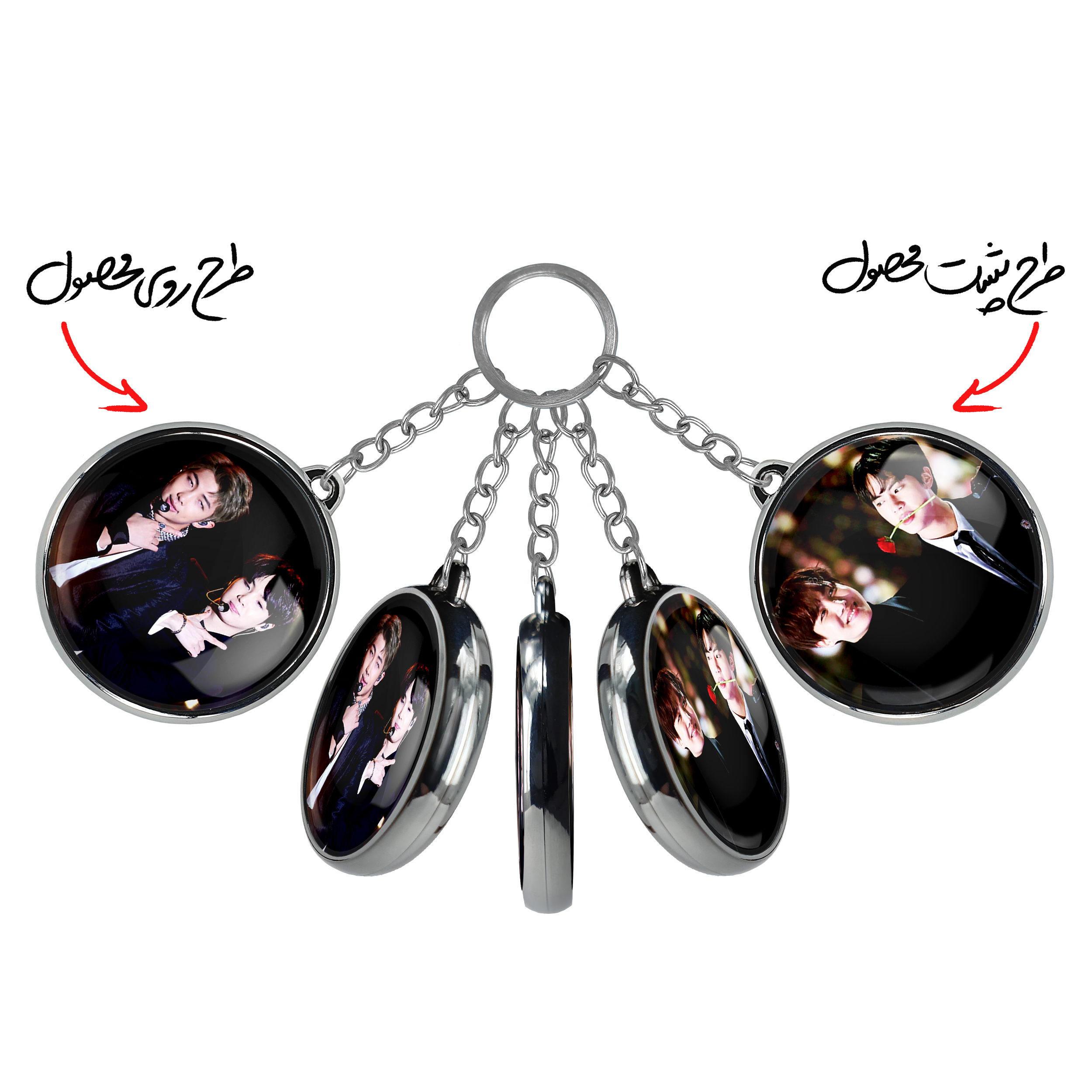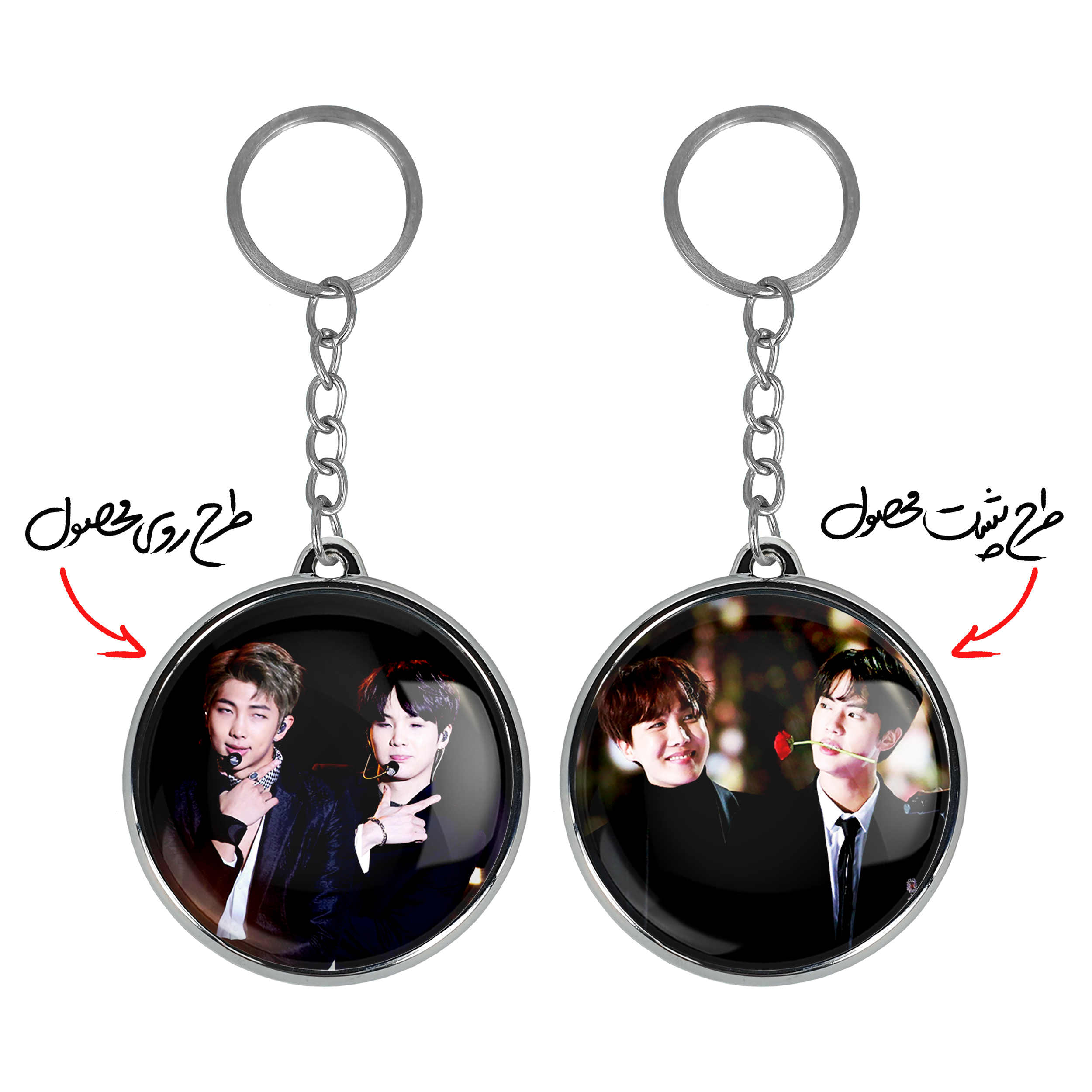 جاکلیدی دوطرفه گروه بی تی اس BTSخندالو محصولی کاربردی و جدید است که در هر دو سمت محصول، تصویری متفاوت اما از یک موضوع چاپ شده و تفاوت اصلی آن با جاکلیدی های یک طرفه در همین است که هر دو سمت پشت و روی جاکلیدی، طرحی دیدنی و جذاب دارد.