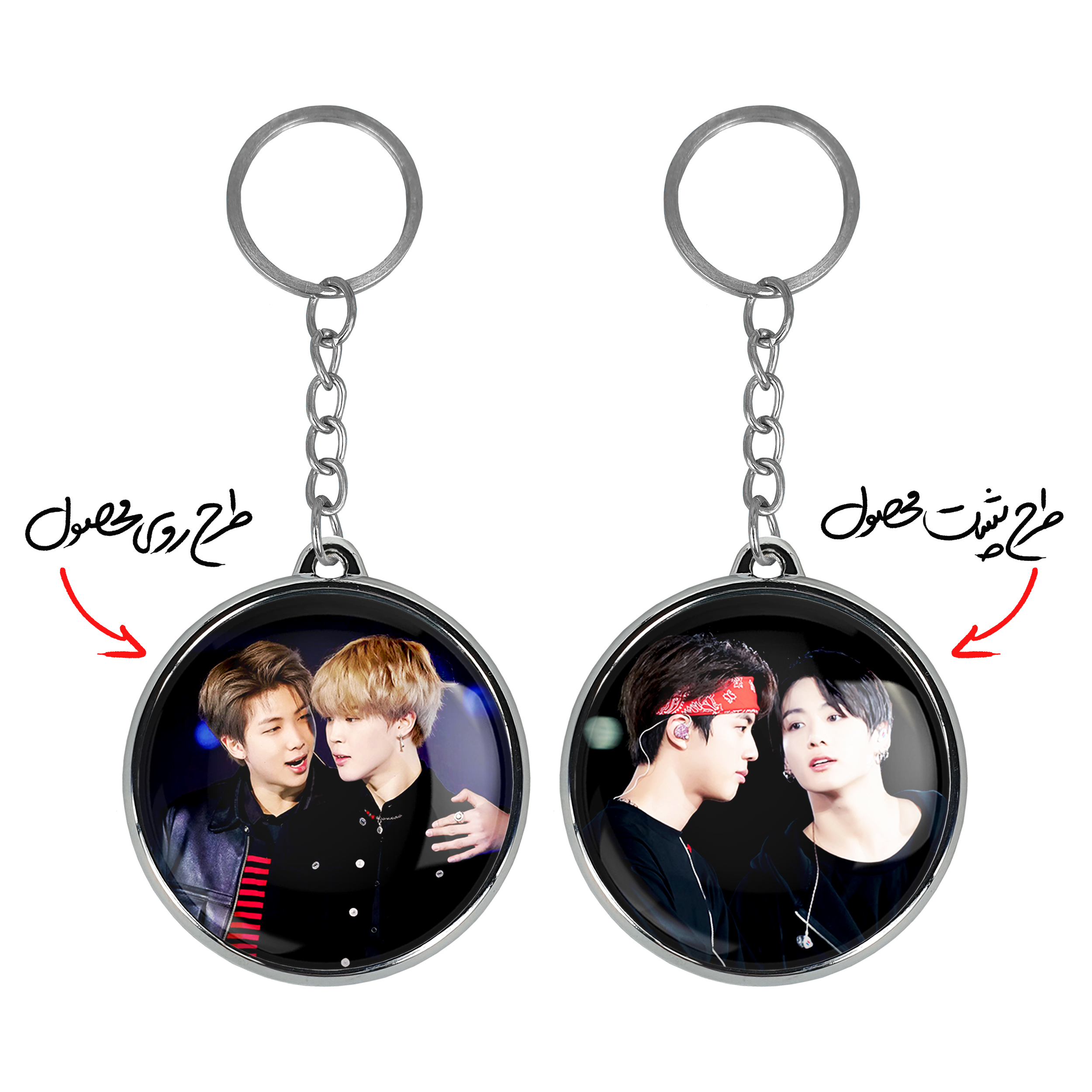 جاکلیدی دوطرفه گروه بی تی اس BTSخندالو محصولی کاربردی و جدید است که در هر دو سمت محصول، تصویری متفاوت اما از یک موضوع چاپ شده و تفاوت اصلی آن با جاکلیدی های یک طرفه در همین است که هر دو سمت پشت و روی جاکلیدی، طرحی دیدنی و جذاب دارد.