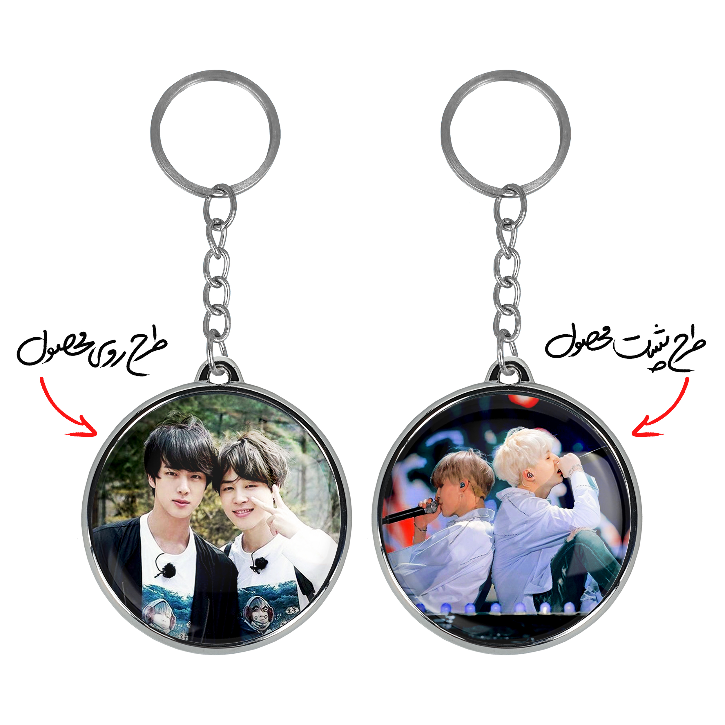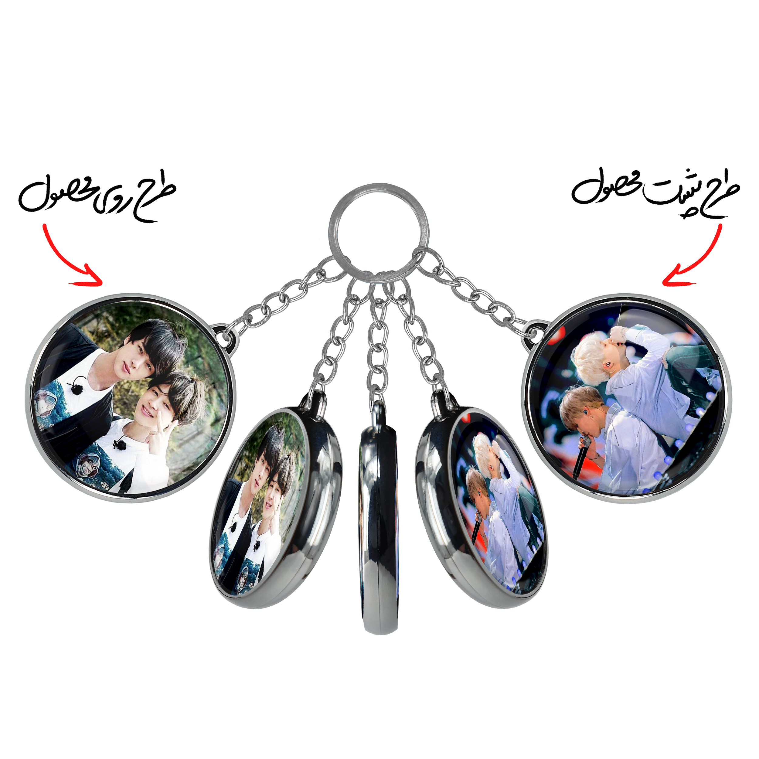 جاکلیدی دوطرفه گروه بی تی اس BTSخندالو محصولی کاربردی و جدید است که در هر دو سمت محصول، تصویری متفاوت اما از یک موضوع چاپ شده و تفاوت اصلی آن با جاکلیدی های یک طرفه در همین است که هر دو سمت پشت و روی جاکلیدی، طرحی دیدنی و جذاب دارد.