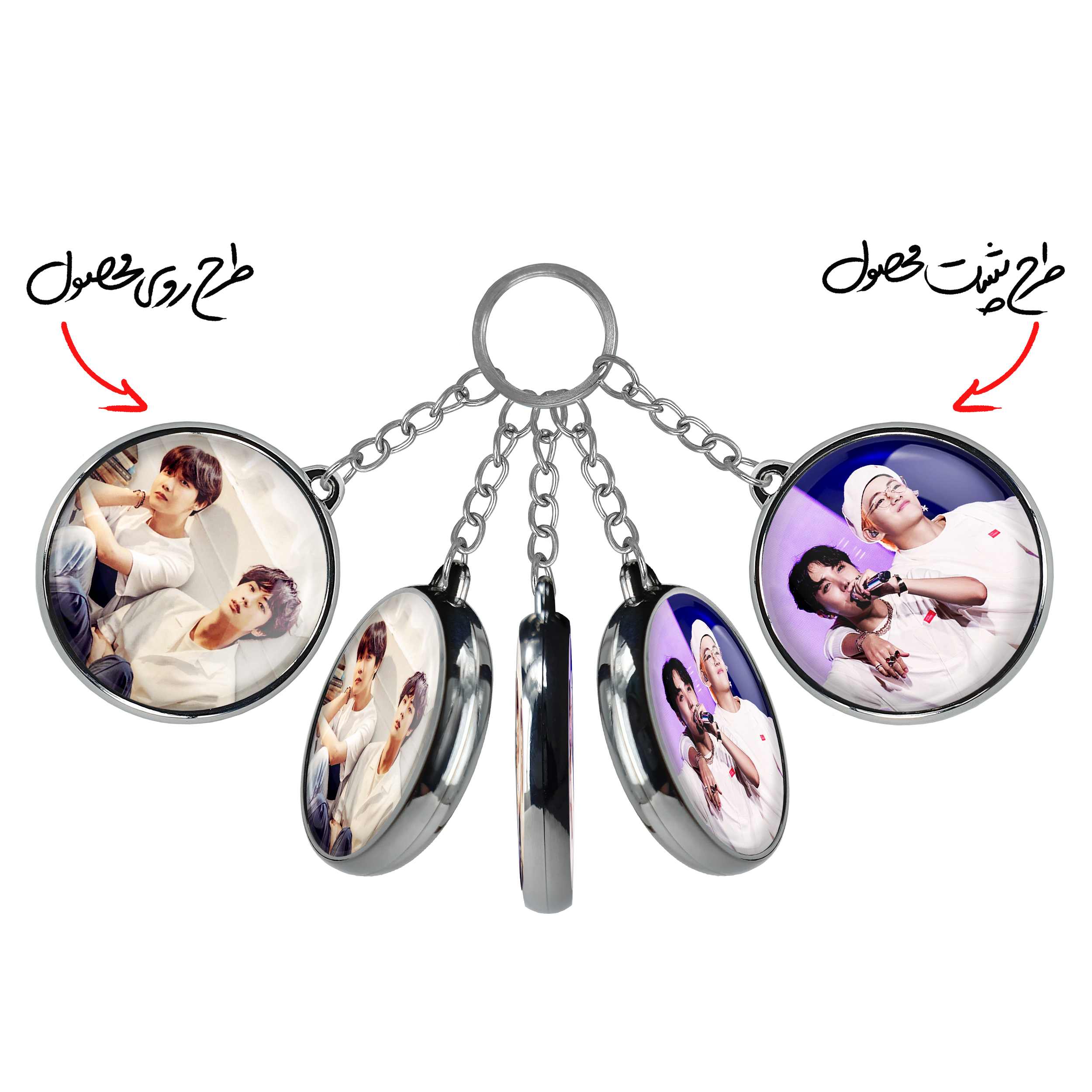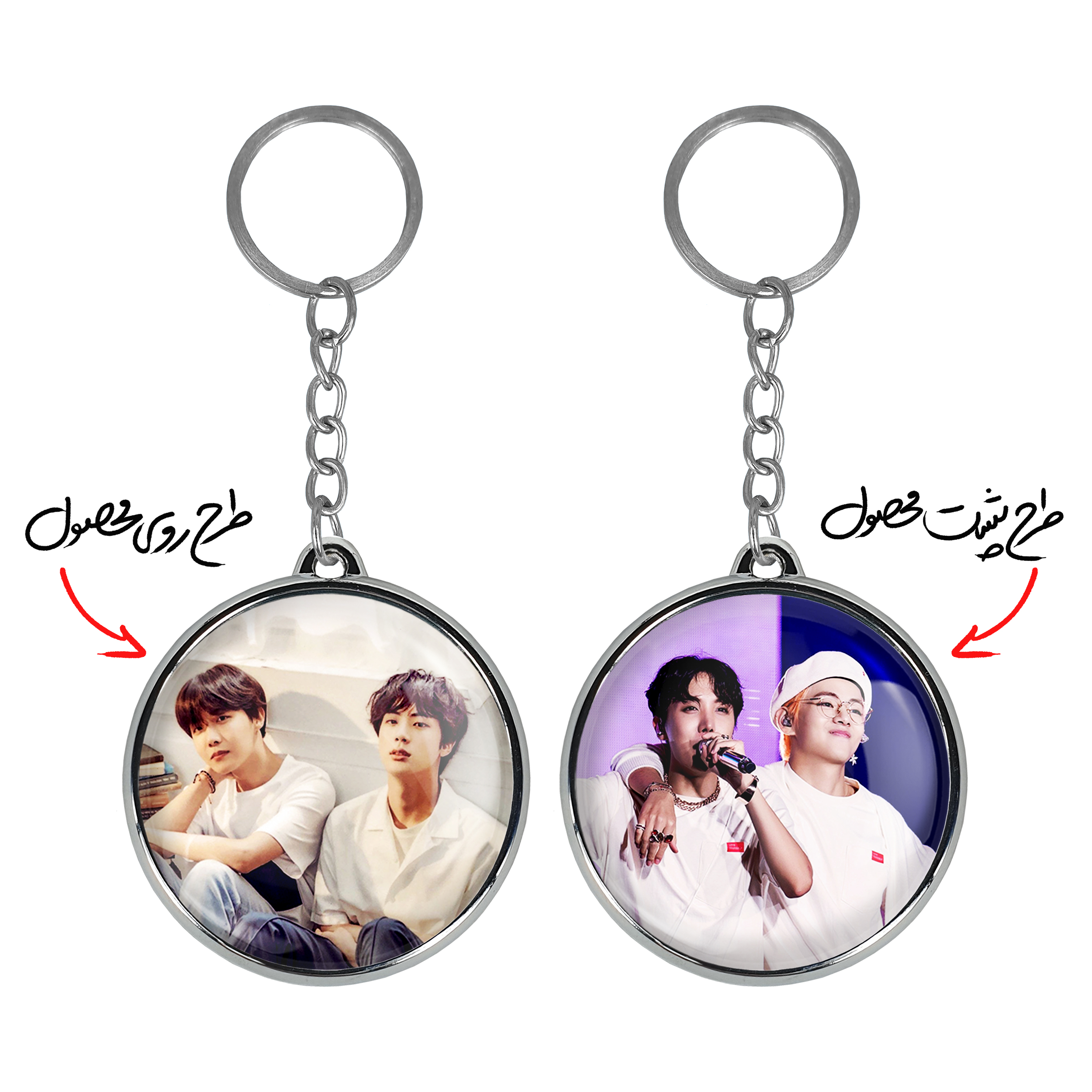 جاکلیدی دوطرفه گروه بی تی اس BTSخندالو محصولی کاربردی و جدید است که در هر دو سمت محصول، تصویری متفاوت اما از یک موضوع چاپ شده و تفاوت اصلی آن با جاکلیدی های یک طرفه در همین است که هر دو سمت پشت و روی جاکلیدی، طرحی دیدنی و جذاب دارد.