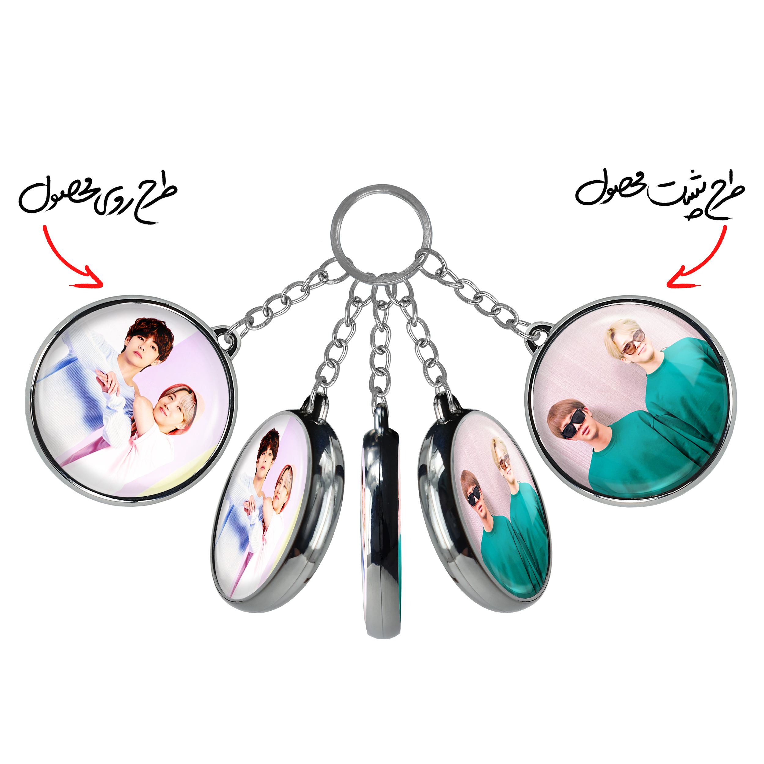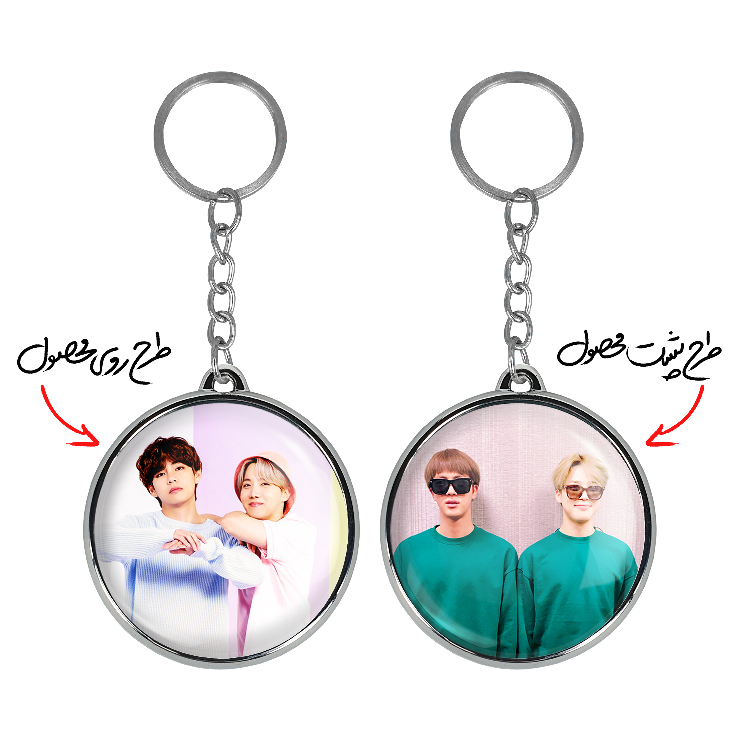 جاکلیدی دوطرفه گروه بی تی اس BTSخندالو محصولی کاربردی و جدید است که در هر دو سمت محصول، تصویری متفاوت اما از یک موضوع چاپ شده و تفاوت اصلی آن با جاکلیدی های یک طرفه در همین است که هر دو سمت پشت و روی جاکلیدی، طرحی دیدنی و جذاب دارد.