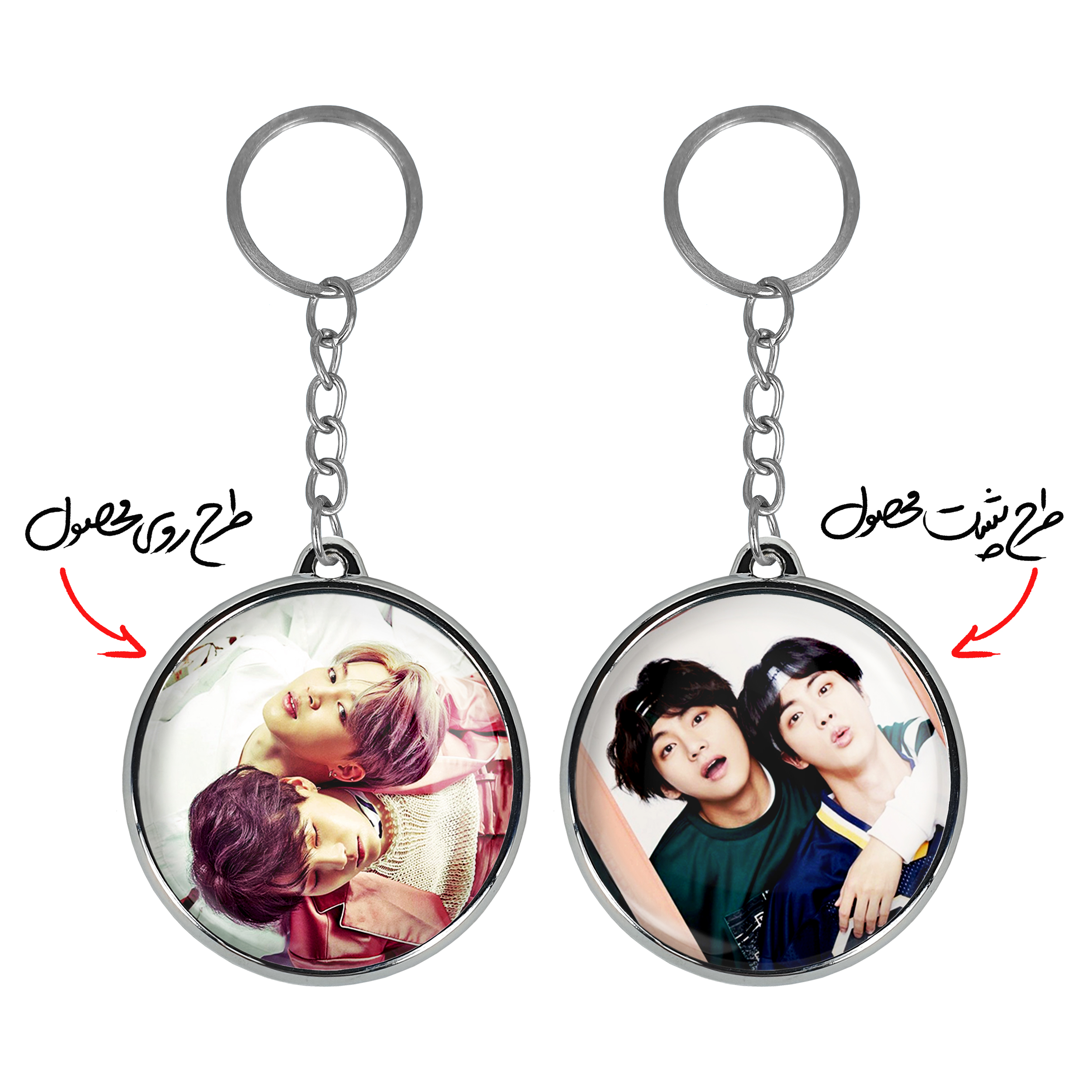جاکلیدی دوطرفه گروه بی تی اس BTSخندالو محصولی کاربردی و جدید است که در هر دو سمت محصول، تصویری متفاوت اما از یک موضوع چاپ شده و تفاوت اصلی آن با جاکلیدی های یک طرفه در همین است که هر دو سمت پشت و روی جاکلیدی، طرحی دیدنی و جذاب دارد.