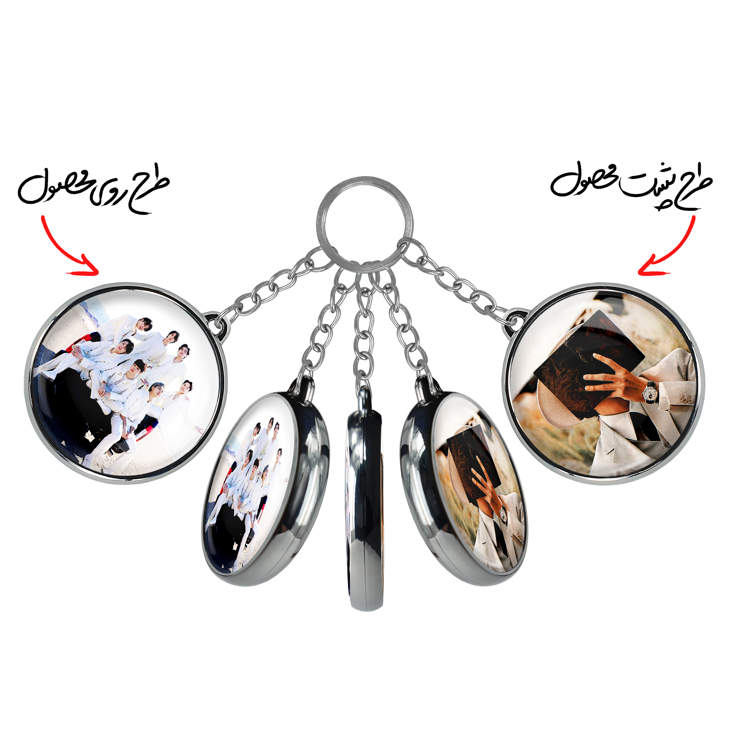 جاکلیدی دوطرفه گروه بی تی اس BTSخندالو محصولی کاربردی و جدید است که در هر دو سمت محصول، تصویری متفاوت اما از یک موضوع چاپ شده و تفاوت اصلی آن با جاکلیدی های یک طرفه در همین است که هر دو سمت پشت و روی جاکلیدی، طرحی دیدنی و جذاب دارد.