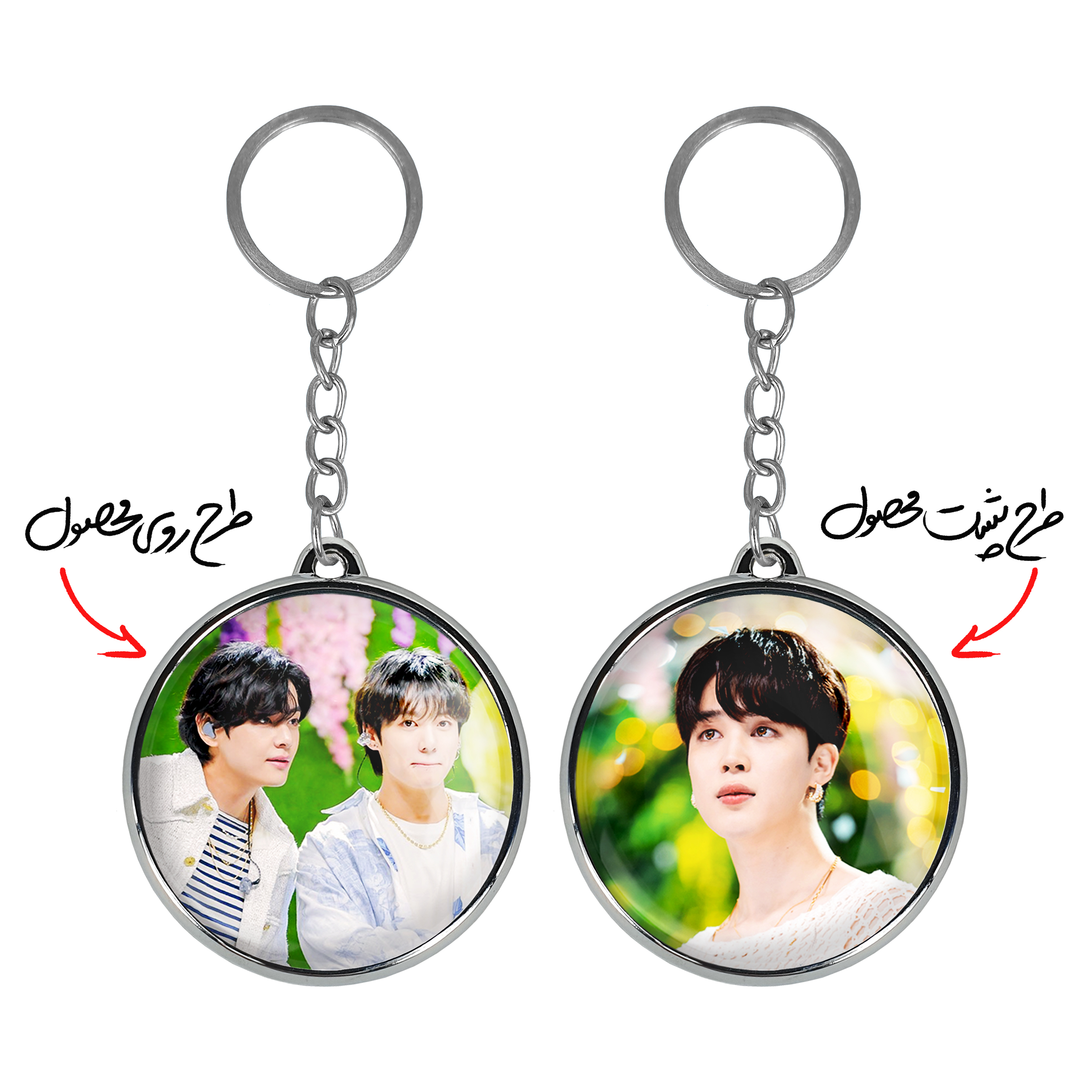 جاکلیدی دوطرفه گروه بی تی اس BTSخندالو محصولی کاربردی و جدید است که در هر دو سمت محصول، تصویری متفاوت اما از یک موضوع چاپ شده و تفاوت اصلی آن با جاکلیدی های یک طرفه در همین است که هر دو سمت پشت و روی جاکلیدی، طرحی دیدنی و جذاب دارد.
