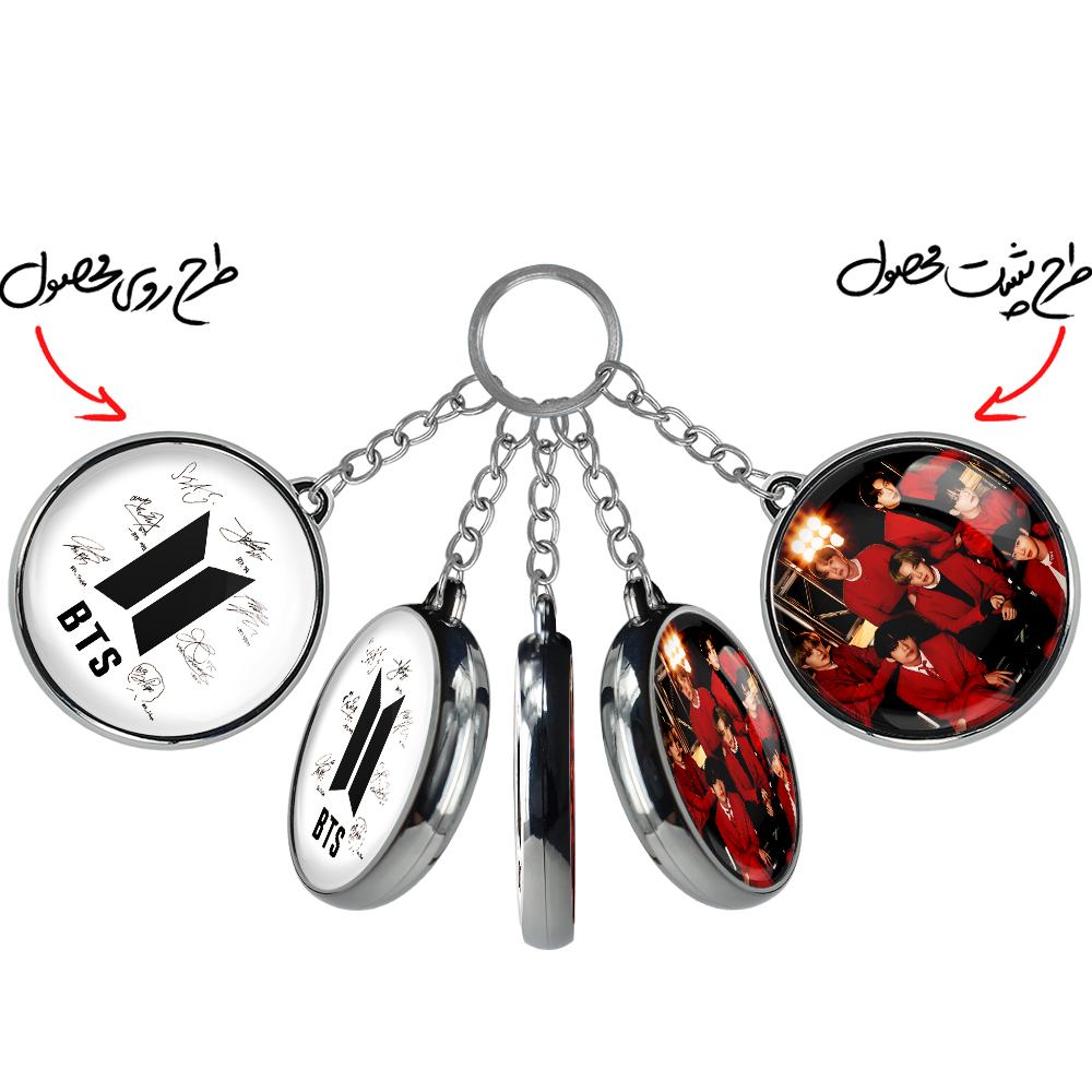 جاکلیدی دوطرفه گروه بی تی اس BTSخندالو محصولی کاربردی و جدید است که در هر دو سمت محصول، تصویری متفاوت اما از یک موضوع چاپ شده و تفاوت اصلی آن با جاکلیدی های یک طرفه در همین است که هر دو سمت پشت و روی جاکلیدی، طرحی دیدنی و جذاب دارد.