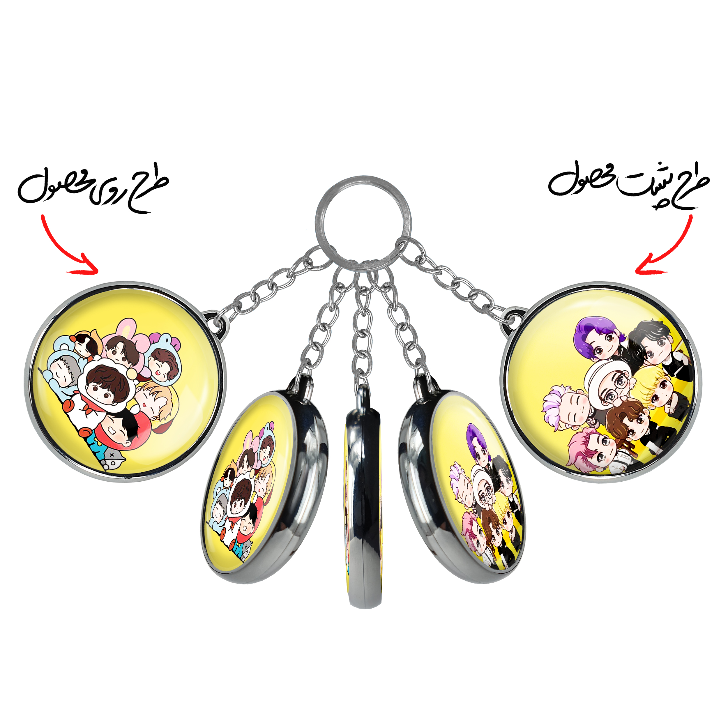 جاکلیدی دوطرفه گروه بی تی اس BTSخندالو محصولی کاربردی و جدید است که در هر دو سمت محصول، تصویری متفاوت اما از یک موضوع چاپ شده و تفاوت اصلی آن با جاکلیدی های یک طرفه در همین است که هر دو سمت پشت و روی جاکلیدی، طرحی دیدنی و جذاب دارد.