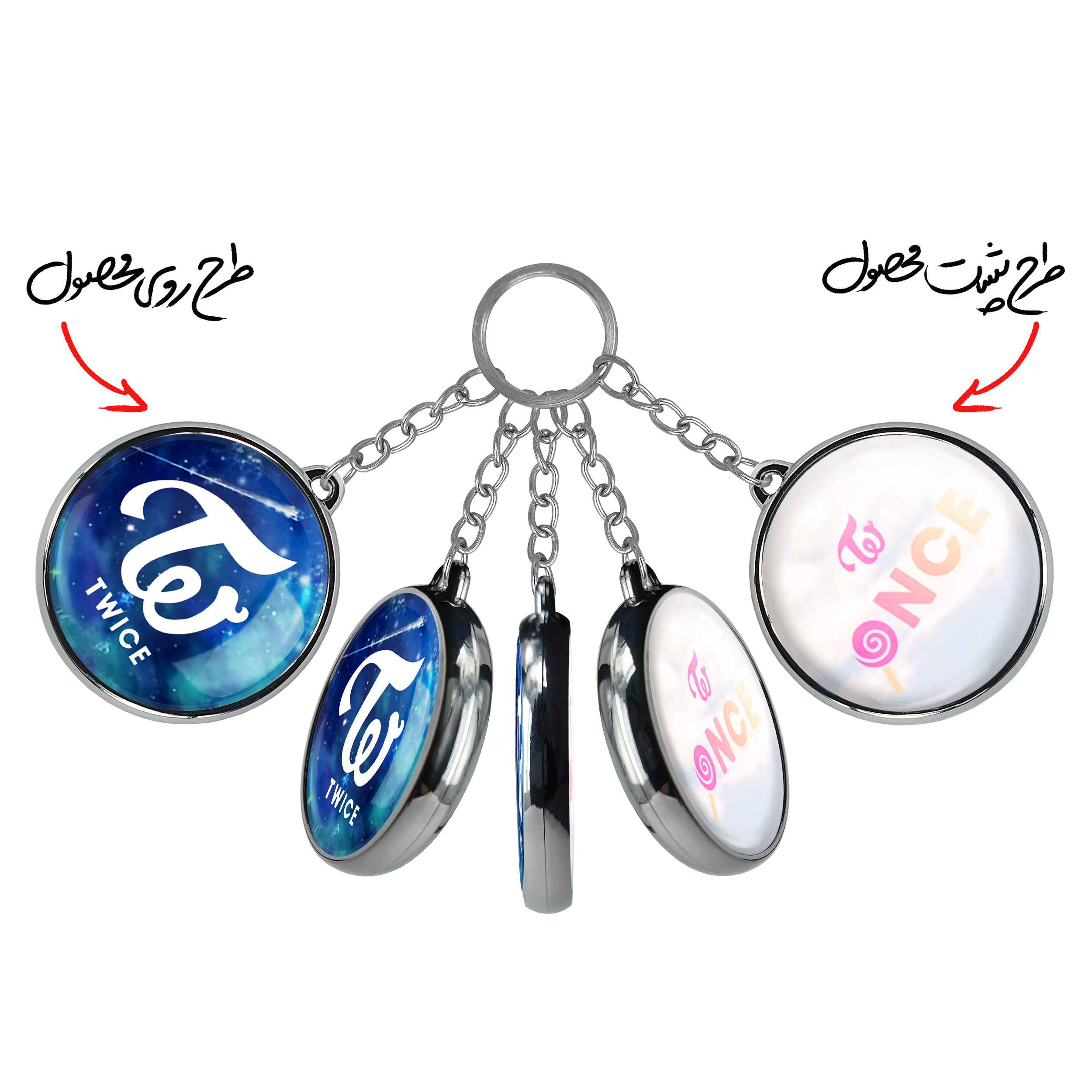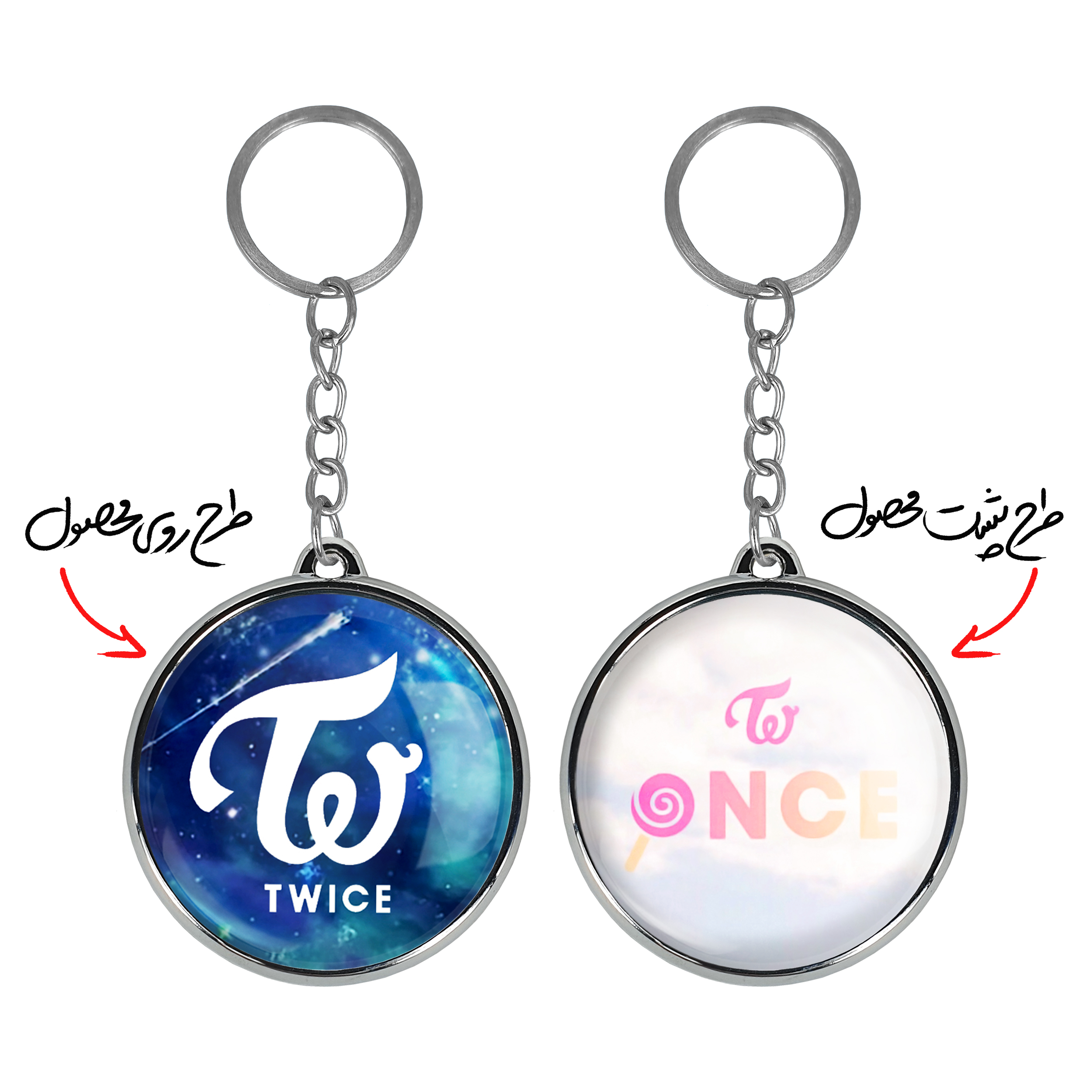 جاکلیدی دوطرفه گروه توایس TWICE خندالو محصولی کاربردی و جدید است که در هر دو سمت محصول، تصویری متفاوت اما از یک موضوع چاپ شده و تفاوت اصلی آن با جاکلیدی های یک طرفه در همین است که هر دو سمت پشت و روی جاکلیدی، طرحی دیدنی و جذاب دارد.