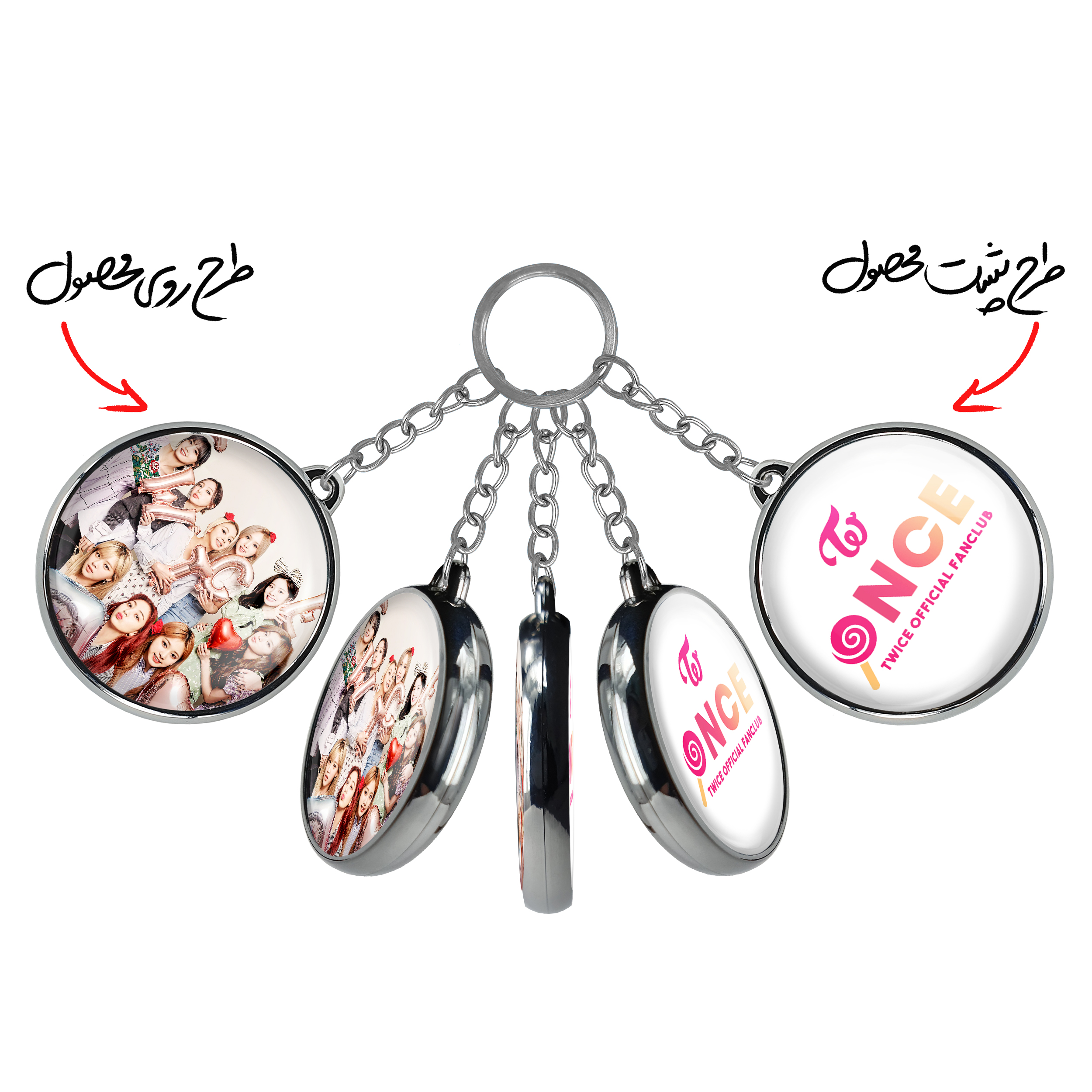 جاکلیدی دوطرفه گروه توایس TWICE خندالو محصولی کاربردی و جدید است که در هر دو سمت محصول، تصویری متفاوت اما از یک موضوع چاپ شده و تفاوت اصلی آن با جاکلیدی های یک طرفه در همین است که هر دو سمت پشت و روی جاکلیدی، طرحی دیدنی و جذاب دارد.