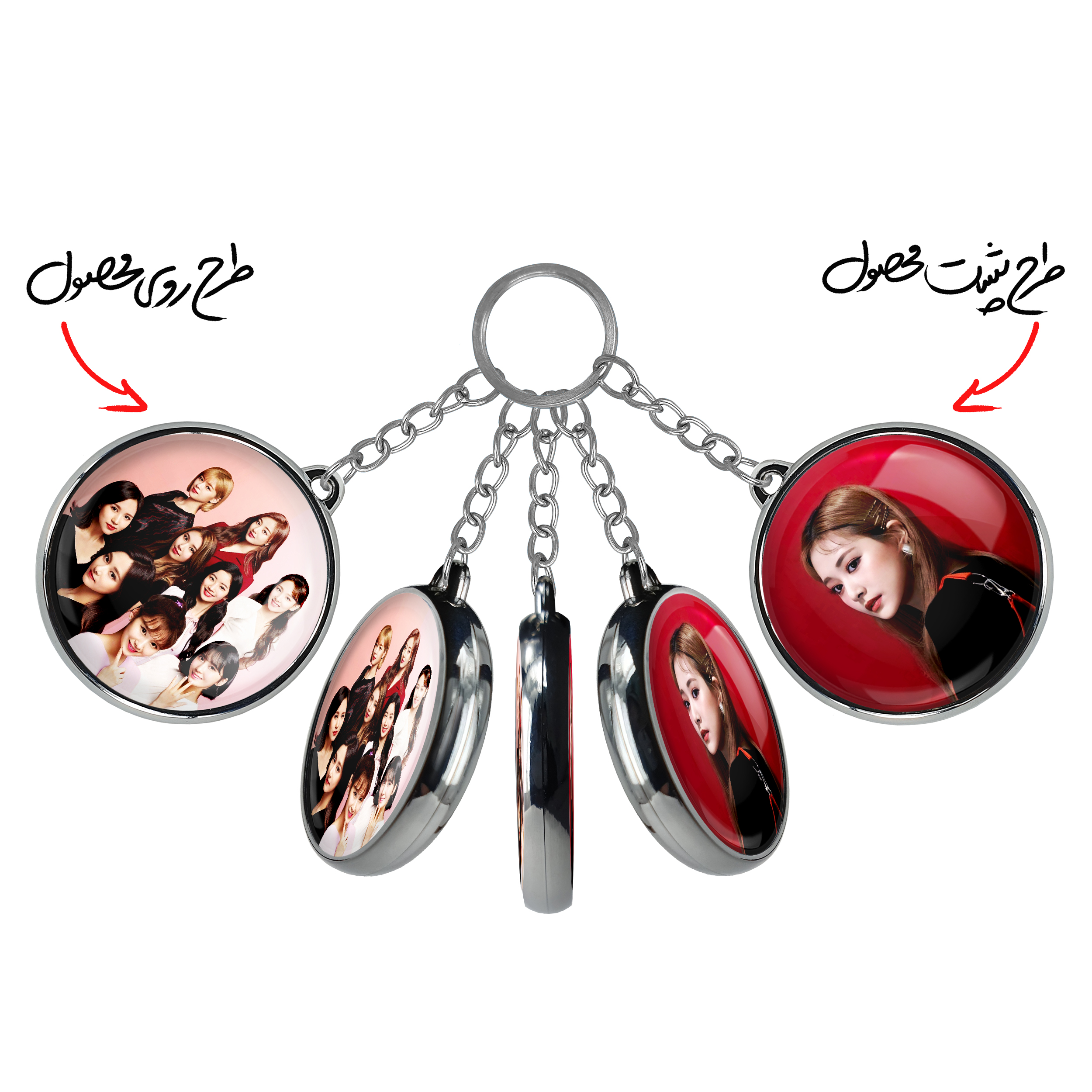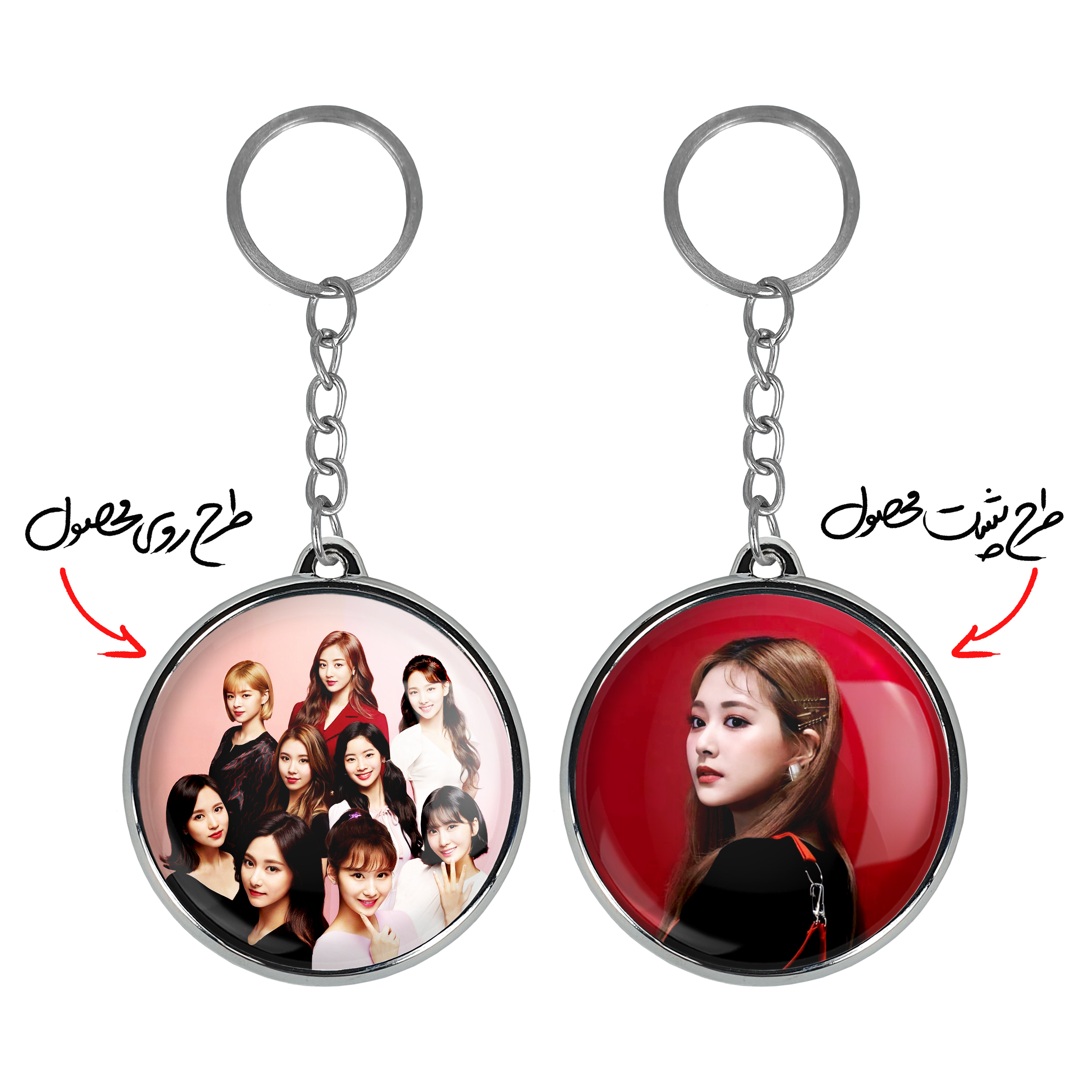جاکلیدی دوطرفه گروه توایس TWICE خندالو محصولی کاربردی و جدید است که در هر دو سمت محصول، تصویری متفاوت اما از یک موضوع چاپ شده و تفاوت اصلی آن با جاکلیدی های یک طرفه در همین است که هر دو سمت پشت و روی جاکلیدی، طرحی دیدنی و جذاب دارد.