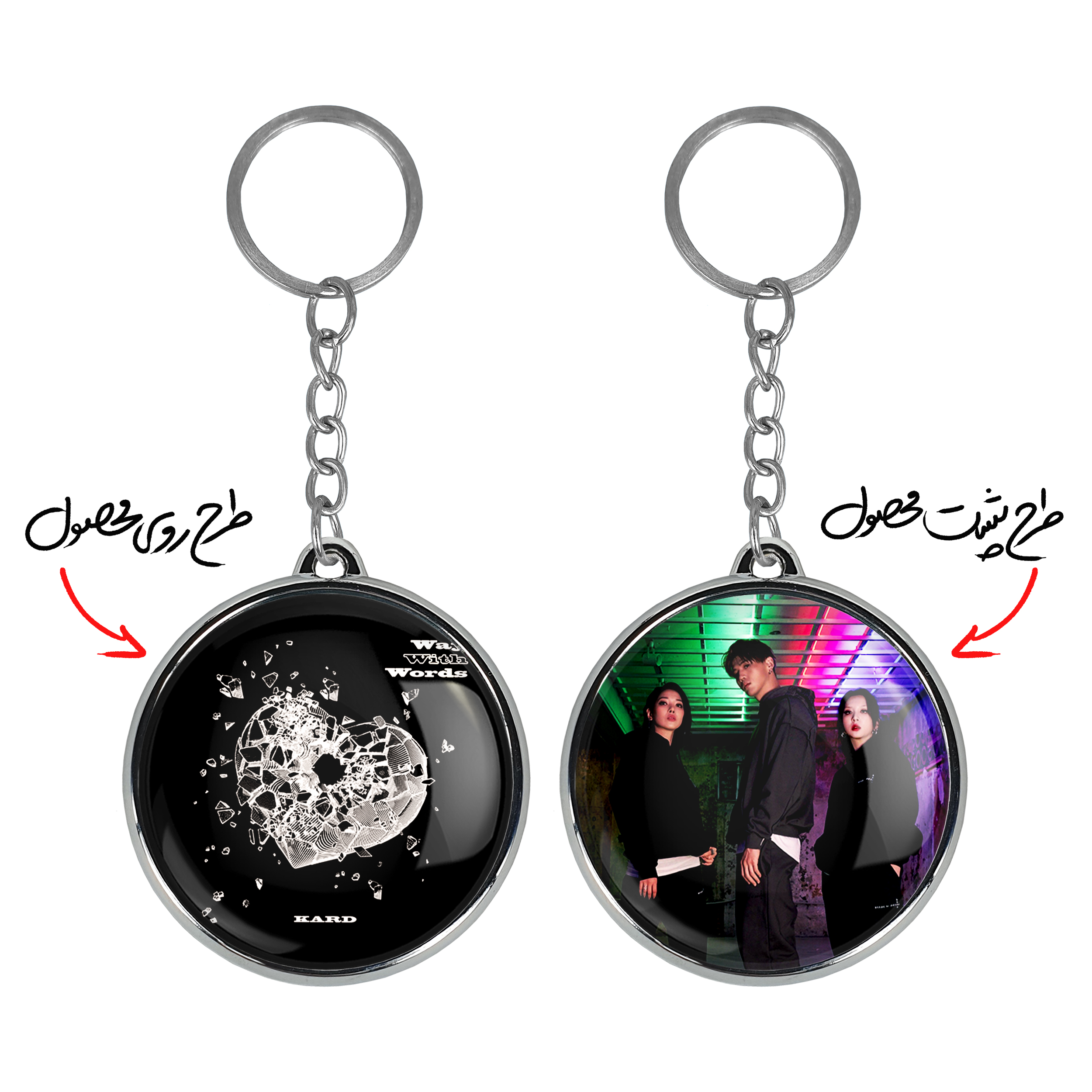 جاکلیدی دوطرفه گروه کارد Kard خندالو محصولی کاربردی و جدید است که در هر دو سمت محصول، تصویری متفاوت اما از یک موضوع چاپ شده و تفاوت اصلی آن با جاکلیدی های یک طرفه در همین است که هر دو سمت پشت و روی جاکلیدی، طرحی دیدنی و جذاب دارد. همچنین رینگ بکار برده شده برای دور طرح ها آبکاری کروم درجه یک و رنگ ثابت است و برخلاف سایر محصولات مشابه، از رنگ های متفرقه و یا سفید استفاده نشده، که این مهم، زیبایی محصول نهایی را چند برابر کرده است. جاکلیدی های دوطرفه گروه کارد Kard با استفاده از روکش سلفون براق ضدخش تولید شده که خاصیت ضدخش بودن آن عمر مفید استفاده از جاکلیدی ها را افزایش میدهد. چاپ جاکلیدی ها با دستگاه های استاندارد و با بهترین سطح کیفیت صورت گرفته و طرح با شفافیتی مثال زدنی و با سلفون چسبی تولید شده است که باعث شده محصول نهایی بدون شکست نور دیده شود. همچنین بسته بندی جذاب و مینیمال جاکلیدی دوطرفه گروه کارد Kard ، آنها را محصولی مناسب هدیه کرده است. زنجیر و حلقه بکار برده شده در جاکلیدی خندالو از نوع حلقه ضخیم و محکم بوده و حین استفاده آسیب نمی بیند.