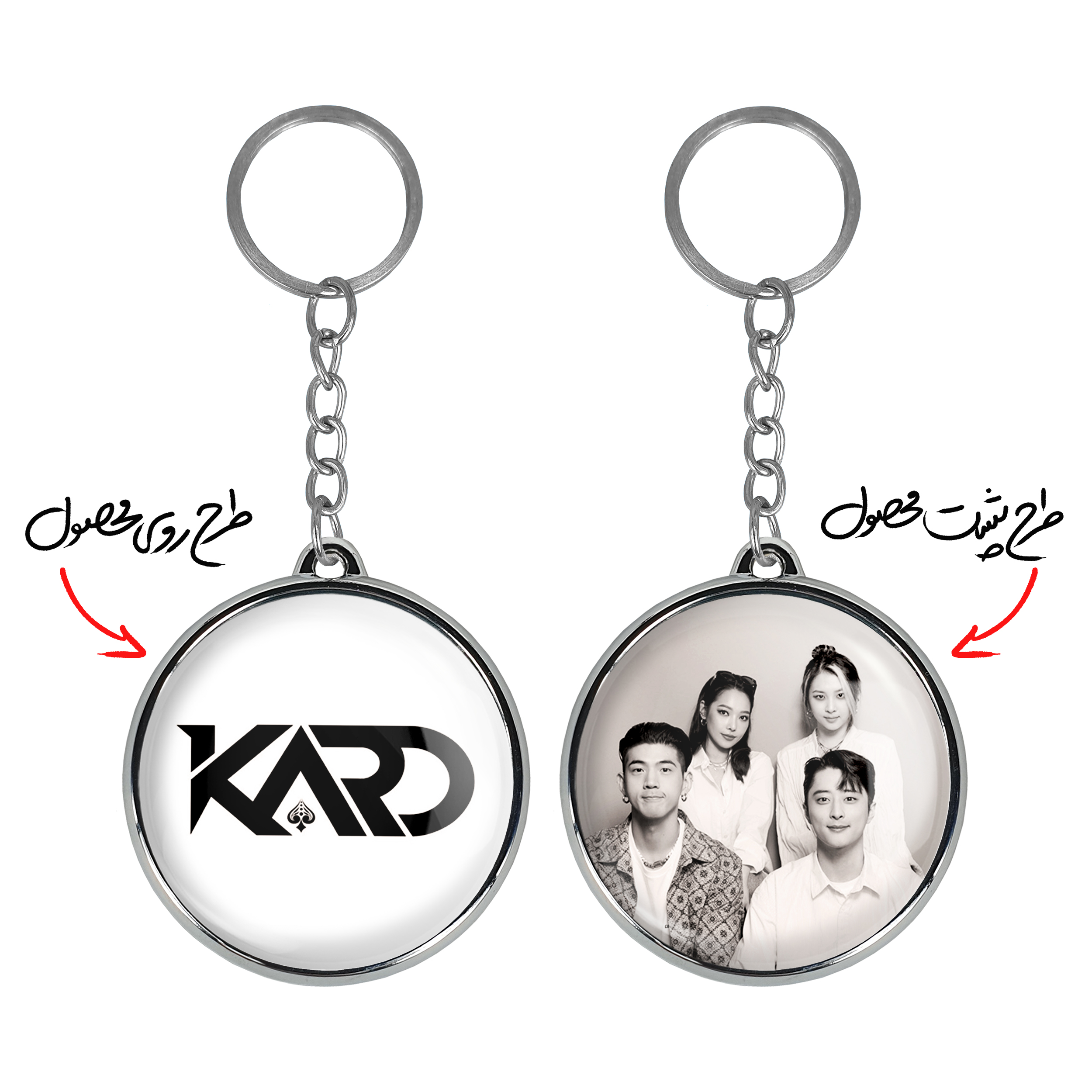 جاکلیدی دوطرفه گروه کارد Kard خندالو محصولی کاربردی و جدید است که در هر دو سمت محصول، تصویری متفاوت اما از یک موضوع چاپ شده و تفاوت اصلی آن با جاکلیدی های یک طرفه در همین است که هر دو سمت پشت و روی جاکلیدی، طرحی دیدنی و جذاب دارد. همچنین رینگ بکار برده شده برای دور طرح ها آبکاری کروم درجه یک و رنگ ثابت است و برخلاف سایر محصولات مشابه، از رنگ های متفرقه و یا سفید استفاده نشده، که این مهم، زیبایی محصول نهایی را چند برابر کرده است. جاکلیدی های دوطرفه گروه کارد Kard با استفاده از روکش سلفون براق ضدخش تولید شده که خاصیت ضدخش بودن آن عمر مفید استفاده از جاکلیدی ها را افزایش میدهد. چاپ جاکلیدی ها با دستگاه های استاندارد و با بهترین سطح کیفیت صورت گرفته و طرح با شفافیتی مثال زدنی و با سلفون چسبی تولید شده است که باعث شده محصول نهایی بدون شکست نور دیده شود. همچنین بسته بندی جذاب و مینیمال جاکلیدی دوطرفه گروه کارد Kard ، آنها را محصولی مناسب هدیه کرده است. زنجیر و حلقه بکار برده شده در جاکلیدی خندالو از نوع حلقه ضخیم و محکم بوده و حین استفاده آسیب نمی بیند.