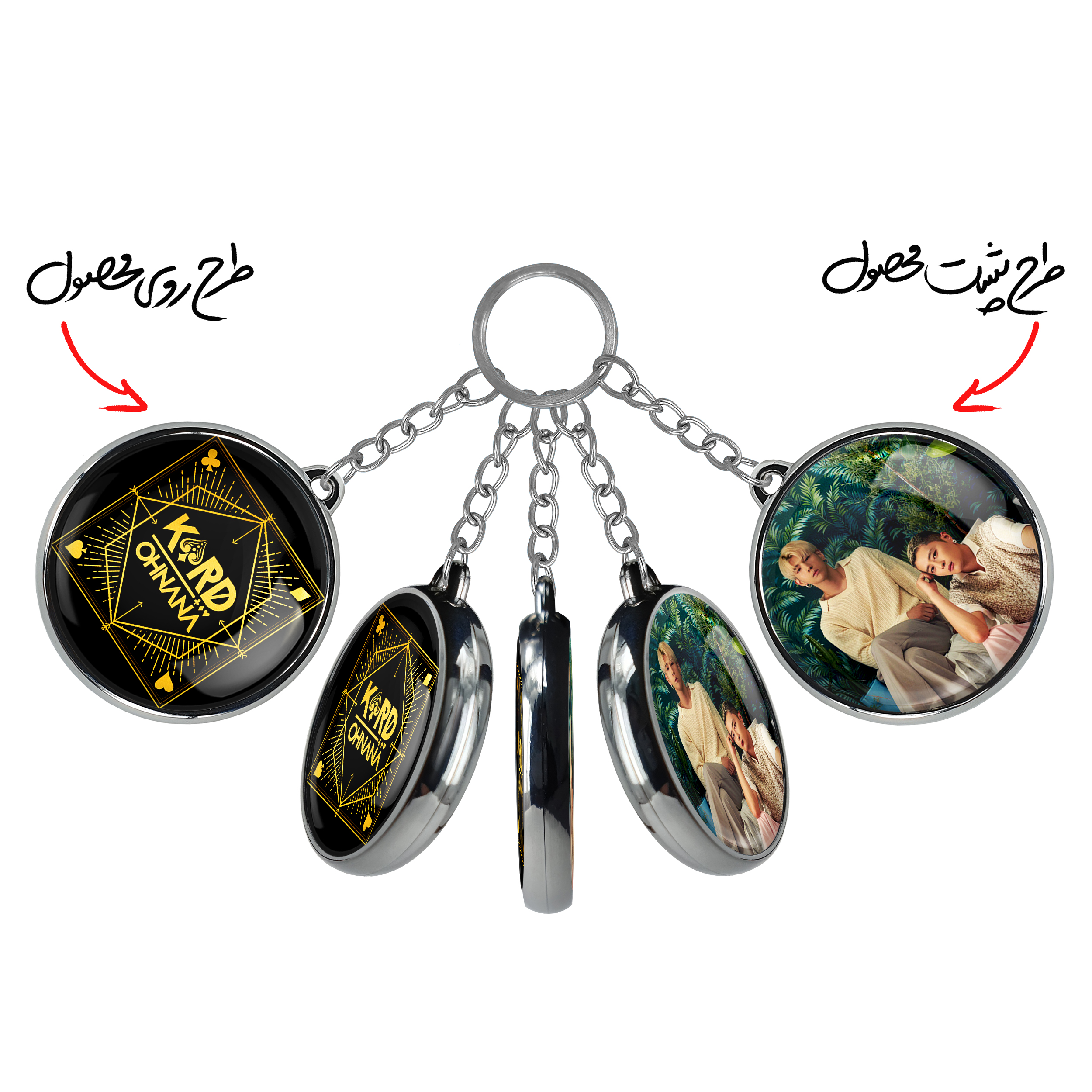 جاکلیدی دوطرفه گروه کارد Kard خندالو محصولی کاربردی و جدید است که در هر دو سمت محصول، تصویری متفاوت اما از یک موضوع چاپ شده و تفاوت اصلی آن با جاکلیدی های یک طرفه در همین است که هر دو سمت پشت و روی جاکلیدی، طرحی دیدنی و جذاب دارد. همچنین رینگ بکار برده شده برای دور طرح ها آبکاری کروم درجه یک و رنگ ثابت است و برخلاف سایر محصولات مشابه، از رنگ های متفرقه و یا سفید استفاده نشده، که این مهم، زیبایی محصول نهایی را چند برابر کرده است. جاکلیدی های دوطرفه گروه کارد Kard با استفاده از روکش سلفون براق ضدخش تولید شده که خاصیت ضدخش بودن آن عمر مفید استفاده از جاکلیدی ها را افزایش میدهد. چاپ جاکلیدی ها با دستگاه های استاندارد و با بهترین سطح کیفیت صورت گرفته و طرح با شفافیتی مثال زدنی و با سلفون چسبی تولید شده است که باعث شده محصول نهایی بدون شکست نور دیده شود. همچنین بسته بندی جذاب و مینیمال جاکلیدی دوطرفه گروه کارد Kard ، آنها را محصولی مناسب هدیه کرده است. زنجیر و حلقه بکار برده شده در جاکلیدی خندالو از نوع حلقه ضخیم و محکم بوده و حین استفاده آسیب نمی بیند.