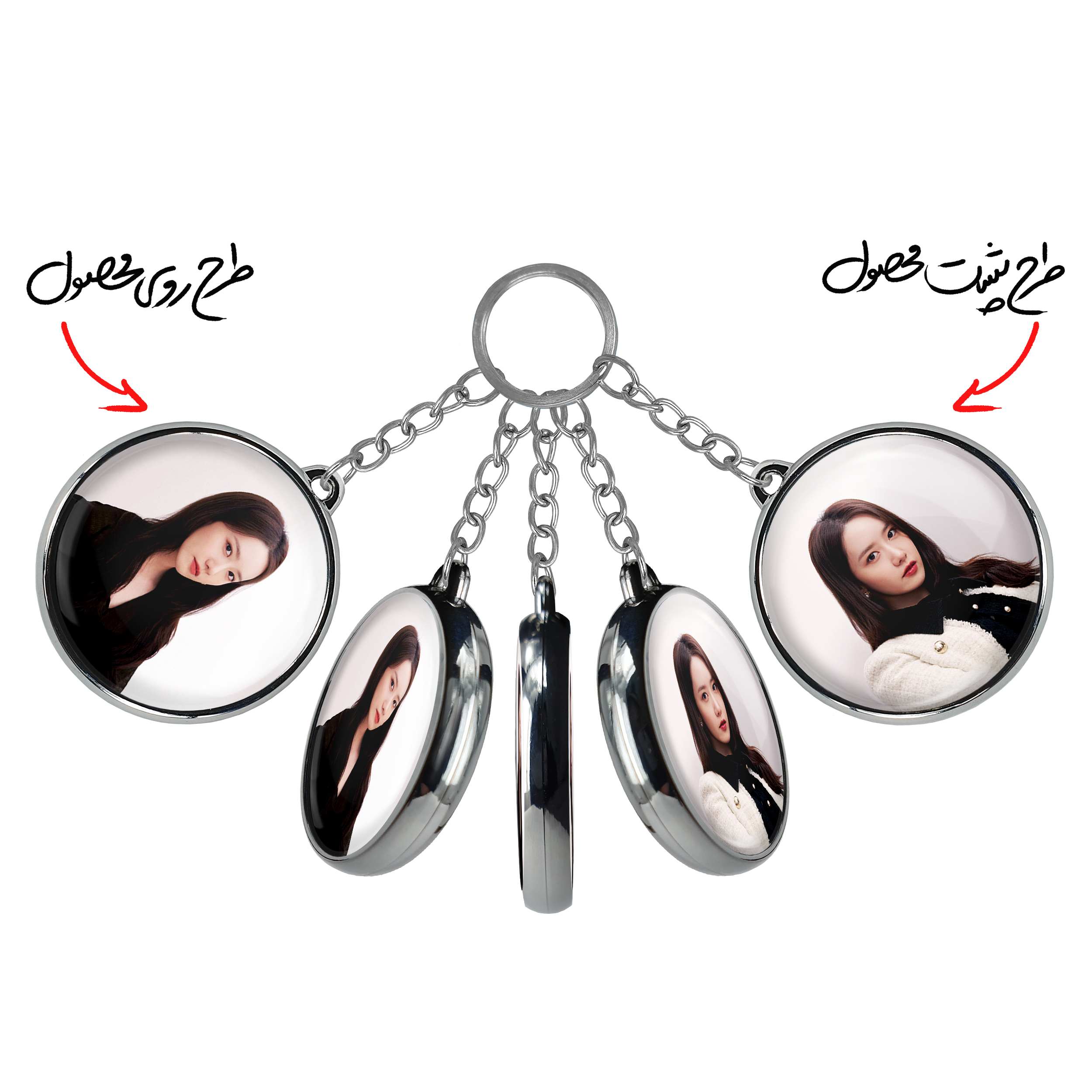 جاکلیدی دوطرفه گروه گرلز جنریشن Girls Generation خندالو محصولی کاربردی و جدید است که در هر دو سمت محصول، تصویری متفاوت اما از یک موضوع چاپ شده و تفاوت اصلی آن با جاکلیدی های یک طرفه در همین است که هر دو سمت پشت و روی جاکلیدی، طرحی دیدنی و جذاب دارد. همچنین رینگ بکار برده شده برای دور طرح ها آبکاری کروم درجه یک و رنگ ثابت است و برخلاف سایر محصولات مشابه، از رنگ های متفرقه و یا سفید استفاده نشده، که این مهم، زیبایی محصول نهایی را چند برابر کرده است. جاکلیدی های دوطرفه گروه گرلز جنریشن Girls Generation با استفاده از روکش سلفون براق ضدخش تولید شده که خاصیت ضدخش بودن آن عمر مفید استفاده از جاکلیدی ها را افزایش میدهد. چاپ جاکلیدی ها با دستگاه های استاندارد و با بهترین سطح کیفیت صورت گرفته و طرح با شفافیتی مثال زدنی و با سلفون چسبی تولید شده است که باعث شده محصول نهایی بدون شکست نور دیده شود. همچنین بسته بندی جذاب و مینیمال جاکلیدی دوطرفه گروه گرلز جنریشن Girls Generation ، آنها را محصولی مناسب هدیه کرده است. زنجیر و حلقه بکار برده شده در جاکلیدی خندالو از نوع حلقه ضخیم و محکم بوده و حین استفاده آسیب نمی بیند.