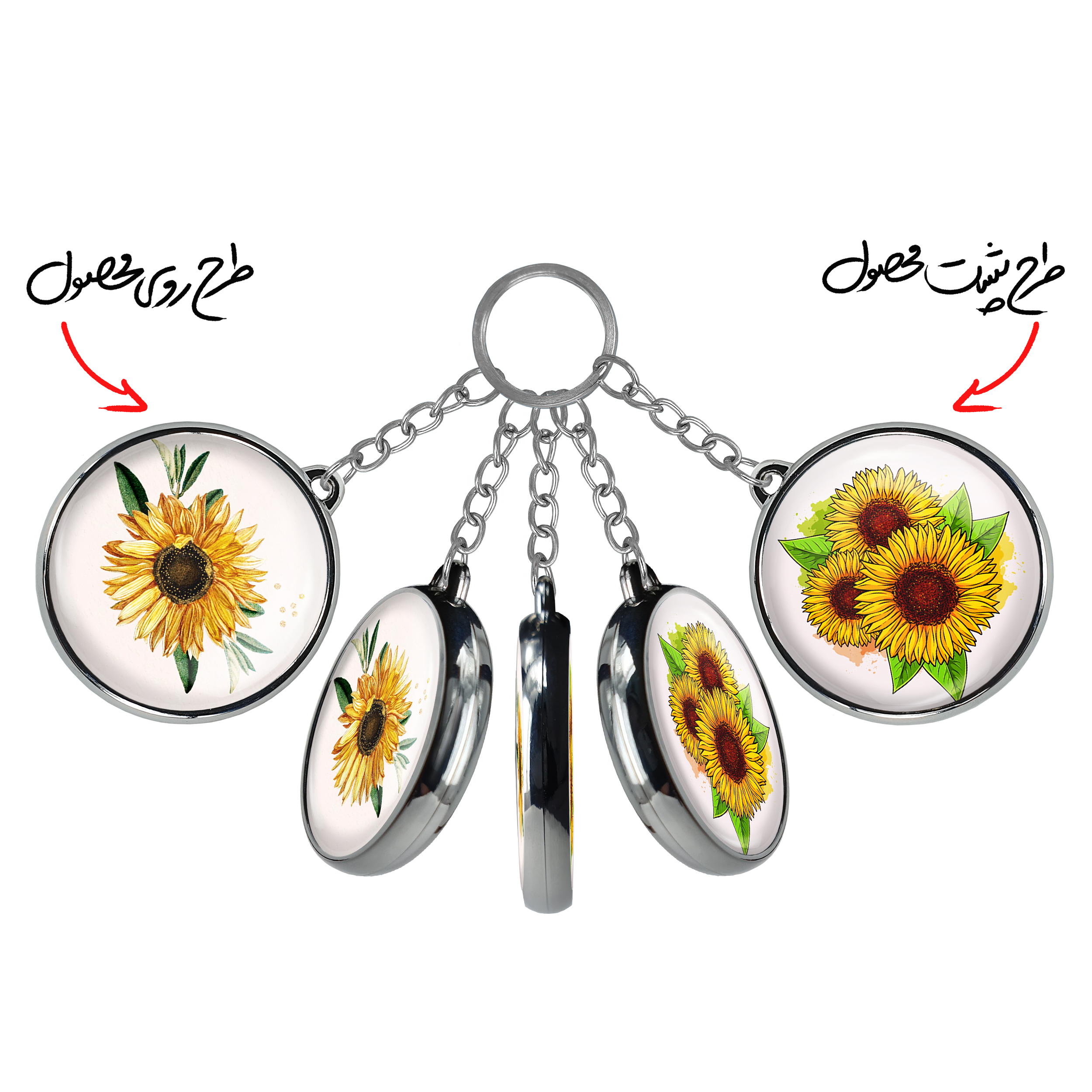 جاکلیدی دوطرفه گل آفتابگردانخندالو محصولی کاربردی و جدید است که در هر دو سمت محصول، تصویری متفاوت اما از یک موضوع چاپ شده و تفاوت اصلی آن با جاکلیدی های یک طرفه در همین است که هر دو سمت پشت و روی جاکلیدی، طرحی دیدنی و جذاب دارد.