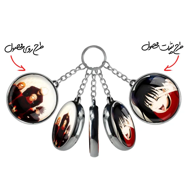 جاکلیدی دوطرفه گوجو و مگومی و ایتادوری و نوبارا انیمه جوجوتسو کایزن خندالو محصولی کاربردی و جدید است که در هر دو سمت محصول، تصویری متفاوت اما از یک موضوع چاپ شده و تفاوت اصلی آن با جاکلیدی های یک طرفه در همین است که هر دو سمت پشت و روی جاکلیدی، طرحی دیدنی و جذاب دارد.