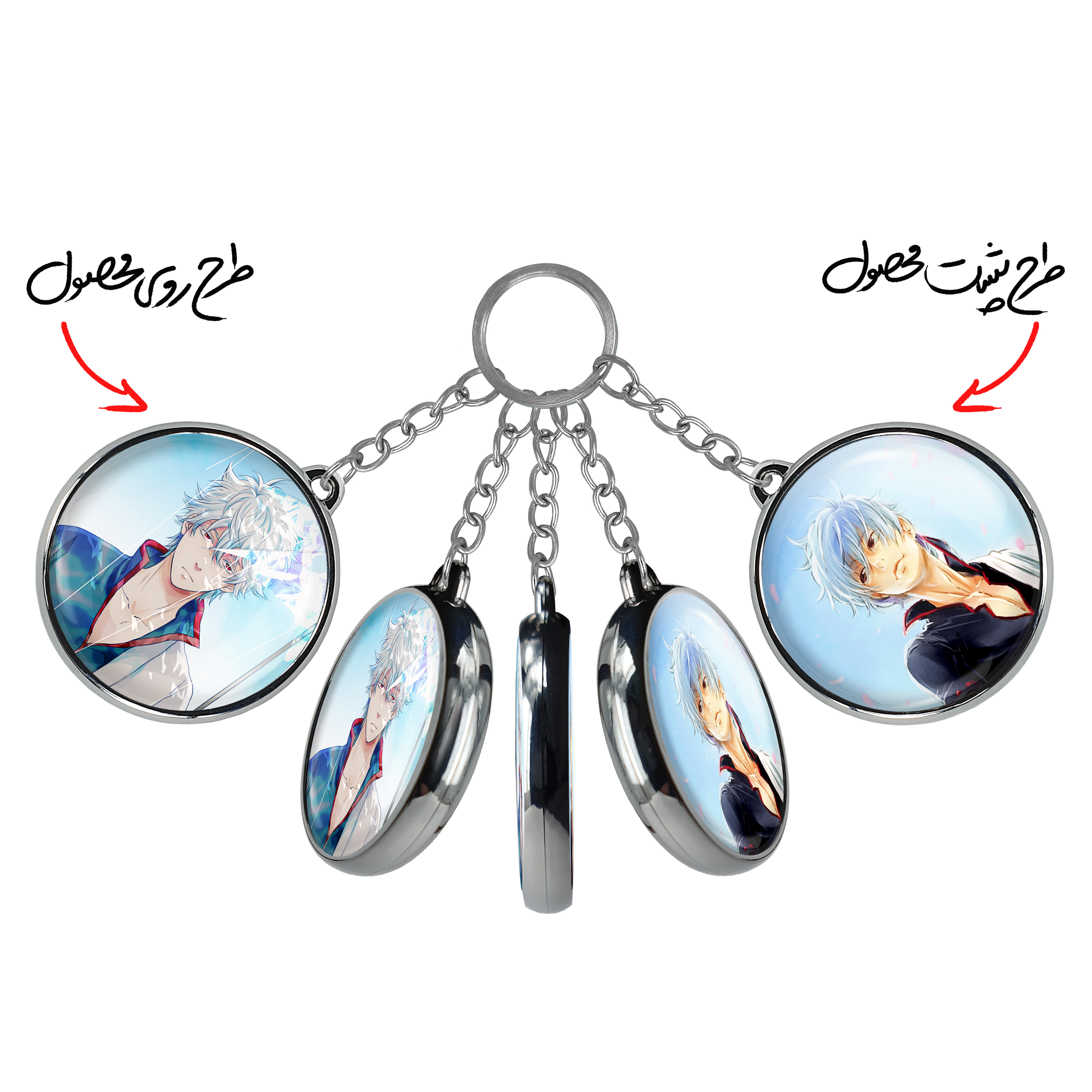 جاکلیدی دوطرفه گینتوکی انیمه گینتاما خندالو محصولی کاربردی و جدید است که در هر دو سمت محصول، تصویری متفاوت اما از یک موضوع چاپ شده و تفاوت اصلی آن با جاکلیدی های یک طرفه در همین است که هر دو سمت پشت و روی جاکلیدی، طرحی دیدنی و جذاب دارد.