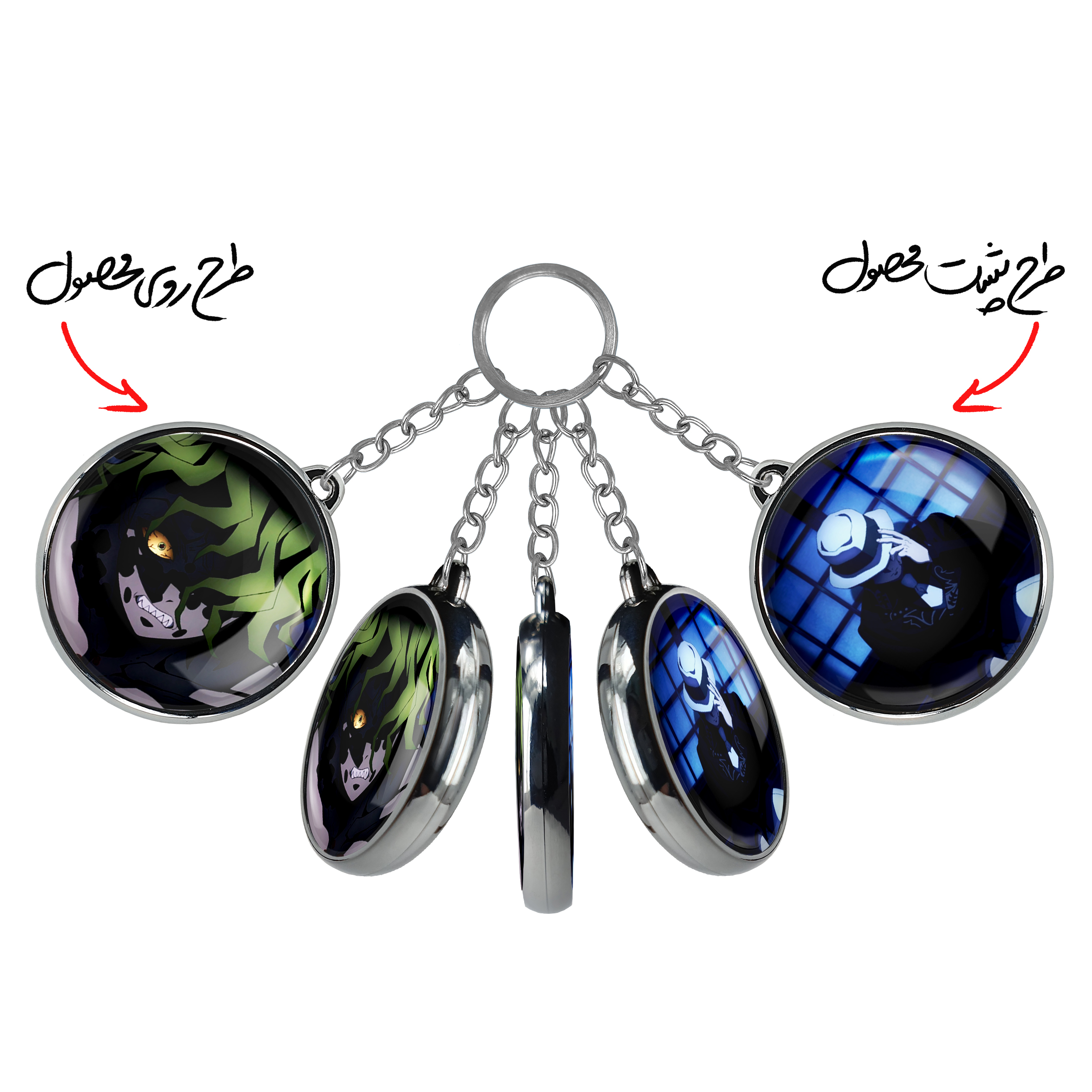 جاکلیدی دوطرفه گیوتارو انیمه شیطان کش خندالو محصولی کاربردی و جدید است که در هر دو سمت محصول، تصویری متفاوت اما از یک موضوع چاپ شده و تفاوت اصلی آن با جاکلیدی های یک طرفه در همین است که هر دو سمت پشت و روی جاکلیدی، طرحی دیدنی و جذاب دارد.