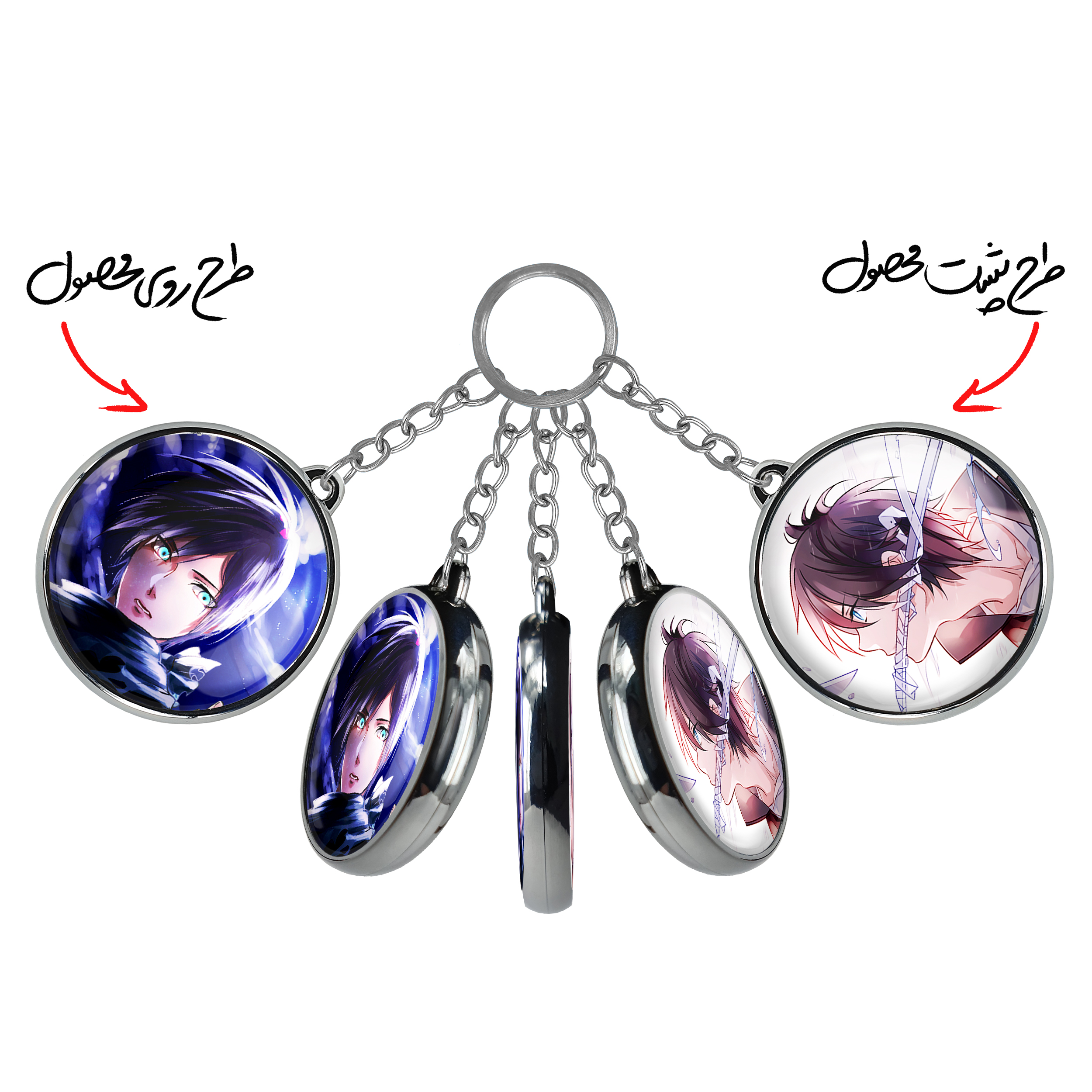 جاکلیدی دوطرفه یاتوگامی انیمه نوراگامی خندالو محصولی کاربردی و جدید است که در هر دو سمت محصول، تصویری متفاوت اما از یک موضوع چاپ شده و تفاوت اصلی آن با جاکلیدی های یک طرفه در همین است که هر دو سمت پشت و روی جاکلیدی، طرحی دیدنی و جذاب دارد. همچنین رینگ بکار برده شده برای دور طرح ها آبکاری کروم درجه یک و رنگ ثابت است و برخلاف سایر محصولات مشابه، از رنگ های متفرقه و یا سفید استفاده نشده، که این مهم، زیبایی محصول نهایی را چند برابر کرده است. جاکلیدی های دوطرفه یاتوگامی انیمه نوراگامی با استفاده از روکش سلفون براق ضدخش تولید شده که خاصیت ضدخش بودن آن عمر مفید استفاده از جاکلیدی ها را افزایش میدهد. چاپ جاکلیدی ها با دستگاه های استاندارد و با بهترین سطح کیفیت صورت گرفته و طرح با شفافیتی مثال زدنی و با سلفون چسبی تولید شده است که باعث شده محصول نهایی بدون شکست نور دیده شود. همچنین بسته بندی جذاب و مینیمال جاکلیدی دوطرفه یاتوگامی انیمه نوراگامی ، آنها را محصولی مناسب هدیه کرده است. زنجیر و حلقه بکار برده شده در جاکلیدی خندالو از نوع حلقه ضخیم و محکم بوده و حین استفاده آسیب نمی بیند.