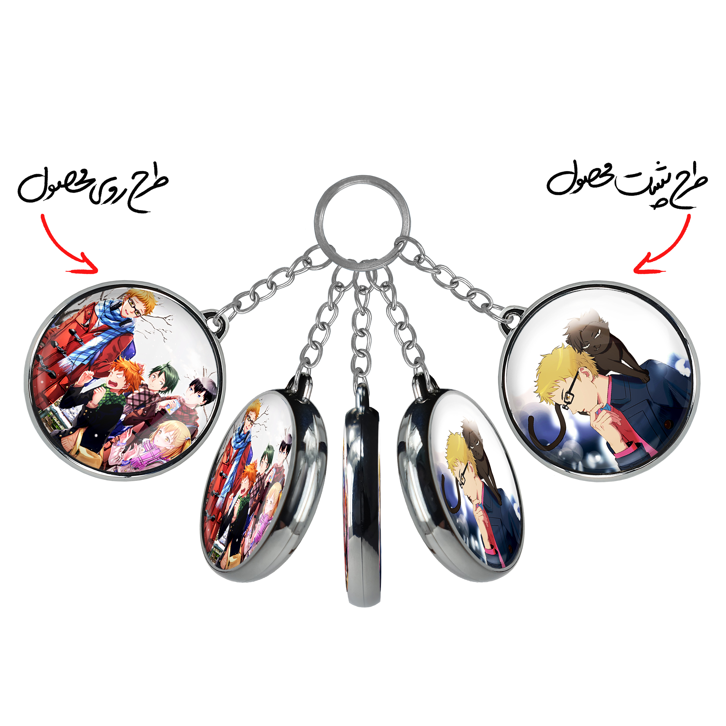 جاکلیدی دوطرفه یاماگوچی و سوکیشیما و هیناتا و کاگیاما انیمه آبشار سرنوشت هایکیو کاگیاما خندالو محصولی کاربردی و جدید است که در هر دو سمت محصول، تصویری متفاوت اما از یک موضوع چاپ شده و تفاوت اصلی آن با جاکلیدی های یک طرفه در همین است که هر دو سمت پشت و روی جاکلیدی، طرحی دیدنی و جذاب دارد. همچنین رینگ بکار برده شده برای دور طرح ها آبکاری کروم درجه یک و رنگ ثابت است و برخلاف سایر محصولات مشابه، از رنگ های متفرقه و یا سفید استفاده نشده، که این مهم، زیبایی محصول نهایی را چند برابر کرده است. جاکلیدی های دوطرفه یاماگوچی و سوکیشیما و هیناتا و کاگیاما انیمه آبشار سرنوشت هایکیو کاگیاما با استفاده از روکش سلفون براق ضدخش تولید شده که خاصیت ضدخش بودن آن عمر مفید استفاده از جاکلیدی ها را افزایش میدهد. چاپ جاکلیدی ها با دستگاه های استاندارد و با بهترین سطح کیفیت صورت گرفته و طرح با شفافیتی مثال زدنی و با سلفون چسبی تولید شده است که باعث شده محصول نهایی بدون شکست نور دیده شود. همچنین بسته بندی جذاب و مینیمال جاکلیدی دوطرفه یاماگوچی و سوکیشیما و هیناتا و کاگیاما انیمه آبشار سرنوشت هایکیو کاگیاما ، آنها را محصولی مناسب هدیه کرده است. زنجیر و حلقه بکار برده شده در جاکلیدی خندالو از نوع حلقه ضخیم و محکم بوده و حین استفاده آسیب نمی بیند.