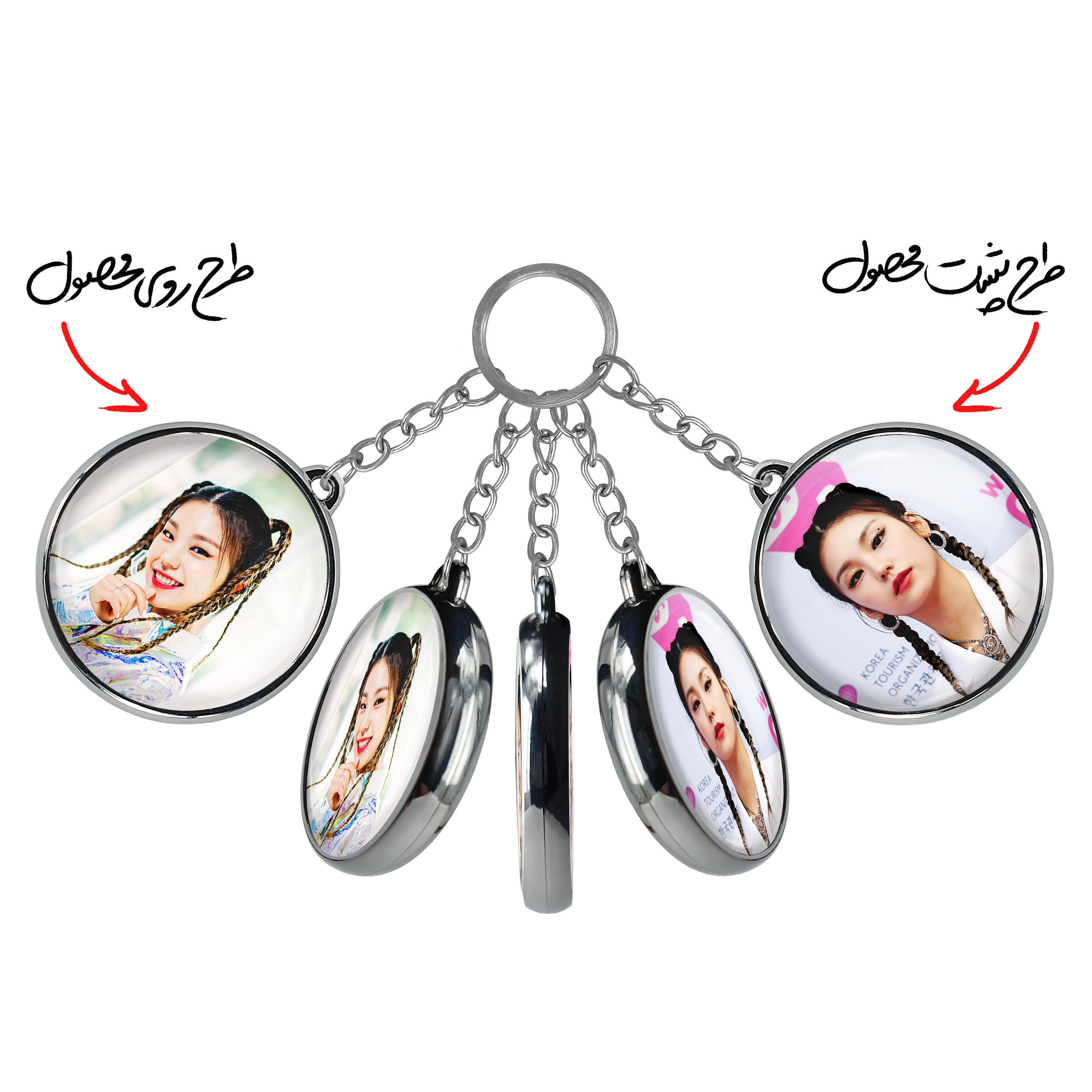 جاکلیدی دوطرفه یجی گروه ایتزی ITZY خندالو محصولی کاربردی و جدید است که در هر دو سمت محصول، تصویری متفاوت اما از یک موضوع چاپ شده و تفاوت اصلی آن با جاکلیدی های یک طرفه در همین است که هر دو سمت پشت و روی جاکلیدی، طرحی دیدنی و جذاب دارد.