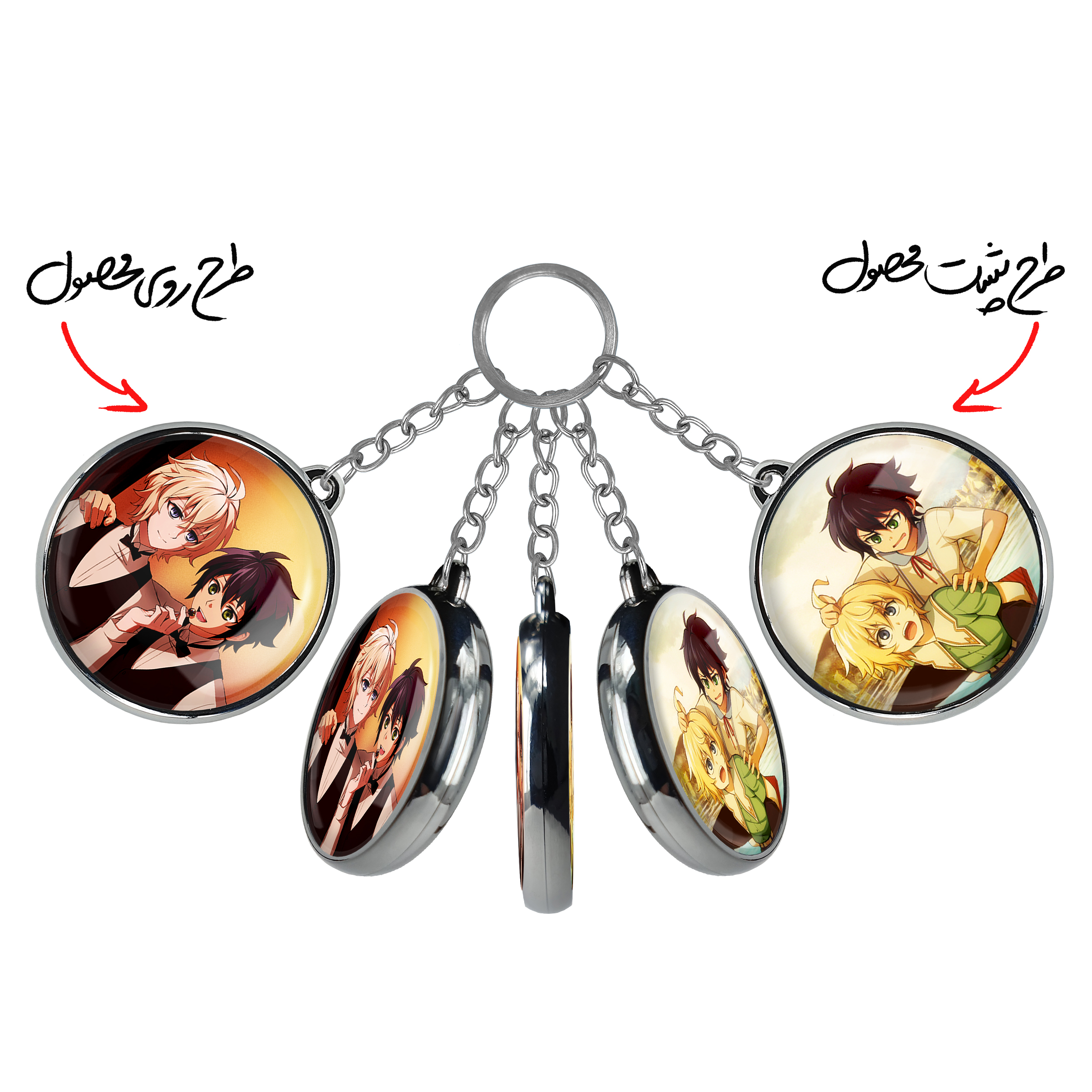 جاکلیدی دوطرفه یویچیرو و میکائیل انیمه اسرافیل پایانی خندالو محصولی کاربردی و جدید است که در هر دو سمت محصول، تصویری متفاوت اما از یک موضوع چاپ شده و تفاوت اصلی آن با جاکلیدی های یک طرفه در همین است که هر دو سمت پشت و روی جاکلیدی، طرحی دیدنی و جذاب دارد.