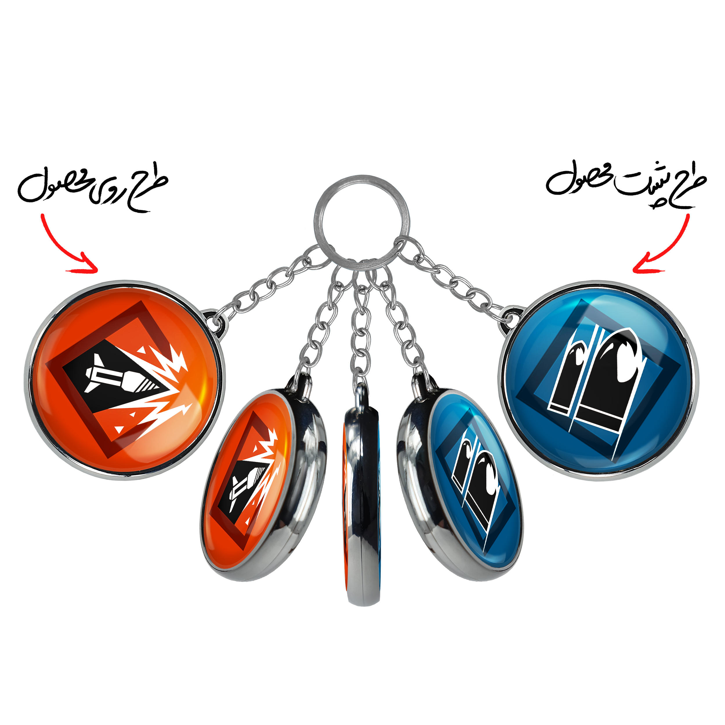 جاکلیدی دوطرفه ash بازی رینبو سیکس سیج خندالو محصولی کاربردی و جدید است که در هر دو سمت محصول، تصویری متفاوت اما از یک موضوع چاپ شده و تفاوت اصلی آن با جاکلیدی های یک طرفه در همین است که هر دو سمت پشت و روی جاکلیدی، طرحی دیدنی و جذاب دارد. همچنین رینگ بکار برده شده برای دور طرح ها آبکاری کروم درجه یک و رنگ ثابت است و برخلاف سایر محصولات مشابه، از رنگ های متفرقه و یا سفید استفاده نشده، که این مهم، زیبایی محصول نهایی را چند برابر کرده است. جاکلیدی های دوطرفه ash بازی رینبو سیکس سیج با استفاده از روکش سلفون براق ضدخش تولید شده که خاصیت ضدخش بودن آن عمر مفید استفاده از جاکلیدی ها را افزایش میدهد. چاپ جاکلیدی ها با دستگاه های استاندارد و با بهترین سطح کیفیت صورت گرفته و طرح با شفافیتی مثال زدنی و با سلفون چسبی تولید شده است که باعث شده محصول نهایی بدون شکست نور دیده شود. همچنین بسته بندی جذاب و مینیمال جاکلیدی دوطرفه ash بازی رینبو سیکس سیج ، آنها را محصولی مناسب هدیه کرده است. زنجیر و حلقه بکار برده شده در جاکلیدی خندالو از نوع حلقه ضخیم و محکم بوده و حین استفاده آسیب نمی بیند.