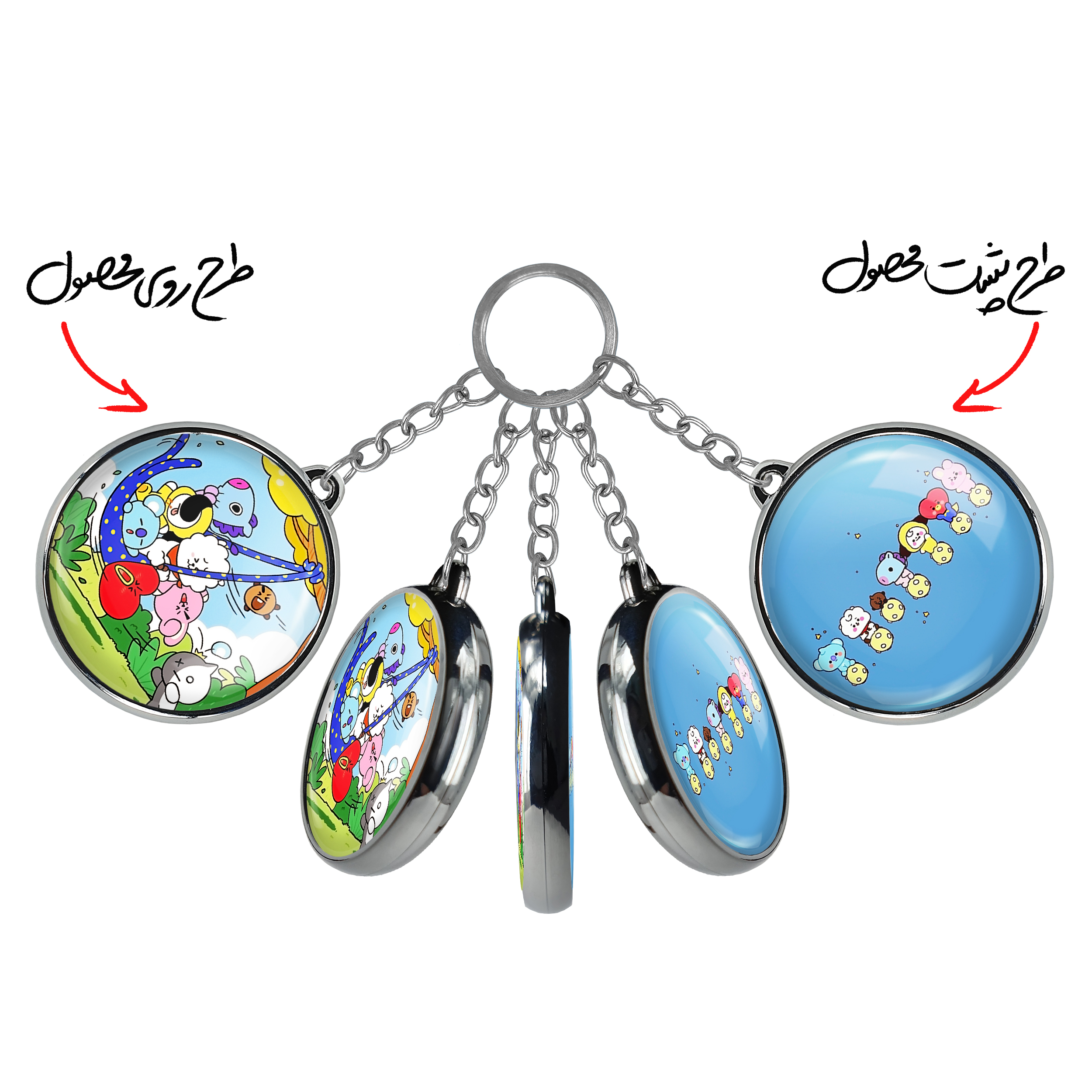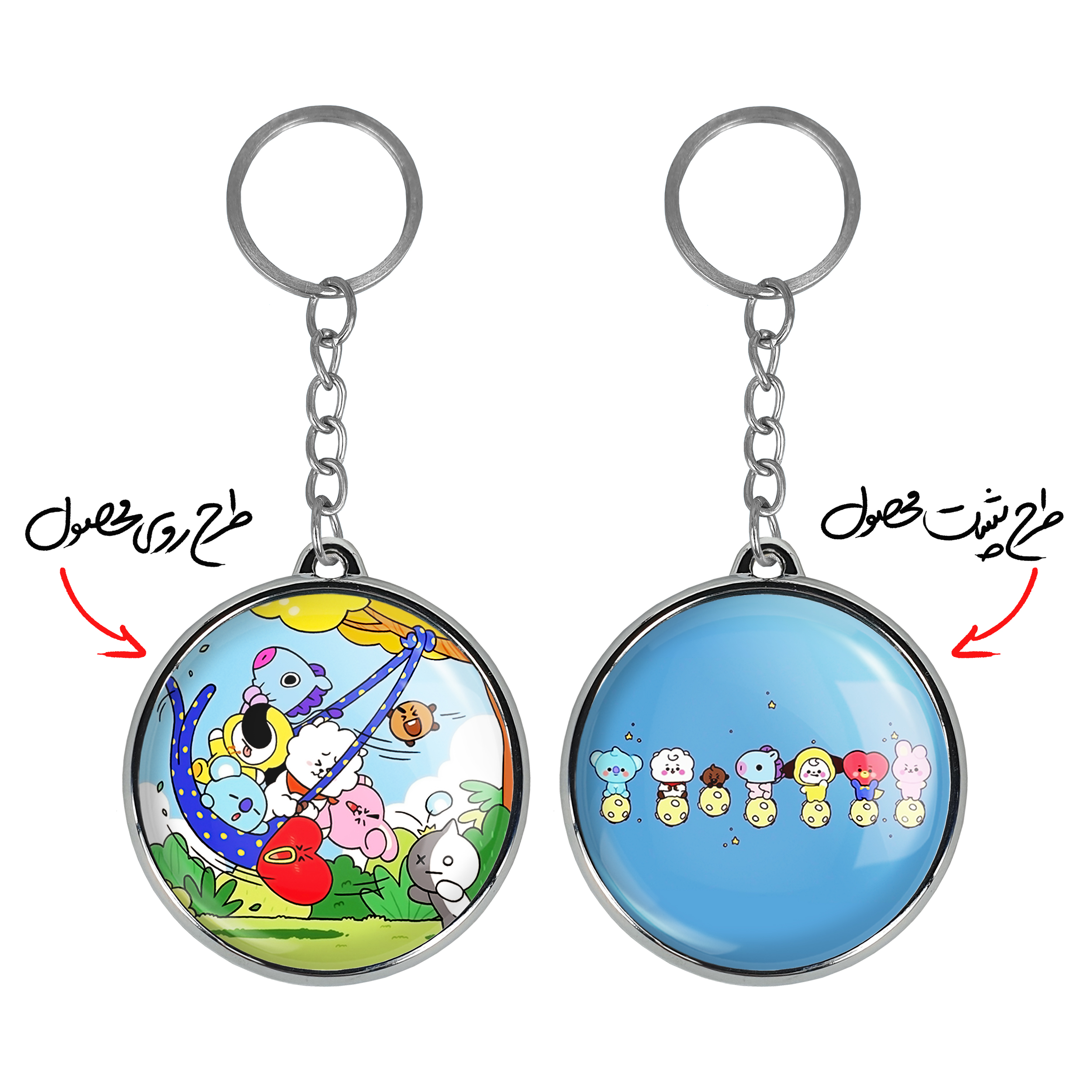 جاکلیدی دوطرفه BT21 خندالو محصولی کاربردی و جدید است که در هر دو سمت محصول، تصویری متفاوت اما از یک موضوع چاپ شده و تفاوت اصلی آن با جاکلیدی های یک طرفه در همین است که هر دو سمت پشت و روی جاکلیدی، طرحی دیدنی و جذاب دارد.