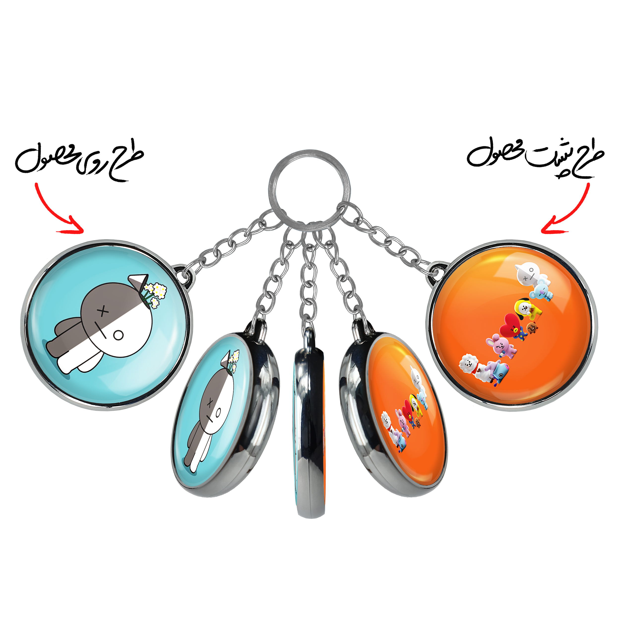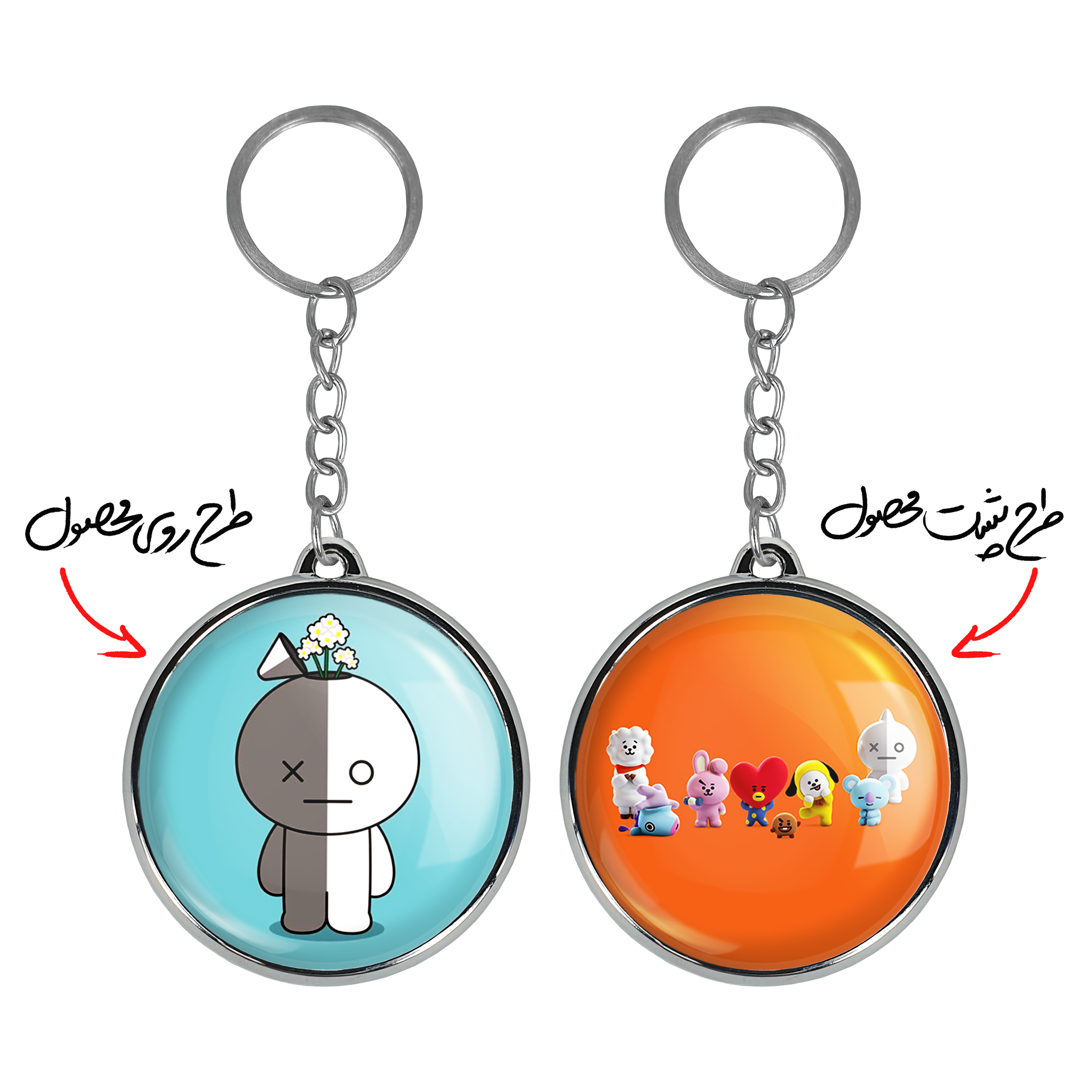 جاکلیدی دوطرفه BT21 خندالو محصولی کاربردی و جدید است که در هر دو سمت محصول، تصویری متفاوت اما از یک موضوع چاپ شده و تفاوت اصلی آن با جاکلیدی های یک طرفه در همین است که هر دو سمت پشت و روی جاکلیدی، طرحی دیدنی و جذاب دارد.