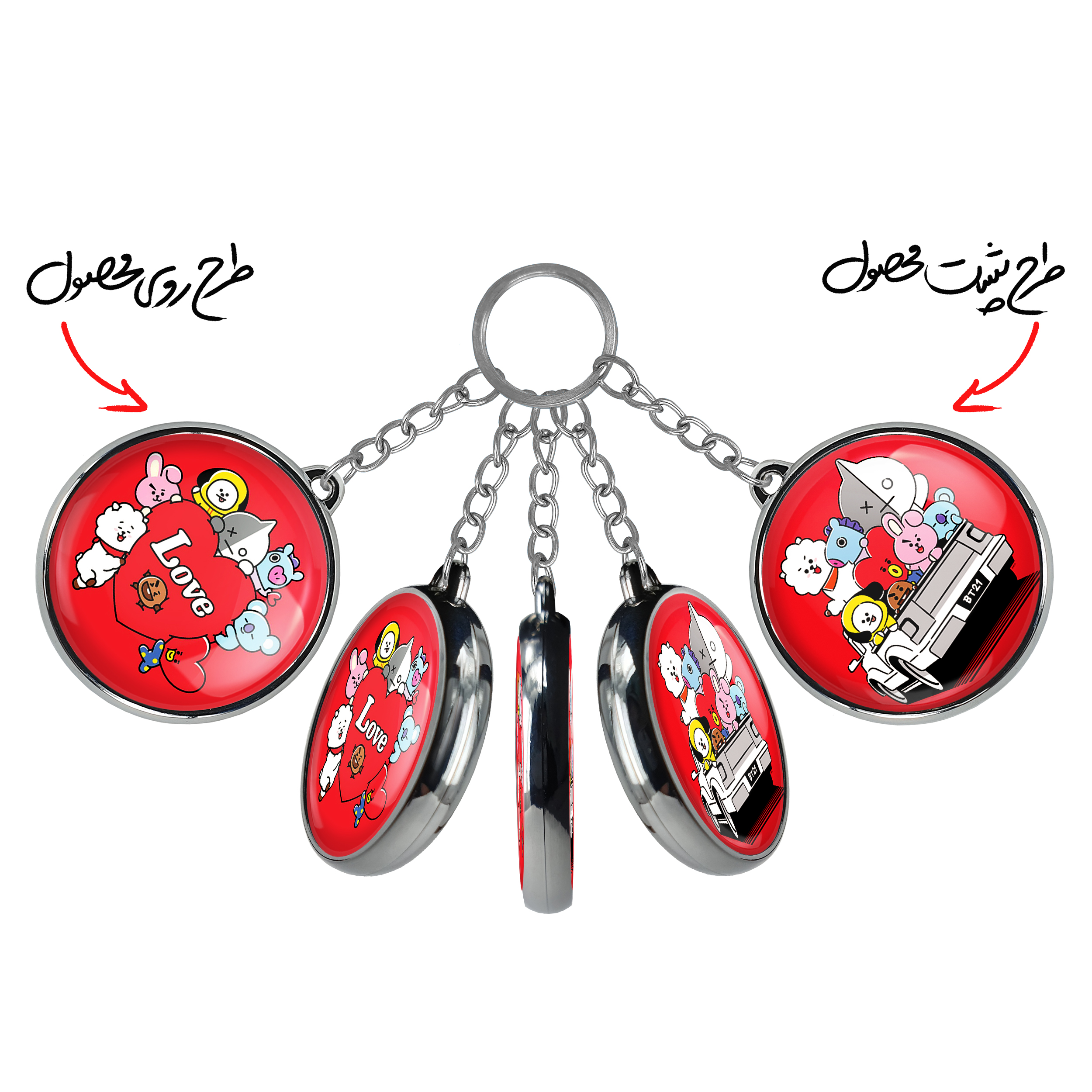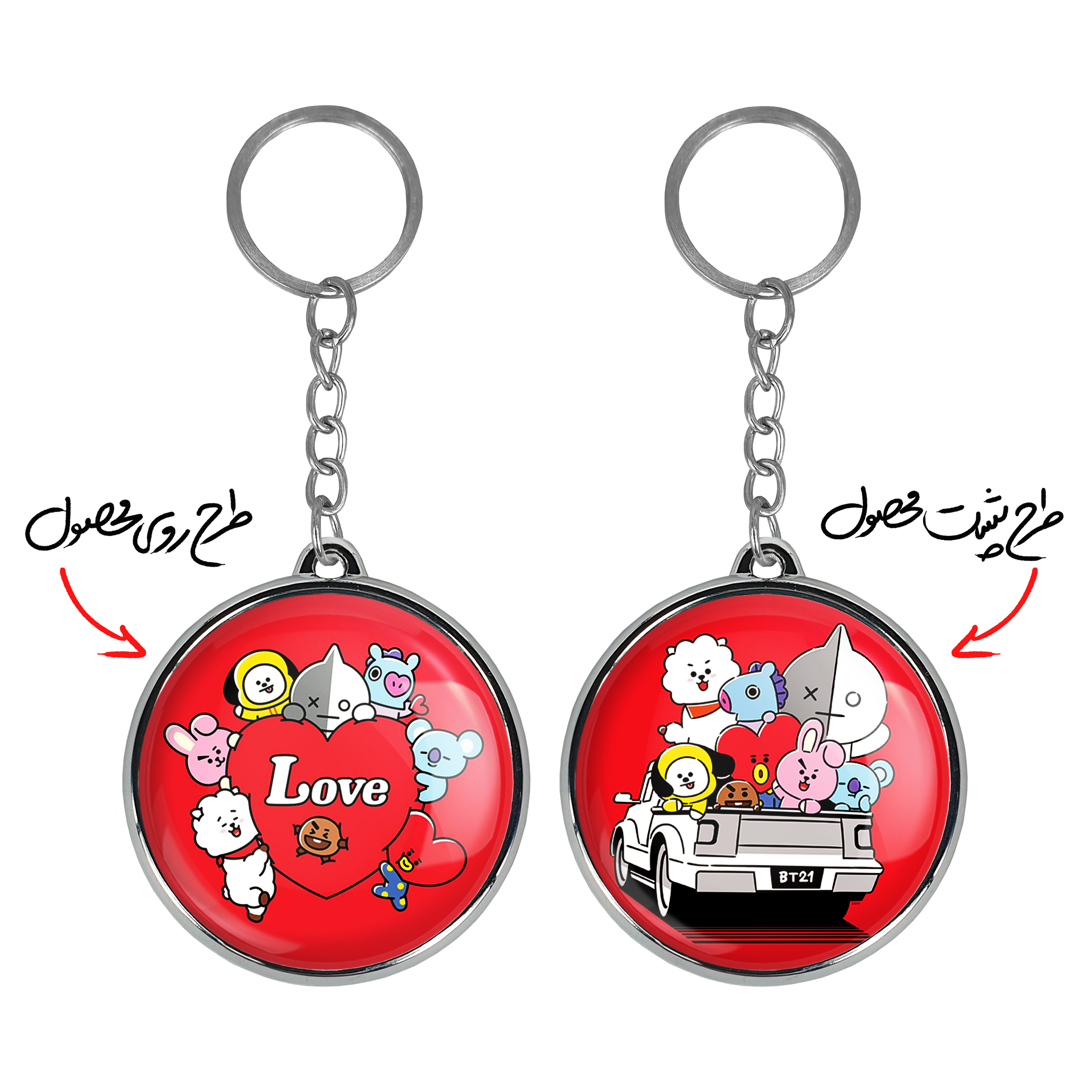 جاکلیدی دوطرفه BT21 خندالو محصولی کاربردی و جدید است که در هر دو سمت محصول، تصویری متفاوت اما از یک موضوع چاپ شده و تفاوت اصلی آن با جاکلیدی های یک طرفه در همین است که هر دو سمت پشت و روی جاکلیدی، طرحی دیدنی و جذاب دارد.