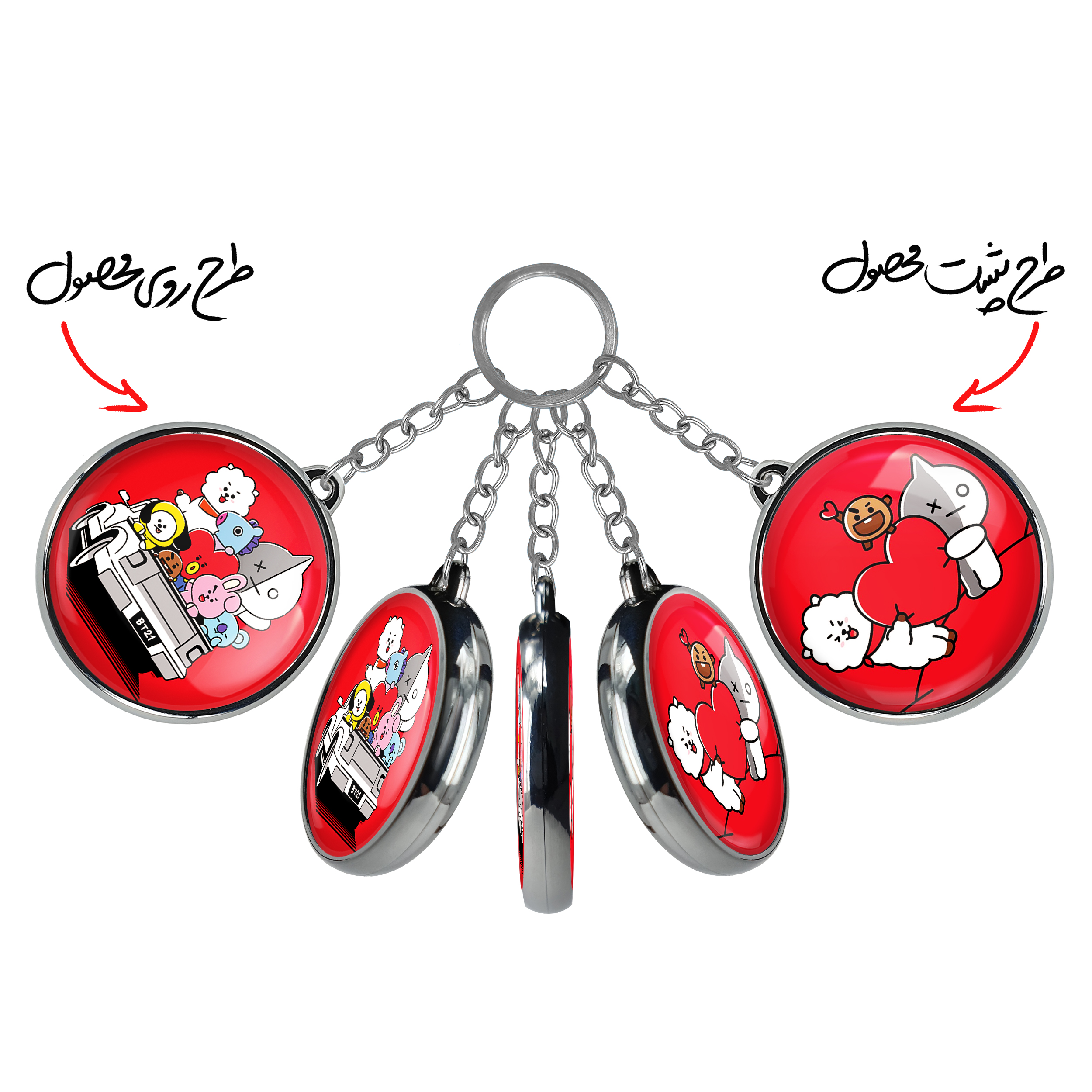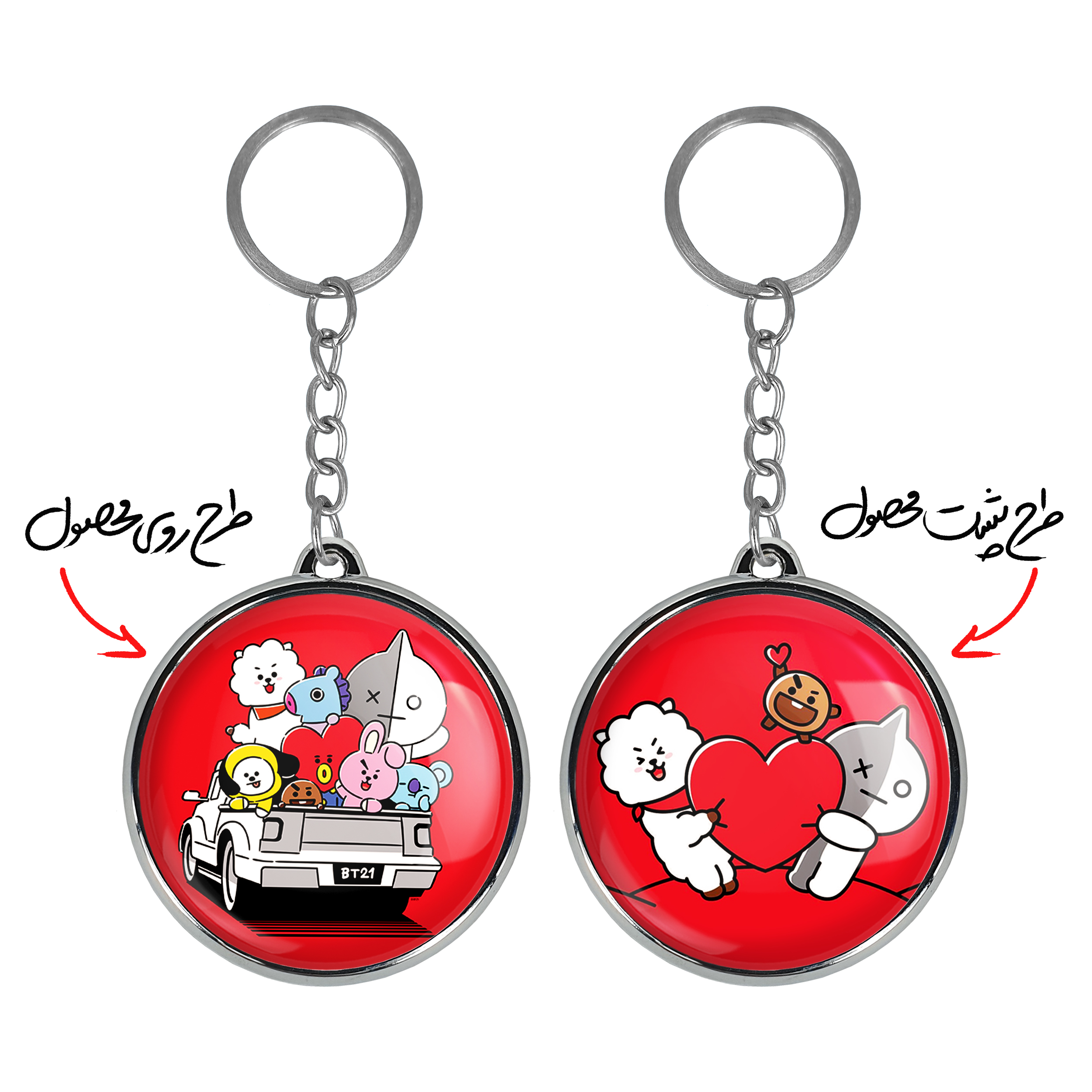 جاکلیدی دوطرفه BT21 خندالو محصولی کاربردی و جدید است که در هر دو سمت محصول، تصویری متفاوت اما از یک موضوع چاپ شده و تفاوت اصلی آن با جاکلیدی های یک طرفه در همین است که هر دو سمت پشت و روی جاکلیدی، طرحی دیدنی و جذاب دارد.