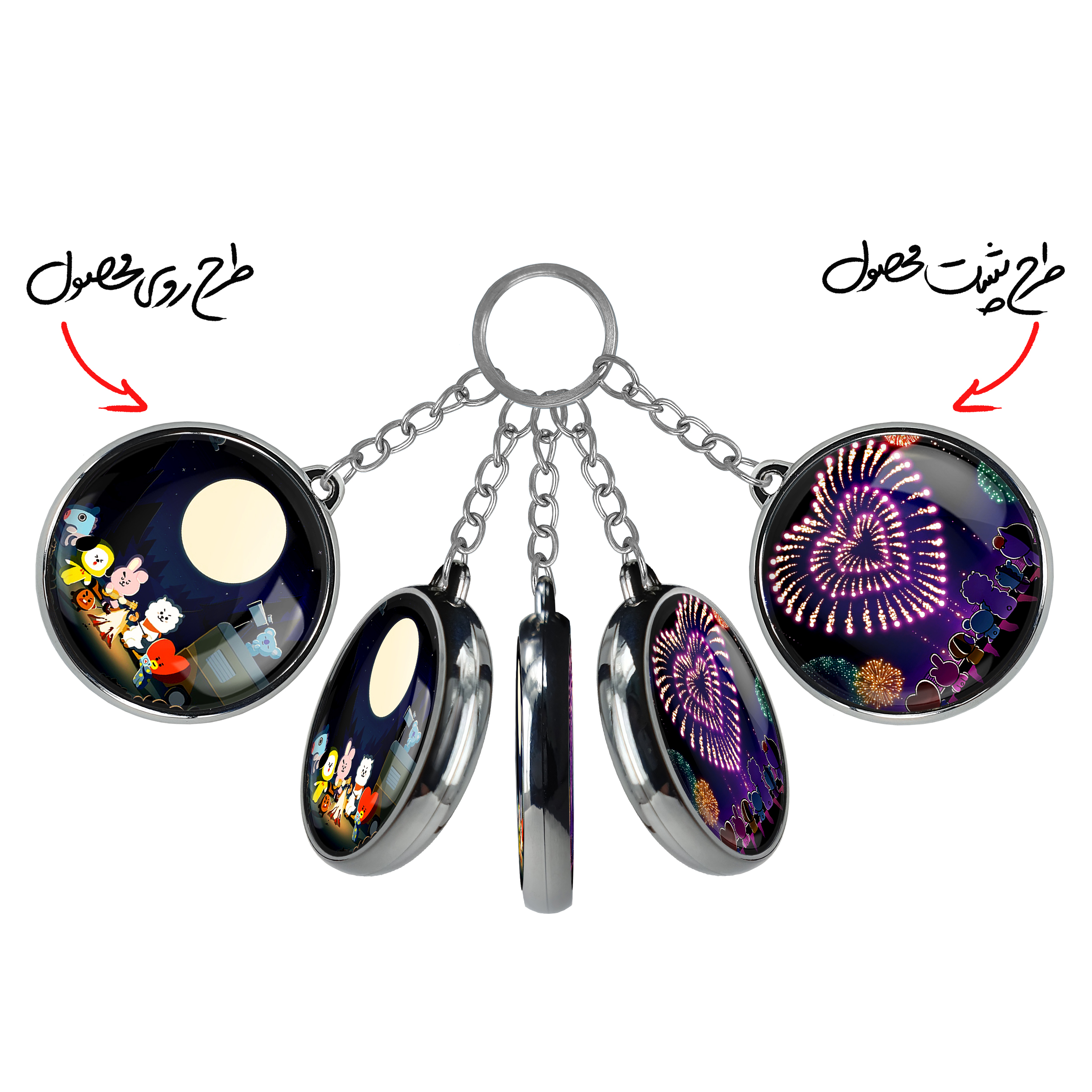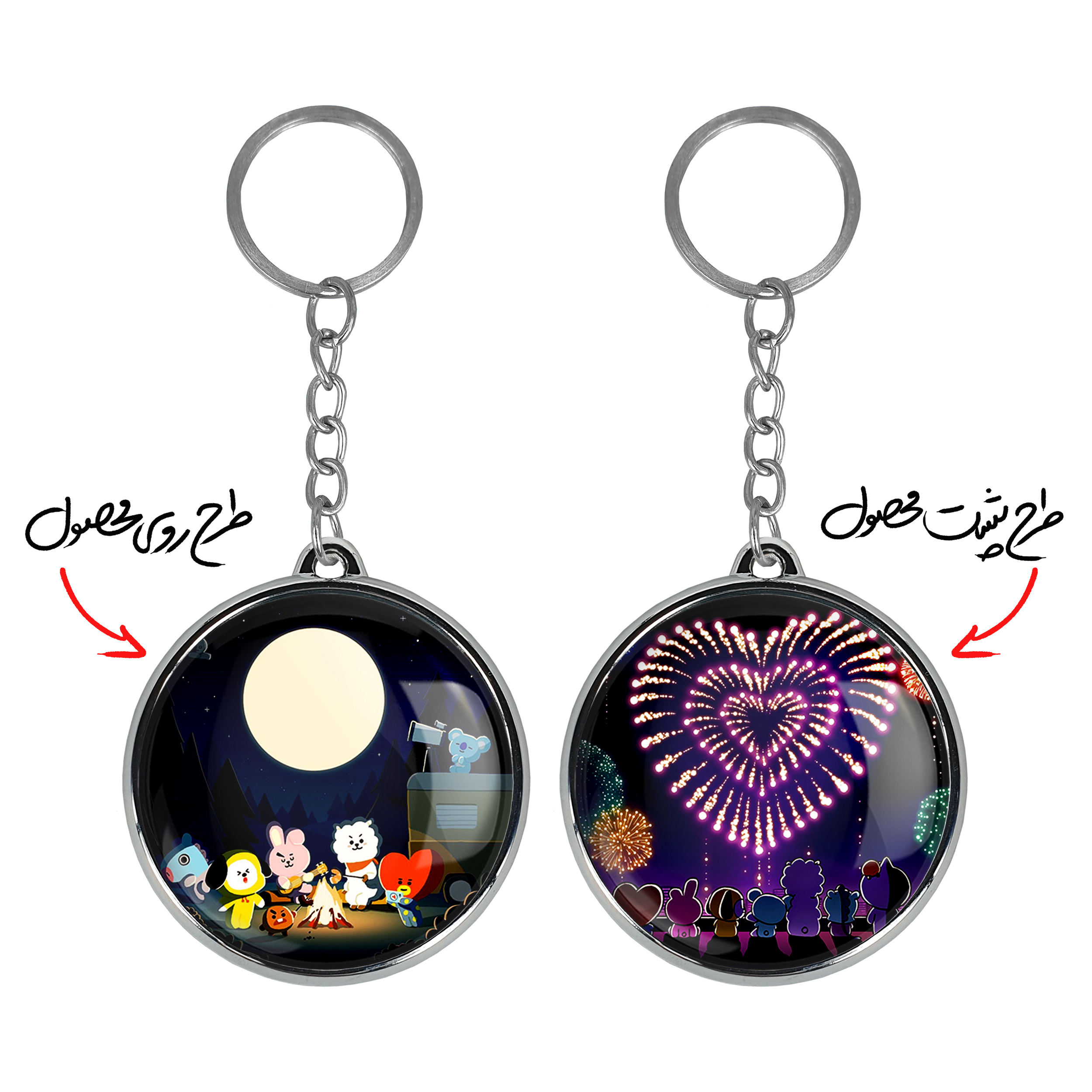 جاکلیدی دوطرفه BT21 خندالو محصولی کاربردی و جدید است که در هر دو سمت محصول، تصویری متفاوت اما از یک موضوع چاپ شده و تفاوت اصلی آن با جاکلیدی های یک طرفه در همین است که هر دو سمت پشت و روی جاکلیدی، طرحی دیدنی و جذاب دارد.