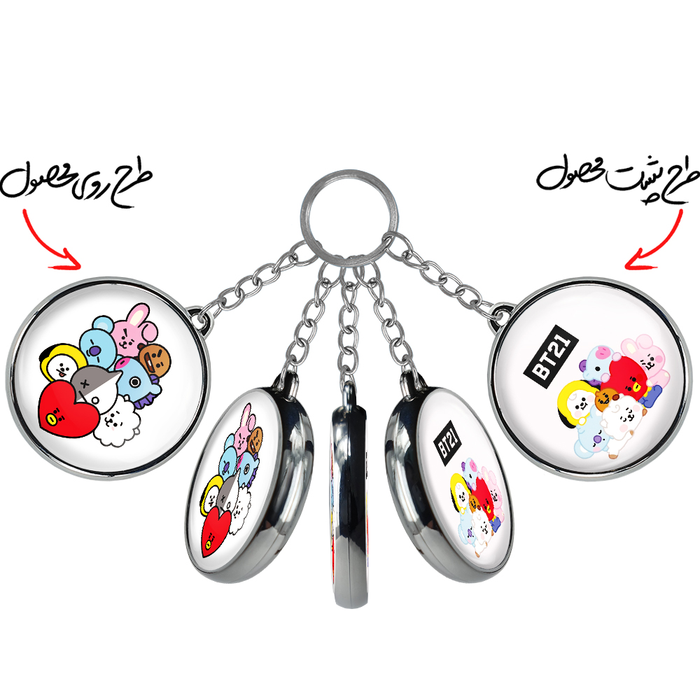 جاکلیدی دوطرفه BT21خندالو محصولی کاربردی و جدید است که در هر دو سمت محصول، تصویری متفاوت اما از یک موضوع چاپ شده و تفاوت اصلی آن با جاکلیدی های یک طرفه در همین است که هر دو سمت پشت و روی جاکلیدی، طرحی دیدنی و جذاب دارد.