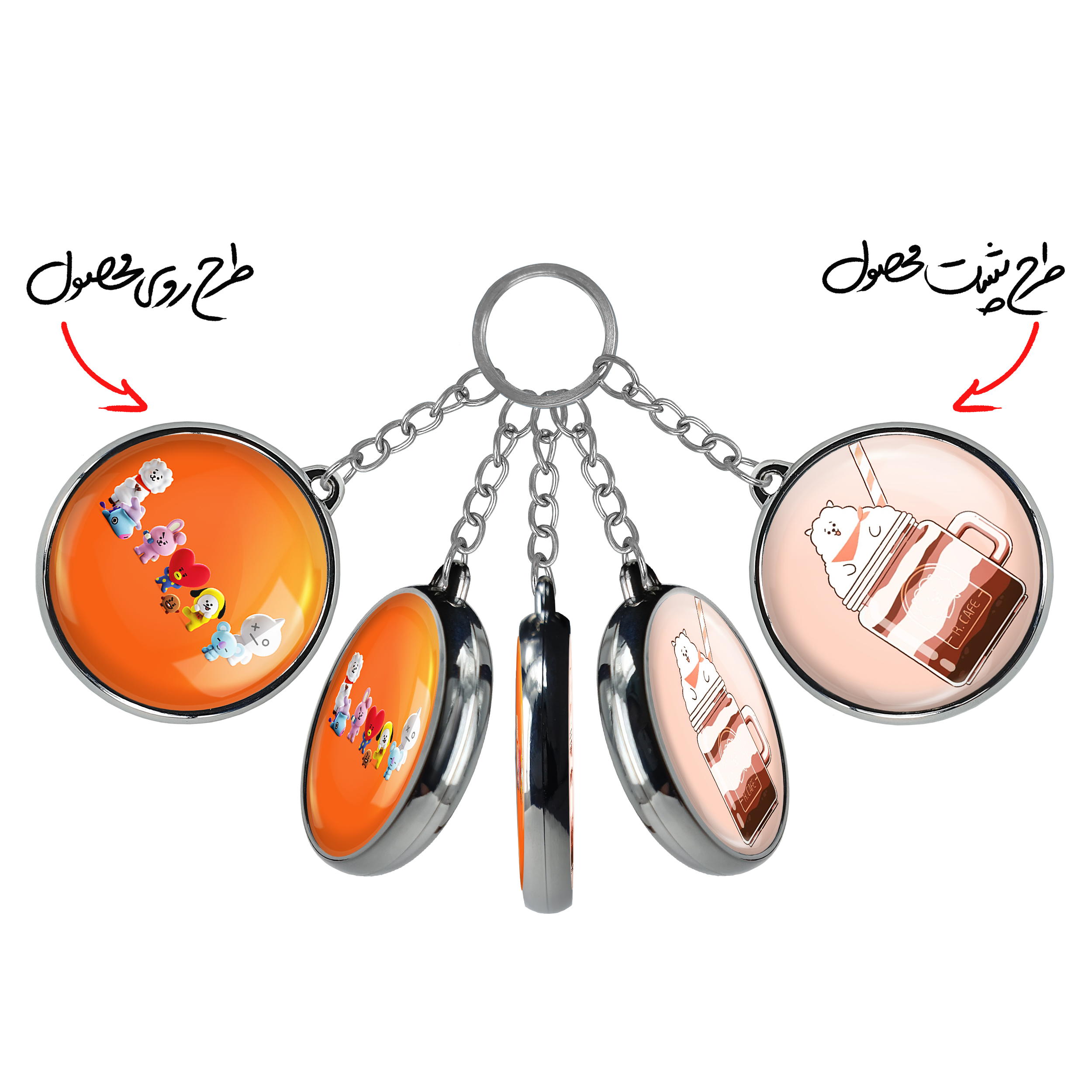 جاکلیدی دوطرفه BT21 خندالو محصولی کاربردی و جدید است که در هر دو سمت محصول، تصویری متفاوت اما از یک موضوع چاپ شده و تفاوت اصلی آن با جاکلیدی های یک طرفه در همین است که هر دو سمت پشت و روی جاکلیدی، طرحی دیدنی و جذاب دارد.