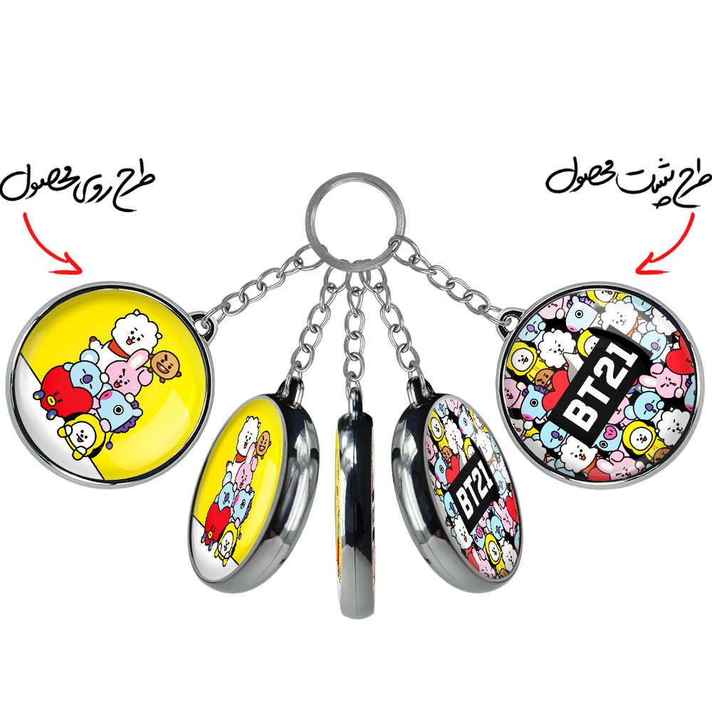 جاکلیدی دوطرفه BT21خندالو محصولی کاربردی و جدید است که در هر دو سمت محصول، تصویری متفاوت اما از یک موضوع چاپ شده و تفاوت اصلی آن با جاکلیدی های یک طرفه در همین است که هر دو سمت پشت و روی جاکلیدی، طرحی دیدنی و جذاب دارد.