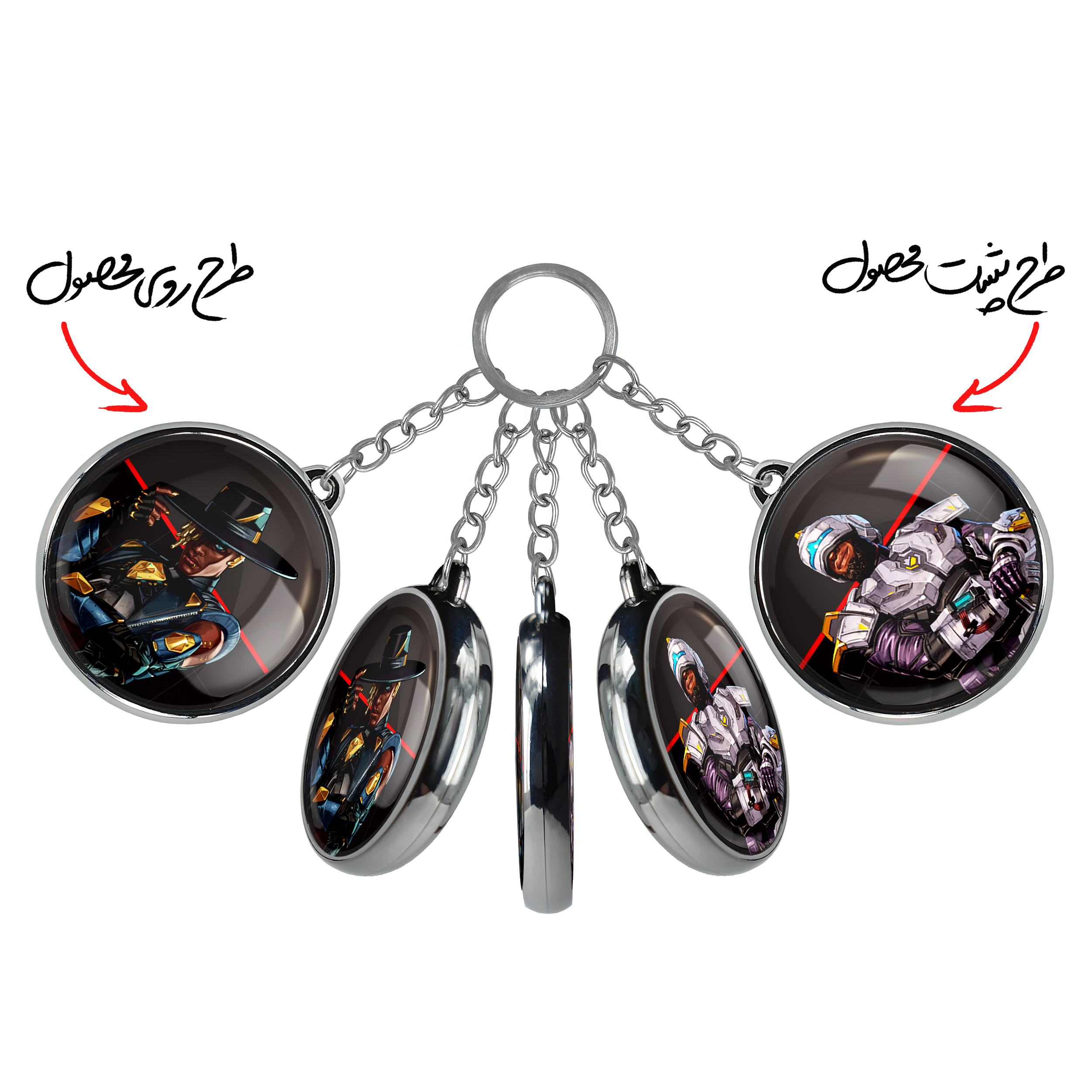 جاکلیدی دوطرفه Seer لجند های ایکس لجند خندالو محصولی کاربردی و جدید است که در هر دو سمت محصول، تصویری متفاوت اما از یک موضوع چاپ شده و تفاوت اصلی آن با جاکلیدی های یک طرفه در همین است که هر دو سمت پشت و روی جاکلیدی، طرحی دیدنی و جذاب دارد. همچنین رینگ بکار برده شده برای دور طرح ها آبکاری کروم درجه یک و رنگ ثابت است و برخلاف سایر محصولات مشابه، از رنگ های متفرقه و یا سفید استفاده نشده، که این مهم، زیبایی محصول نهایی را چند برابر کرده است. جاکلیدی های دوطرفه Seer لجند های ایکس لجند با استفاده از روکش سلفون براق ضدخش تولید شده که خاصیت ضدخش بودن آن عمر مفید استفاده از جاکلیدی ها را افزایش میدهد. چاپ جاکلیدی ها با دستگاه های استاندارد و با بهترین سطح کیفیت صورت گرفته و طرح با شفافیتی مثال زدنی و با سلفون چسبی تولید شده است که باعث شده محصول نهایی بدون شکست نور دیده شود. همچنین بسته بندی جذاب و مینیمال جاکلیدی دوطرفه Seer لجند های ایکس لجند ، آنها را محصولی مناسب هدیه کرده است. زنجیر و حلقه بکار برده شده در جاکلیدی خندالو از نوع حلقه ضخیم و محکم بوده و حین استفاده آسیب نمی بیند.